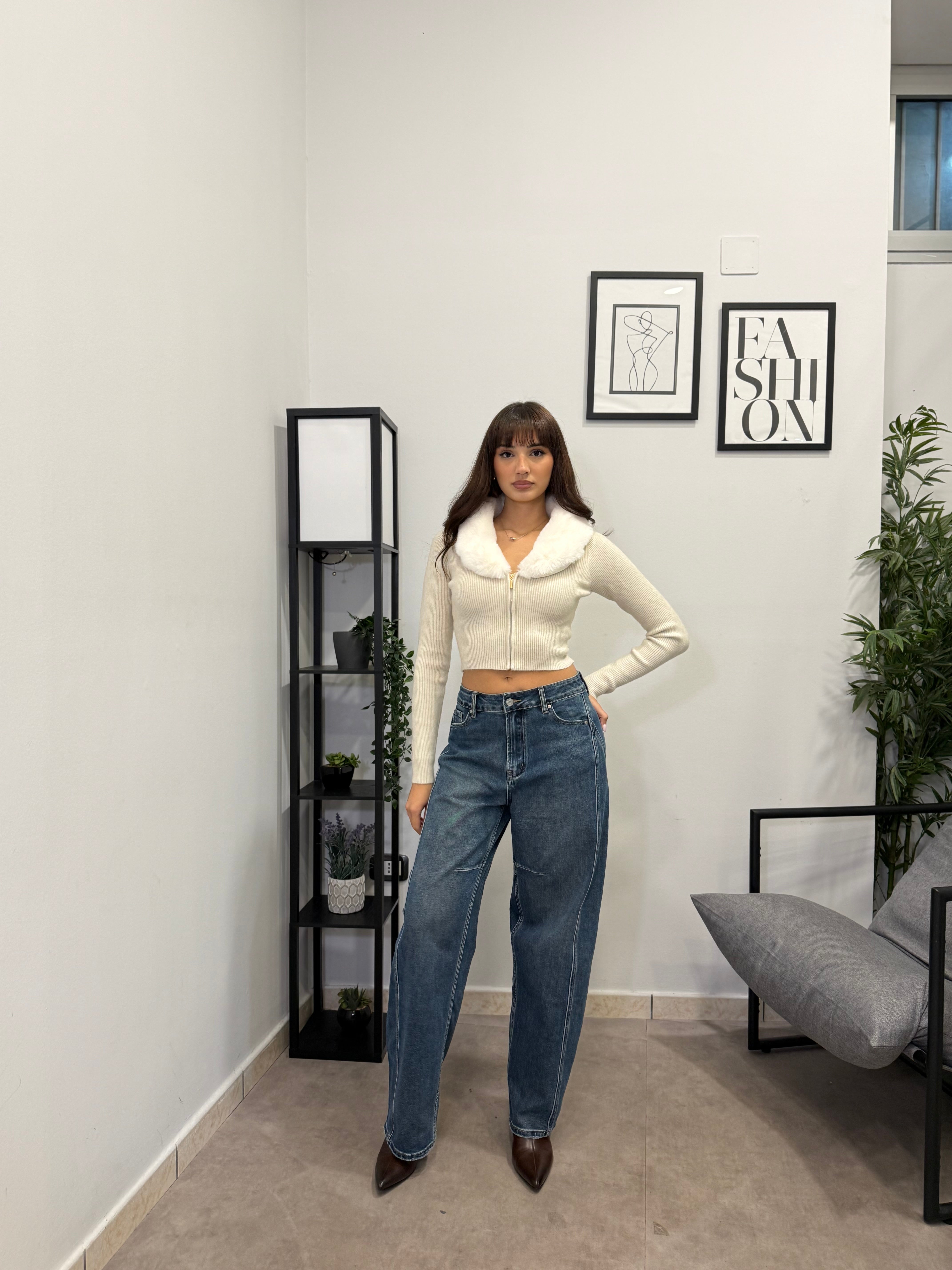 Jeans modello ballon, lavaggio sabbiato. Tessuto elastico, vestibilità comoda! Marta indossa tg S