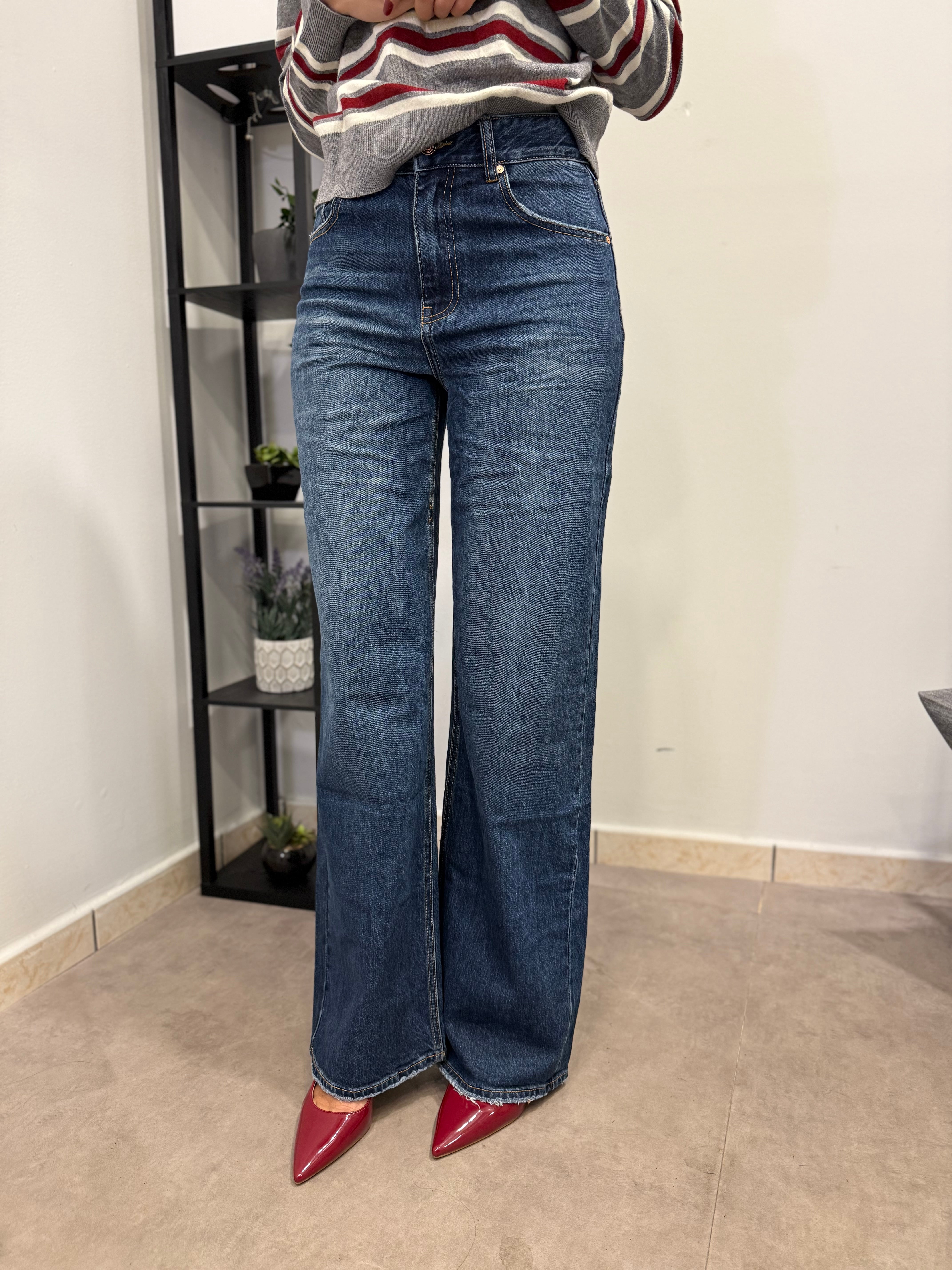 Jeans classic fit a vita alta con gamba ampia. Leggermente elastico