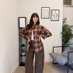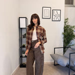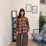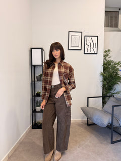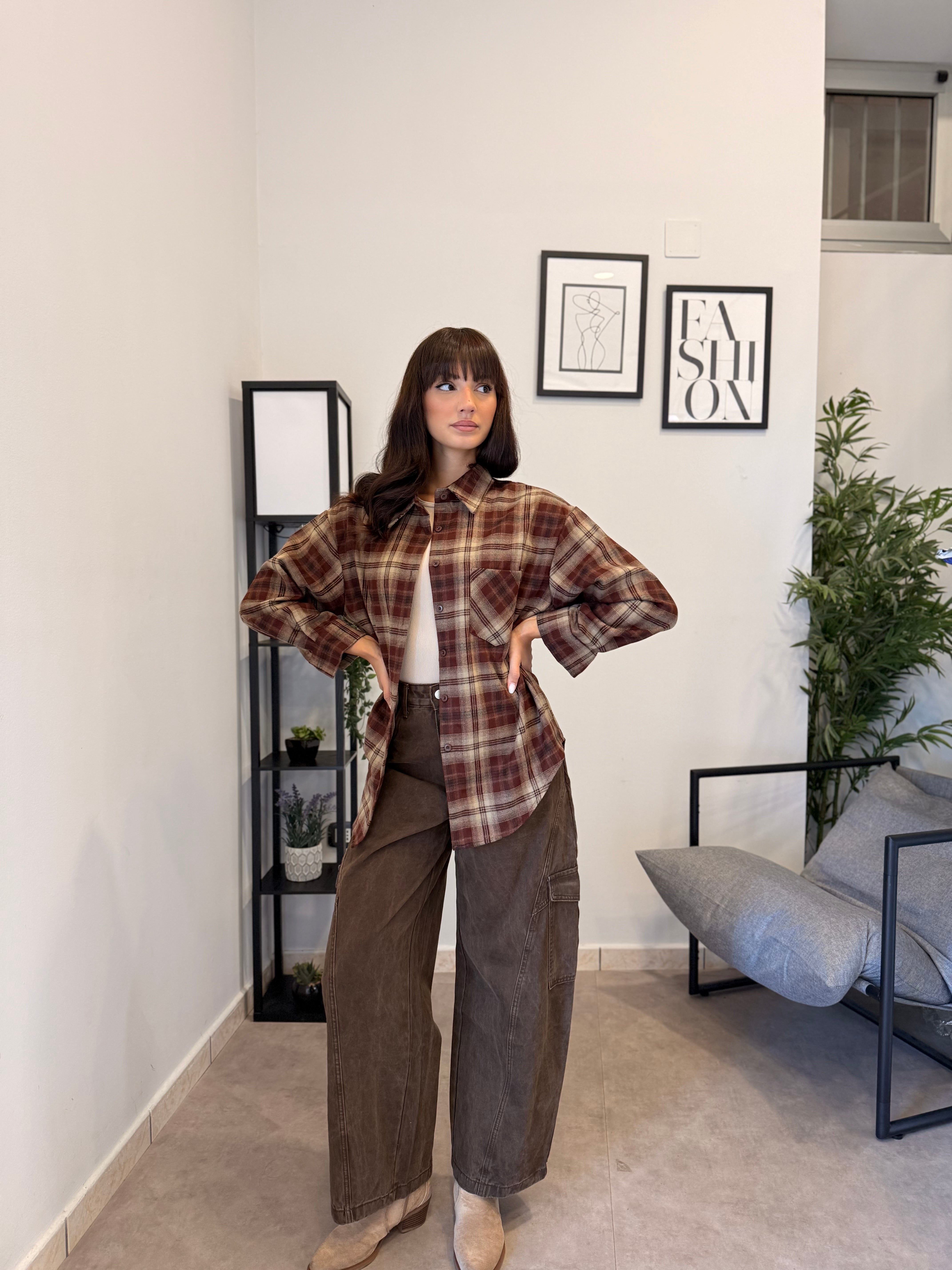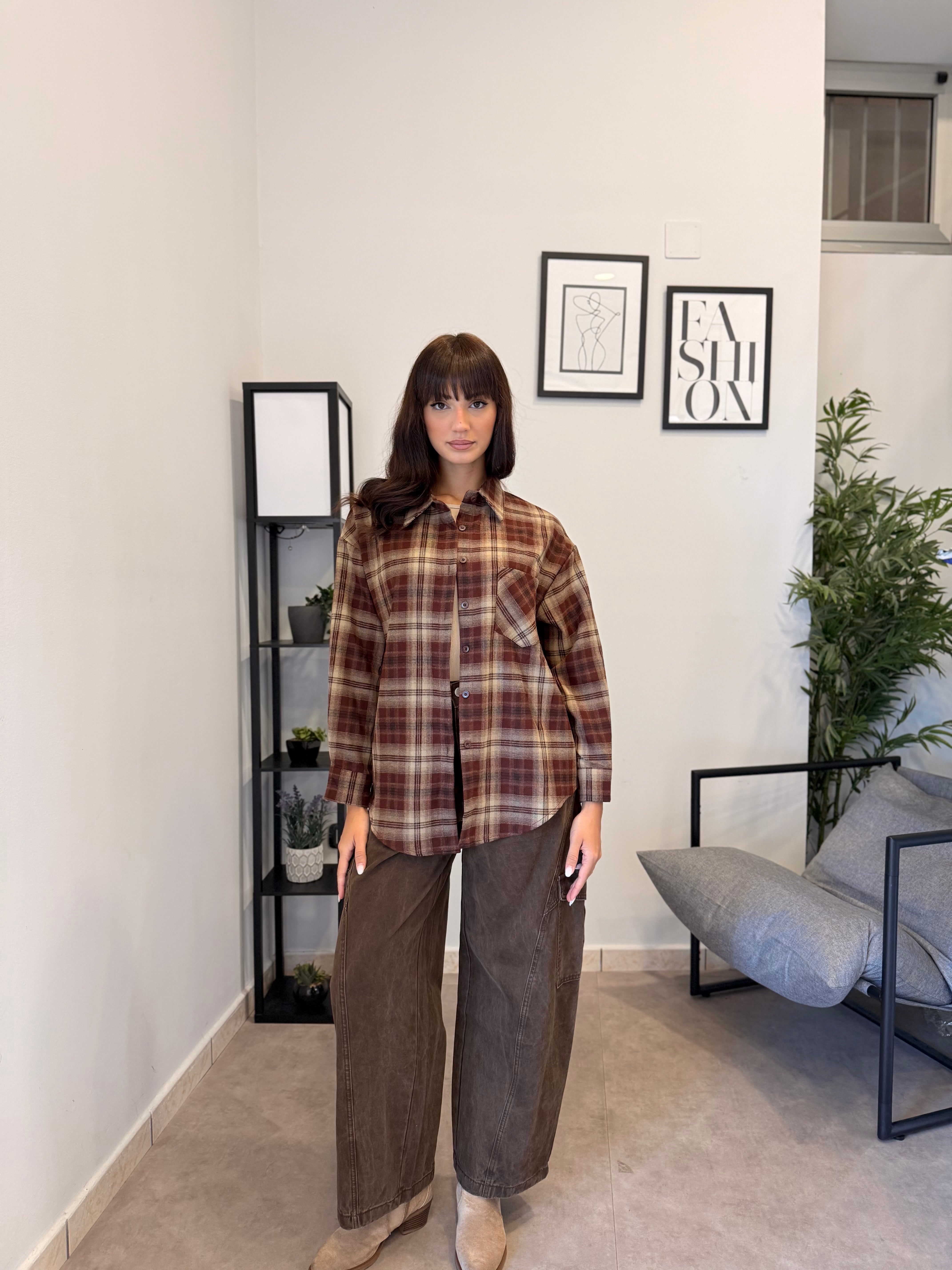 Camicione in simil flanella con stampa a quadri. Vestibilità Ampia
