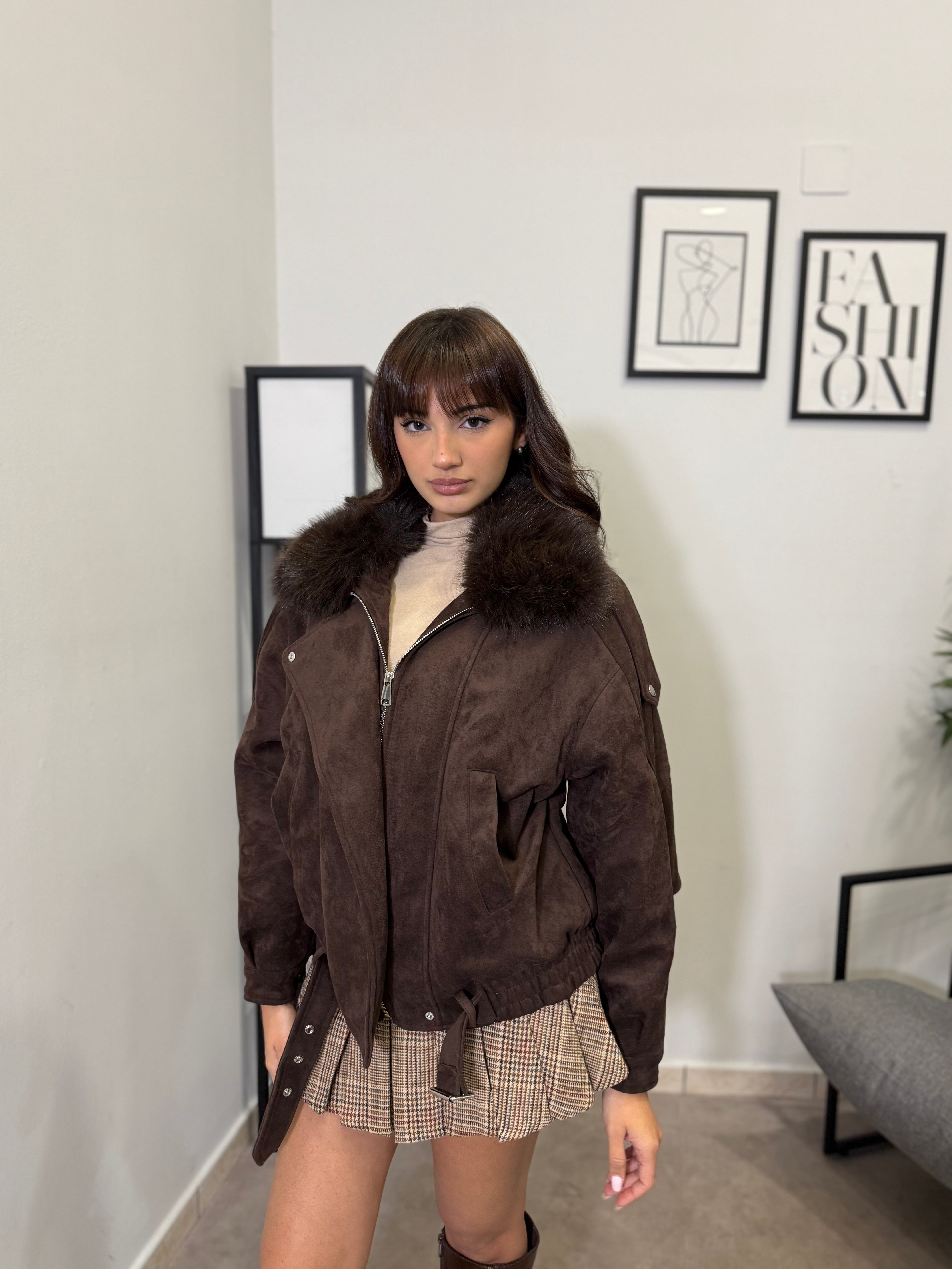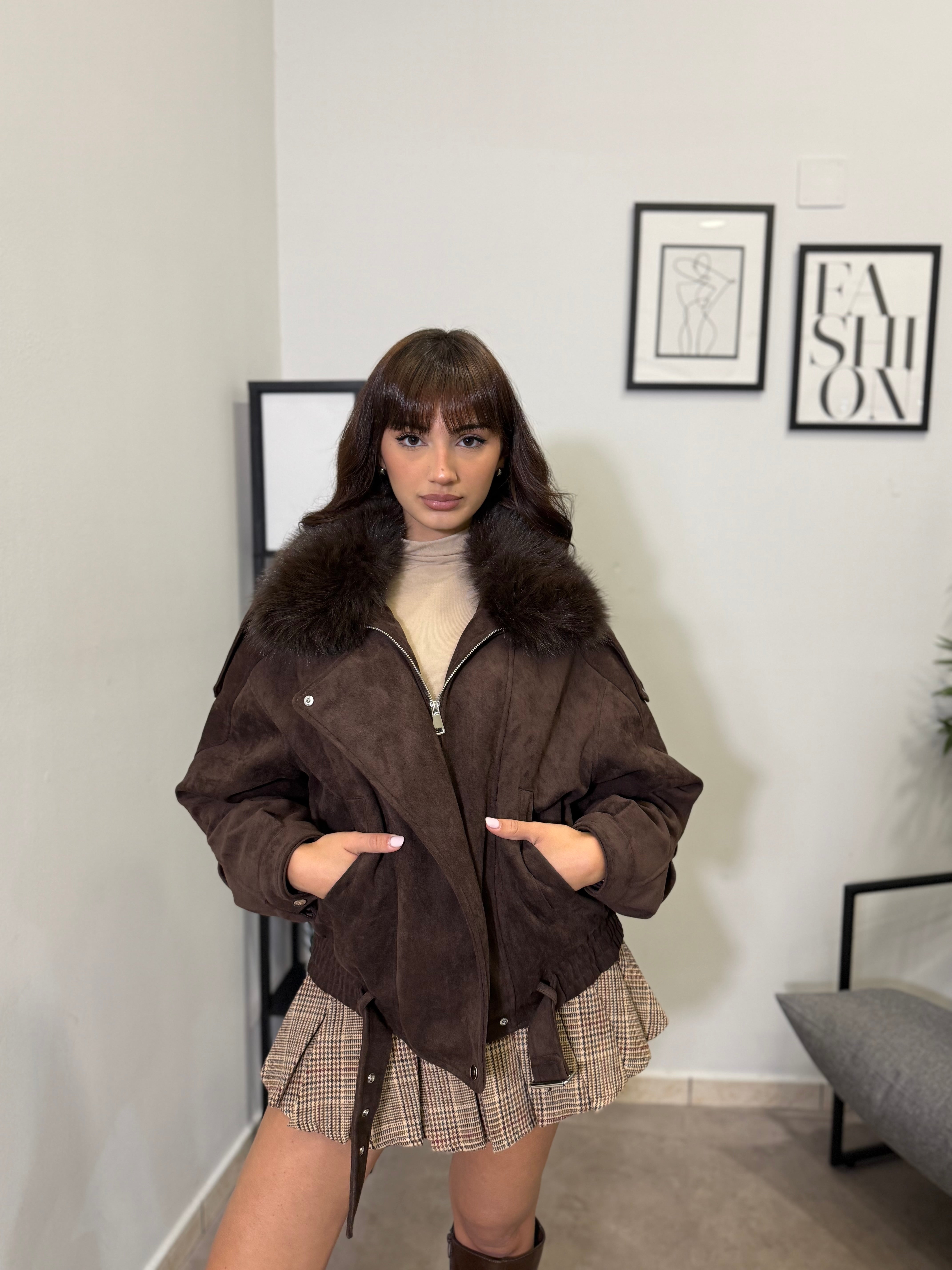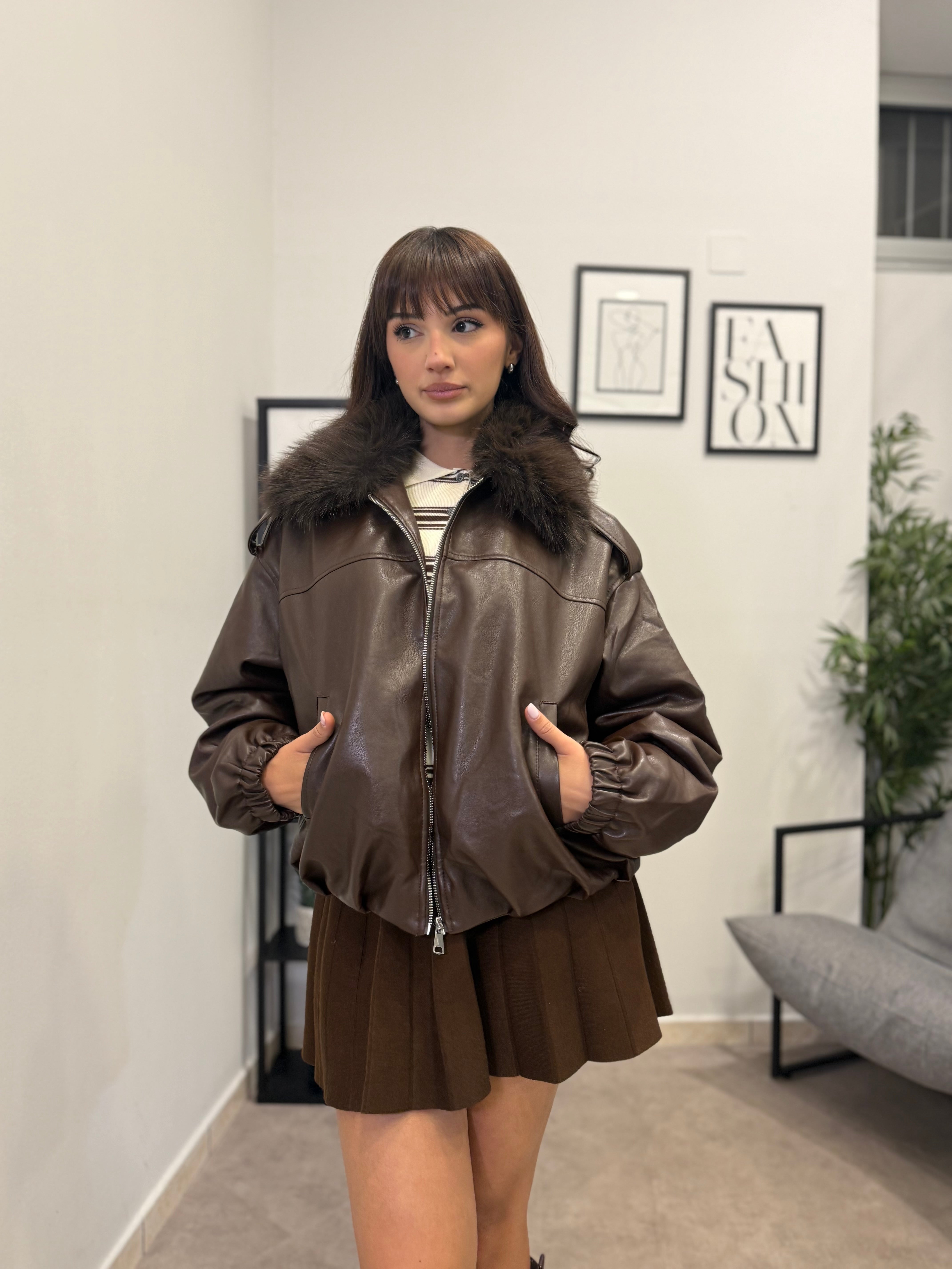 Giubbotto Ecopelle trequarti con pelliccia 11711