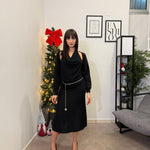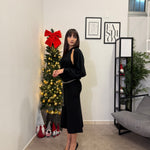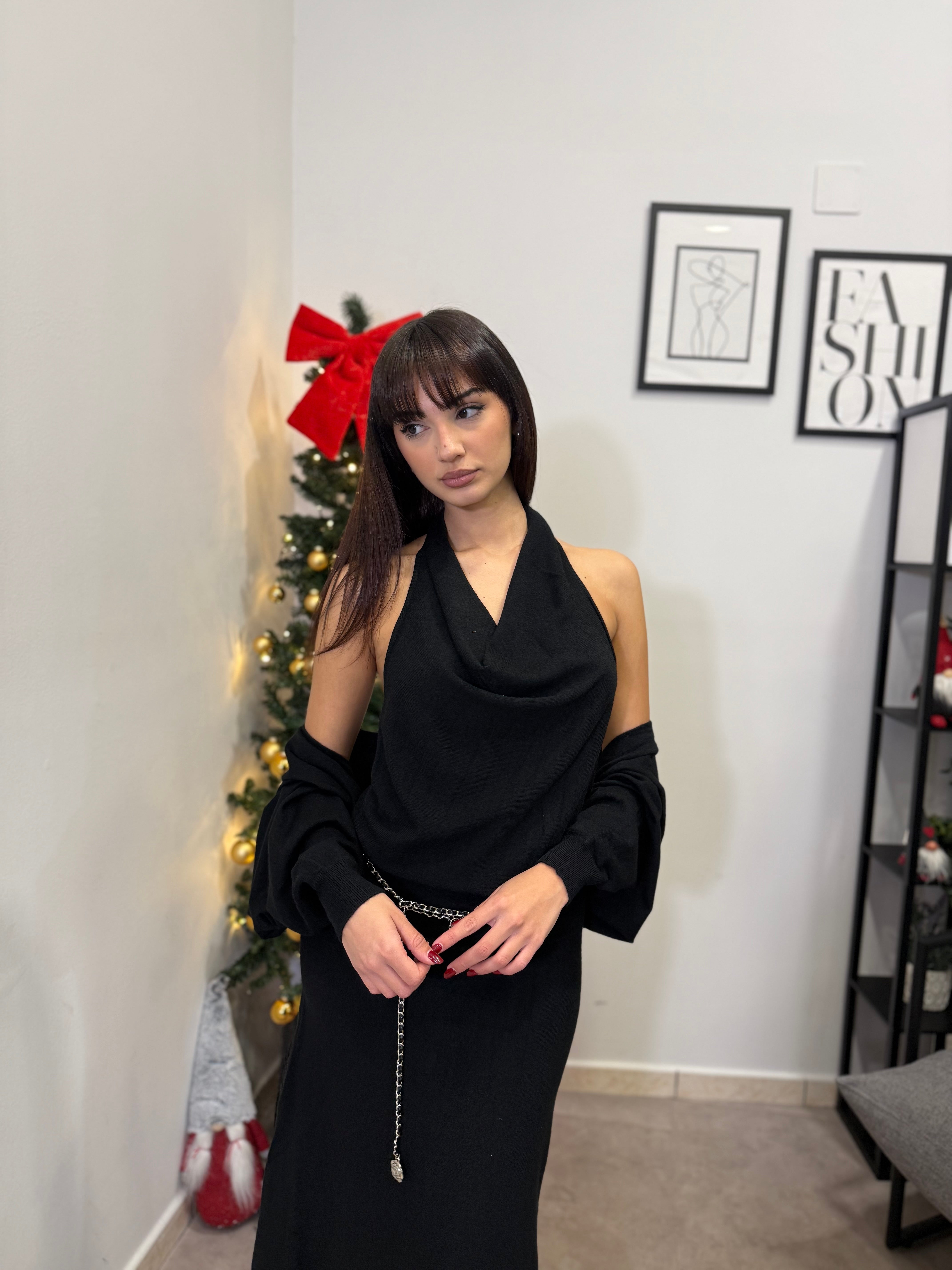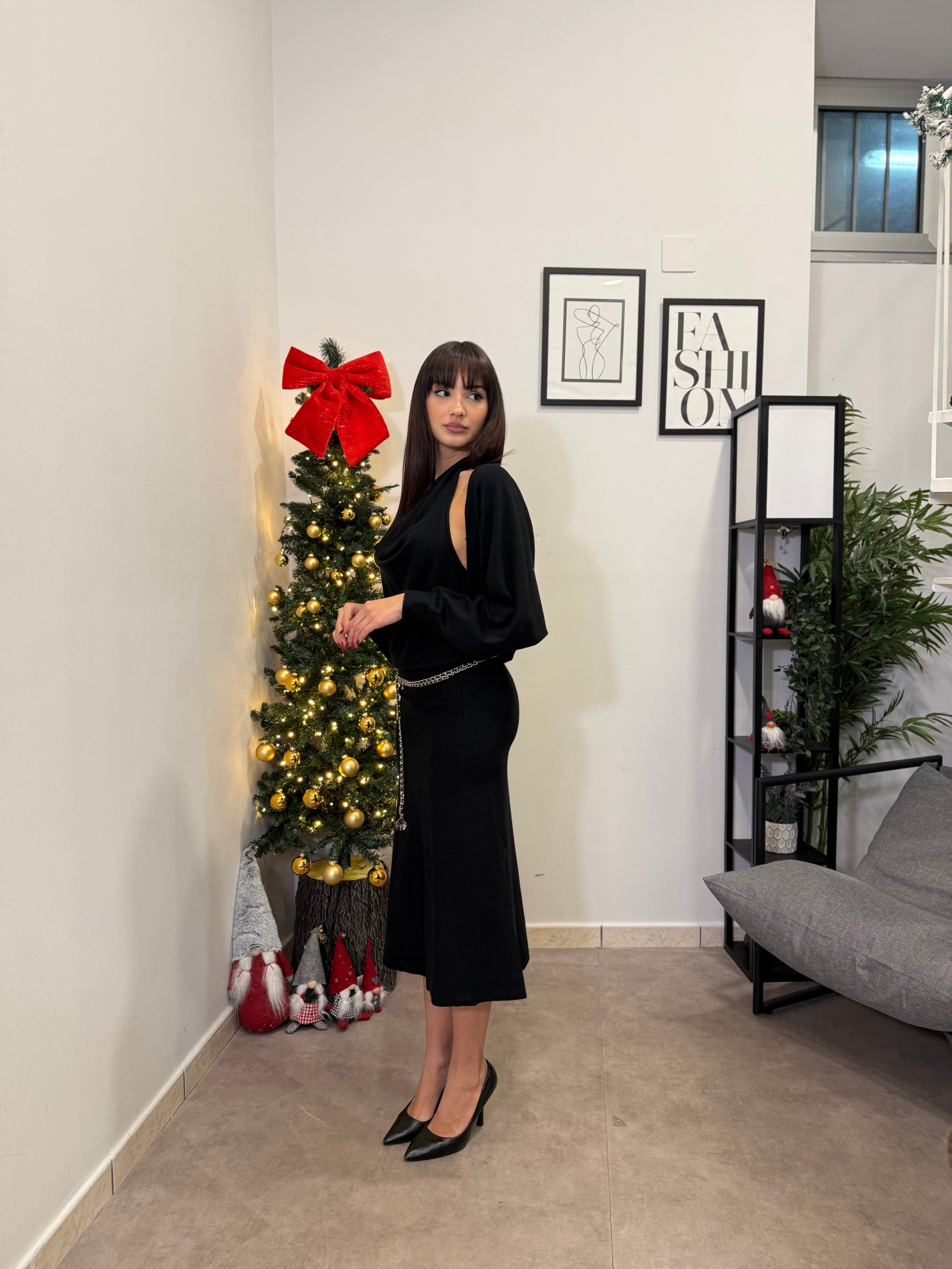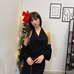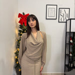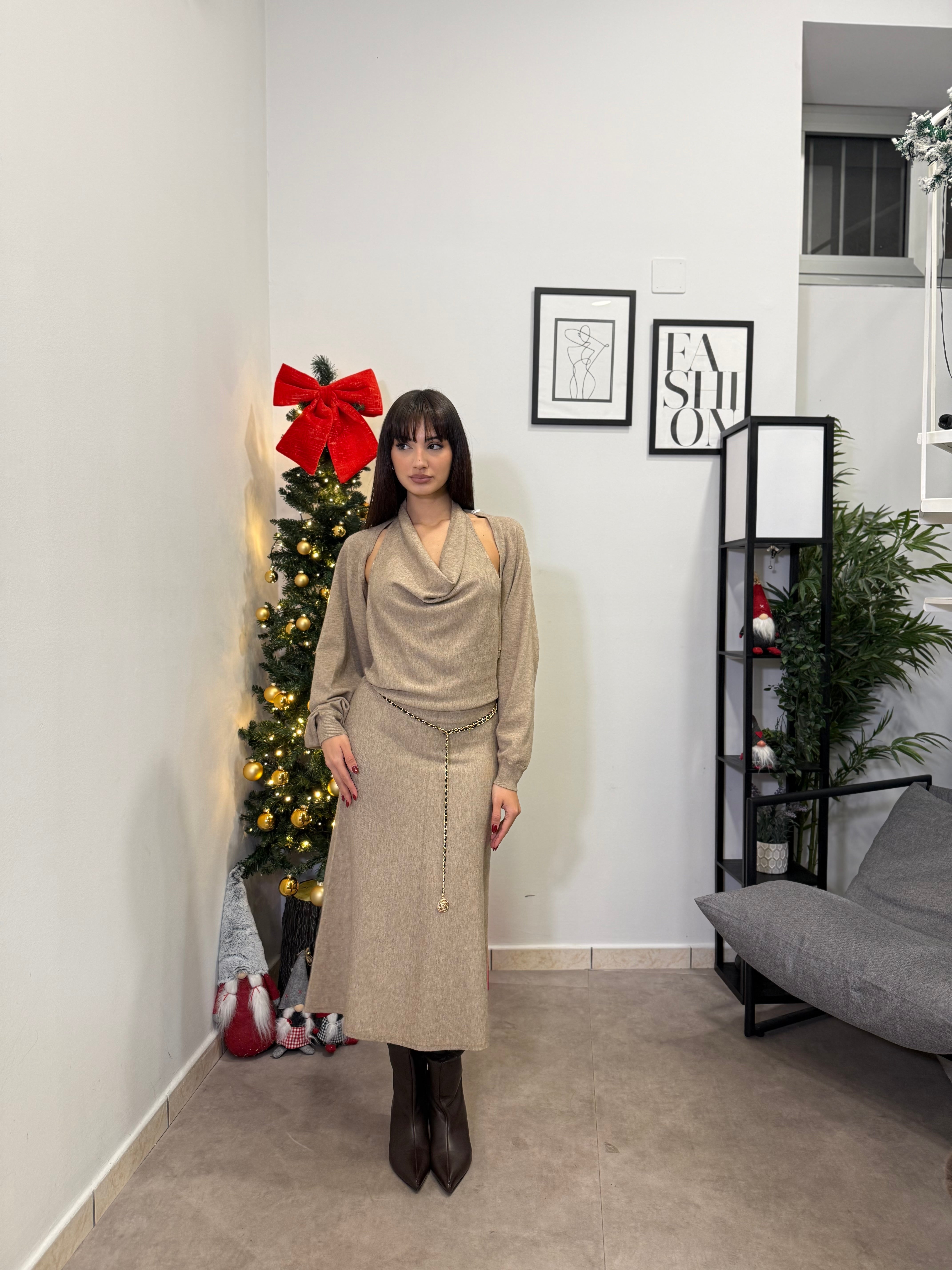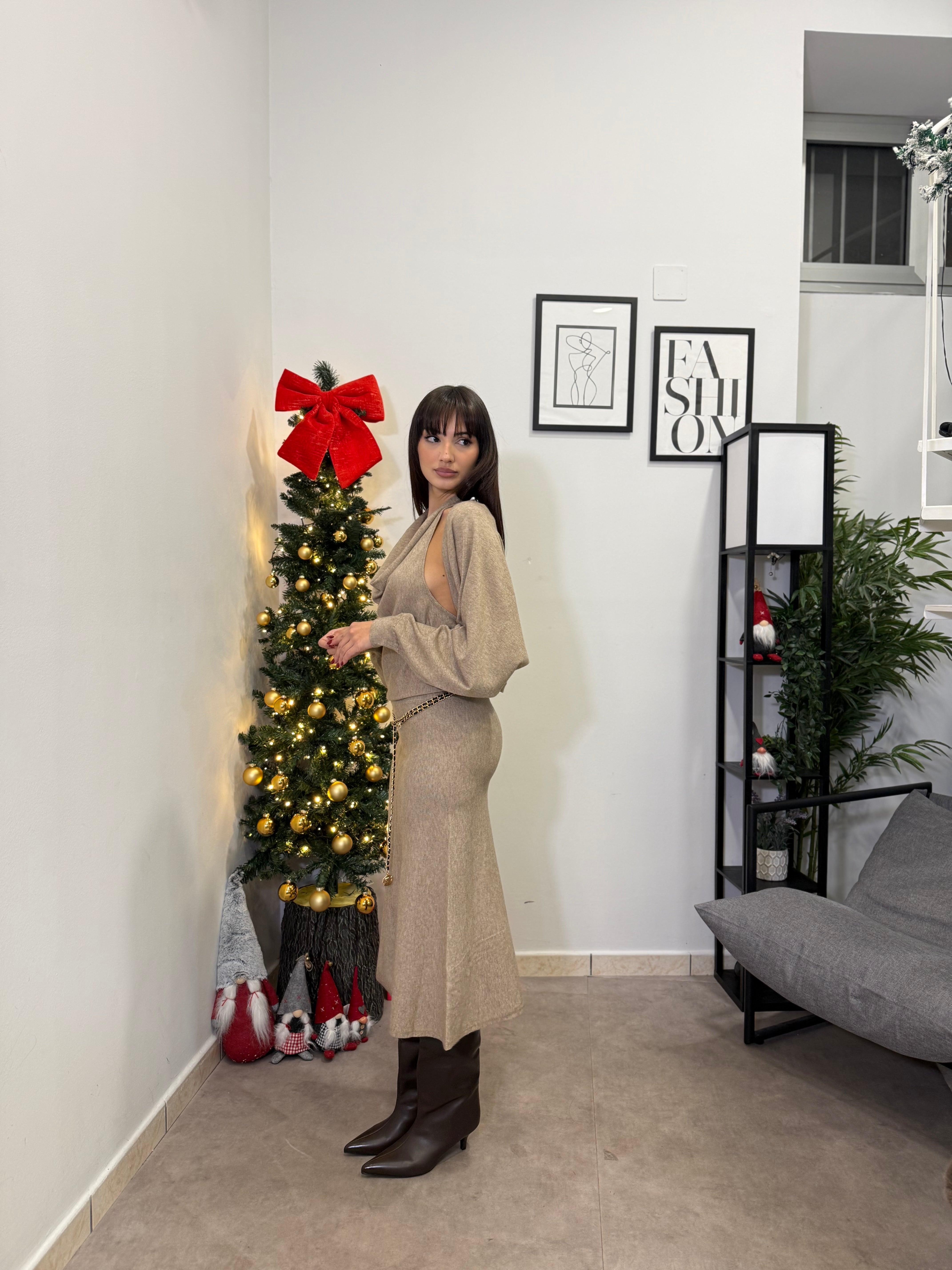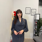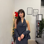 Abito in misto lana con coprispalle e cinturino incluso! Lunchezza midi, tessuto elastico. Marta indossa tg S/M