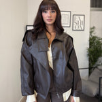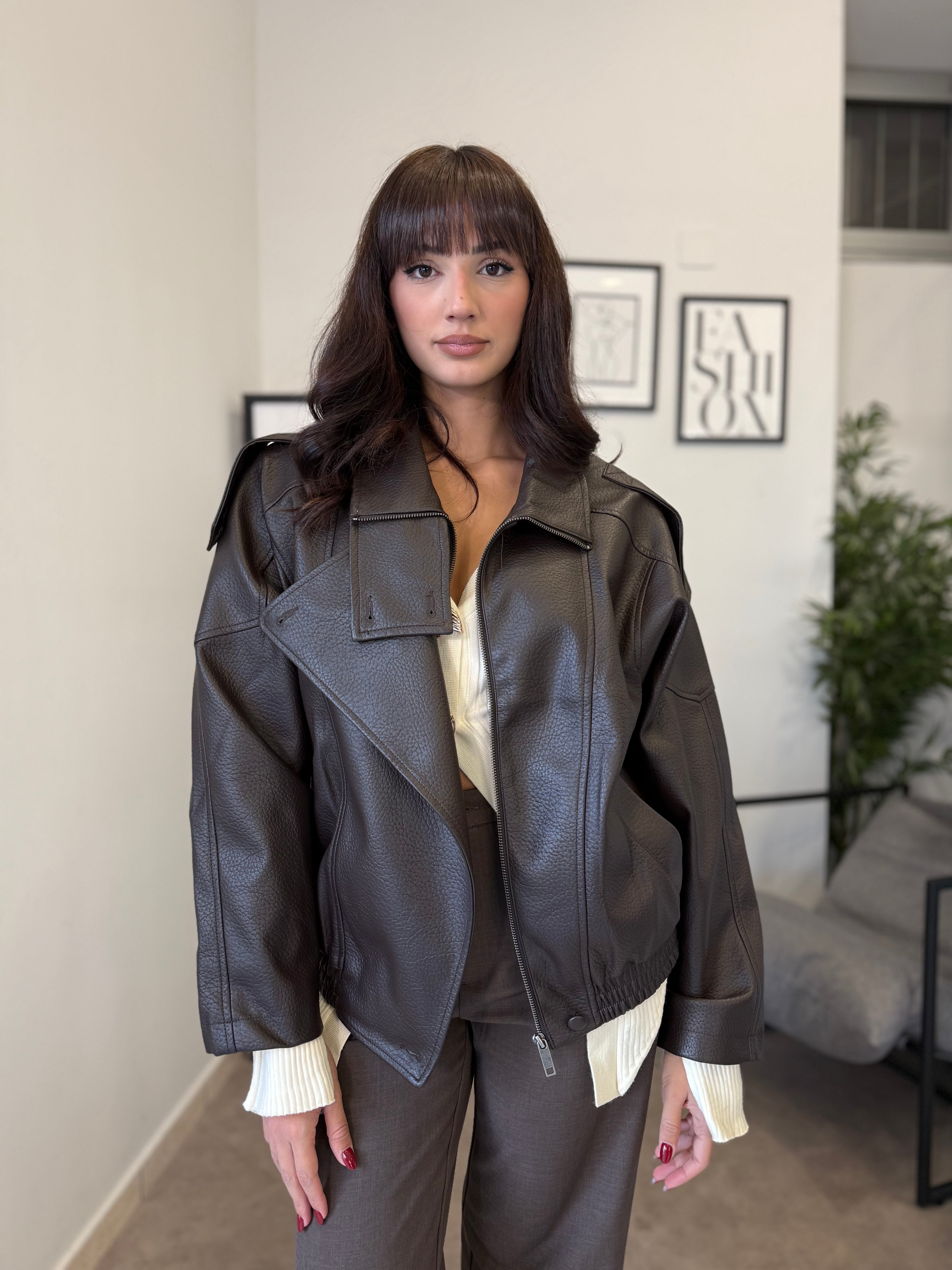 Biker oversize, color marrone scuro. Marta indossa tg S/M