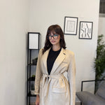 Non disponibileBlazer oversize con cintura in vita, effetto scamosciato. Veste bene dalla S alla L