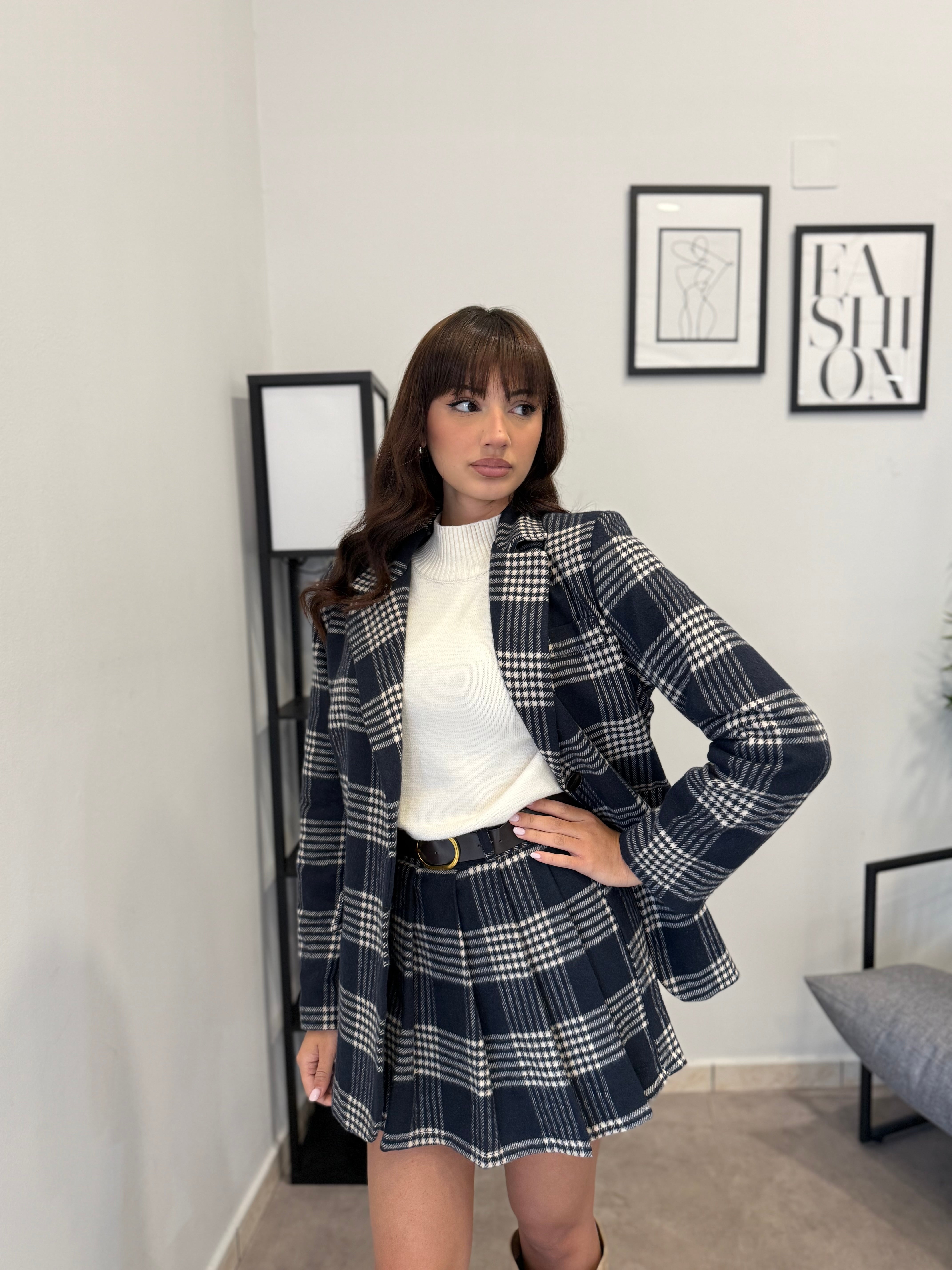 Blazer oversize in panno (tessuto cappotto) con stampa blu. Veste bene dalla S alla L