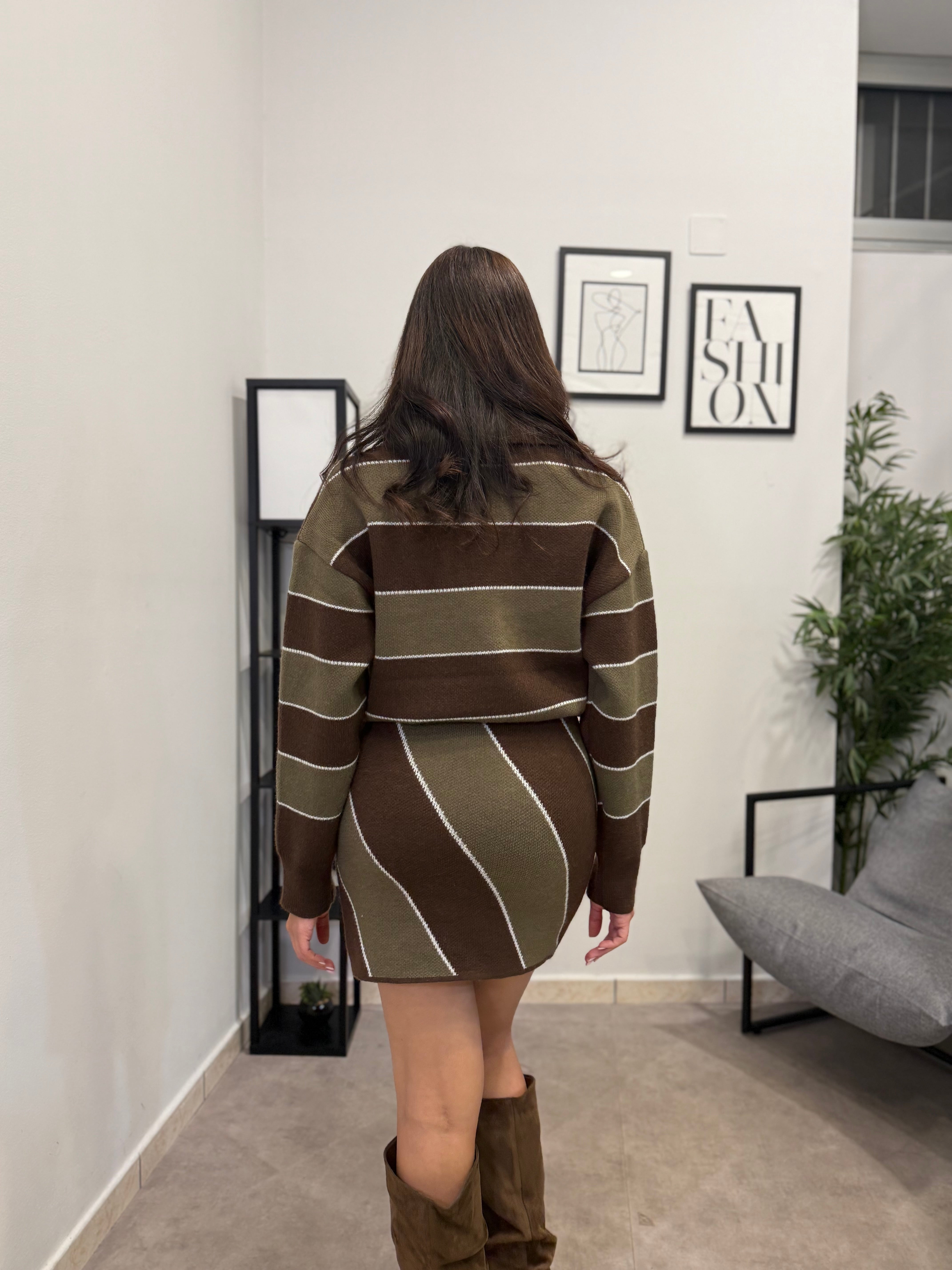 Completo con pull e gonna abbinati fra loro. Il pull ha la coulisse regolabile. Veste bene dalla S alla L essendo elastico