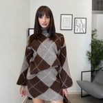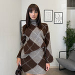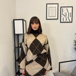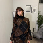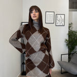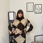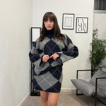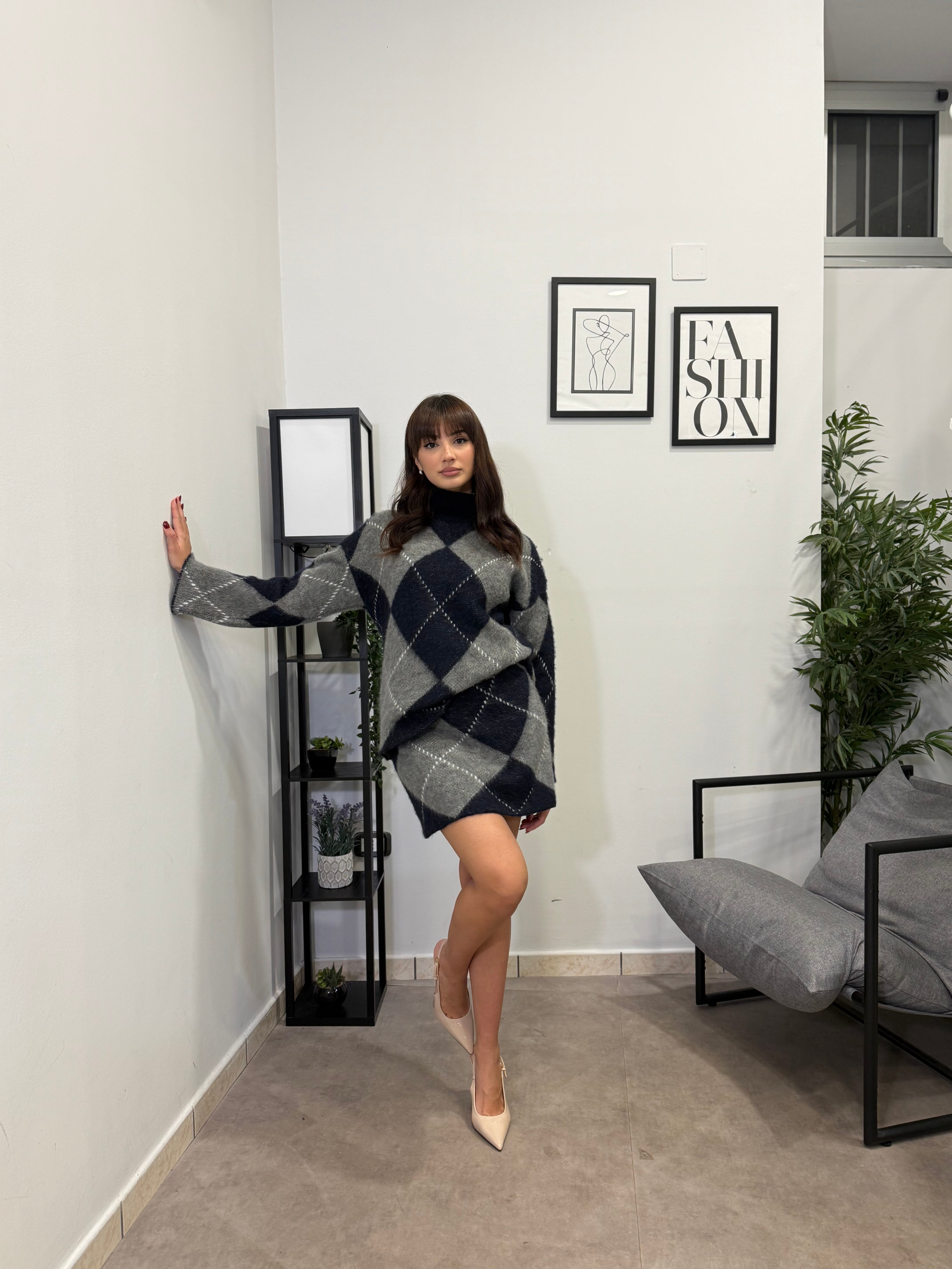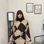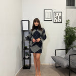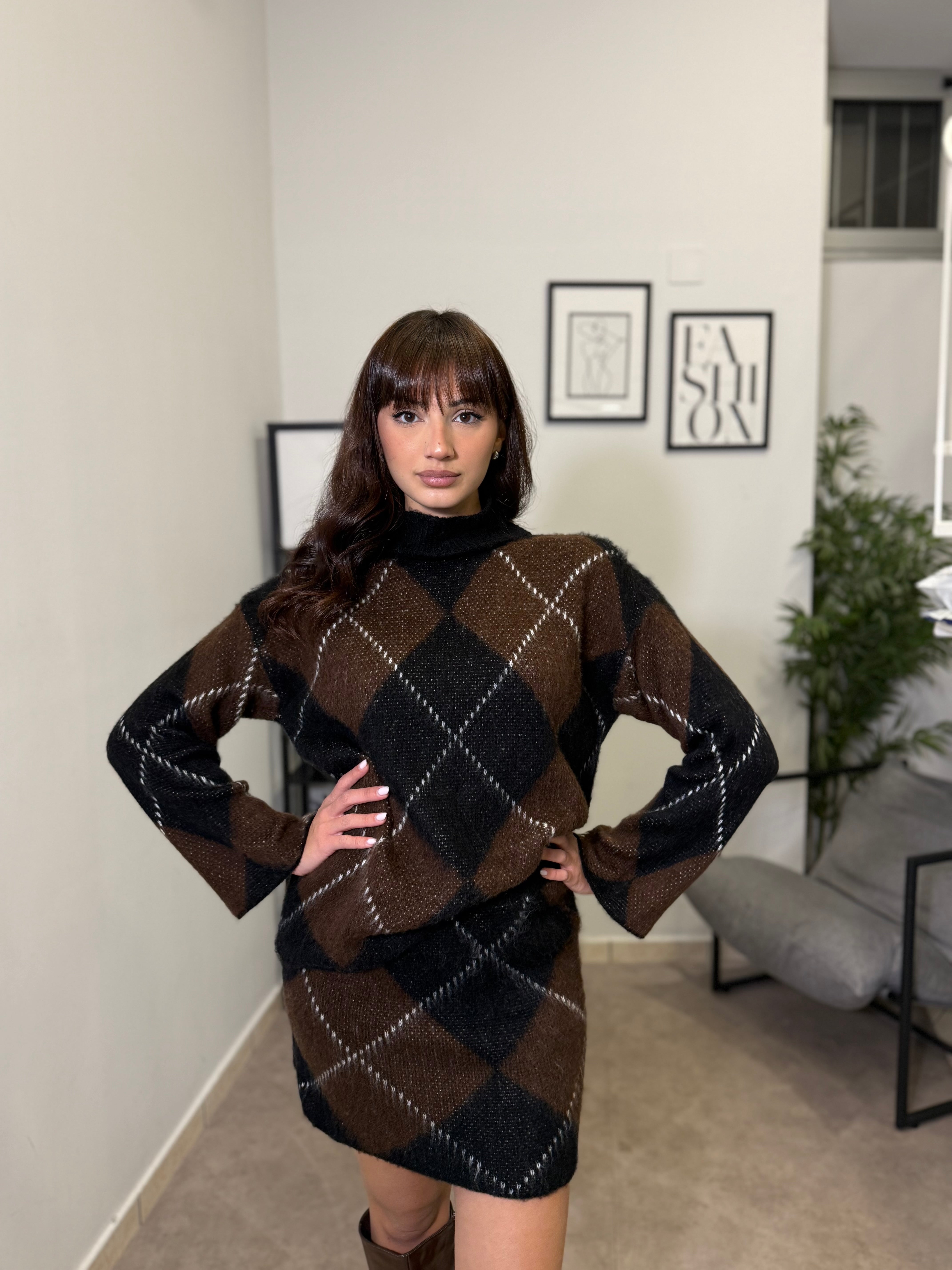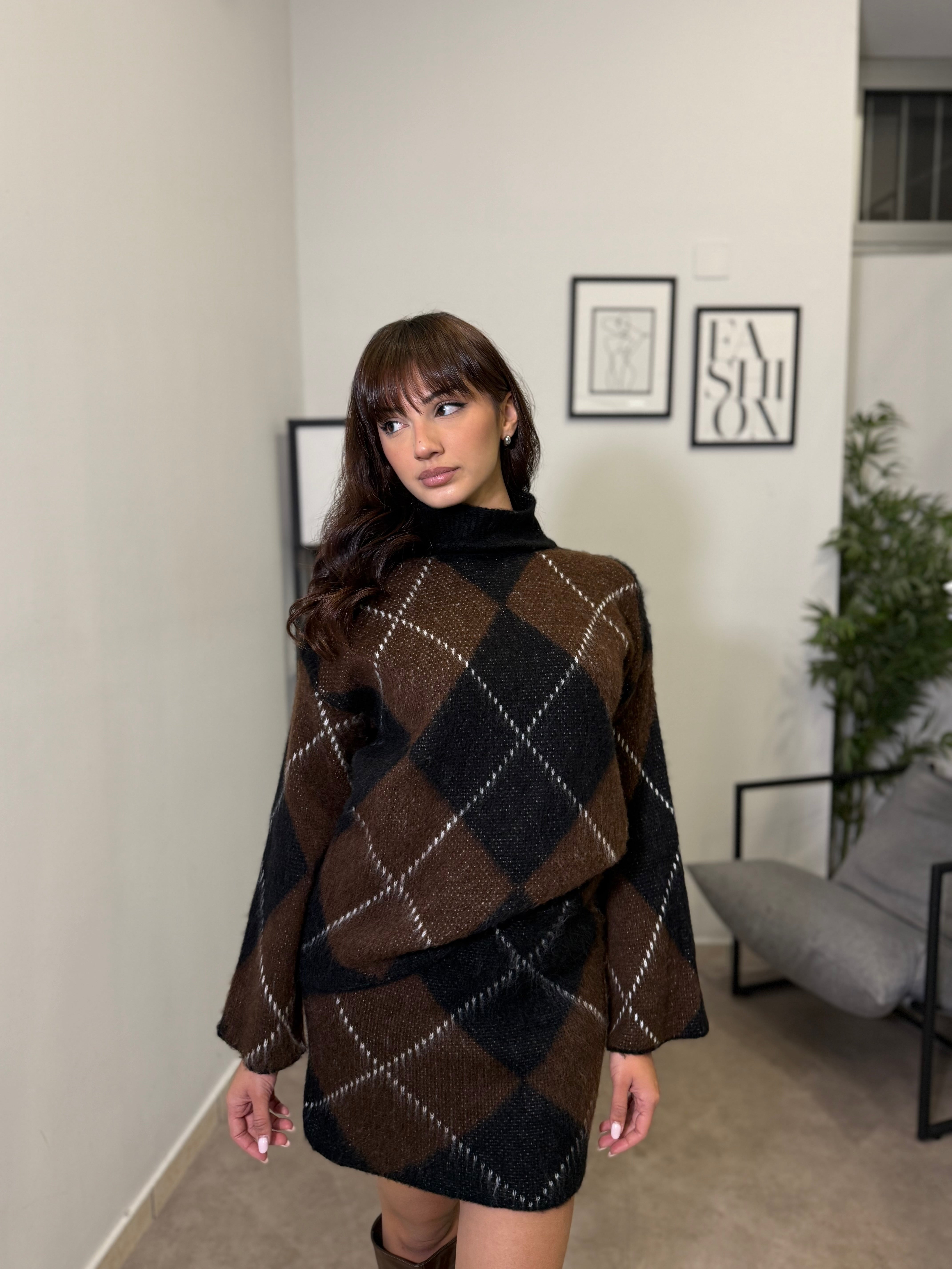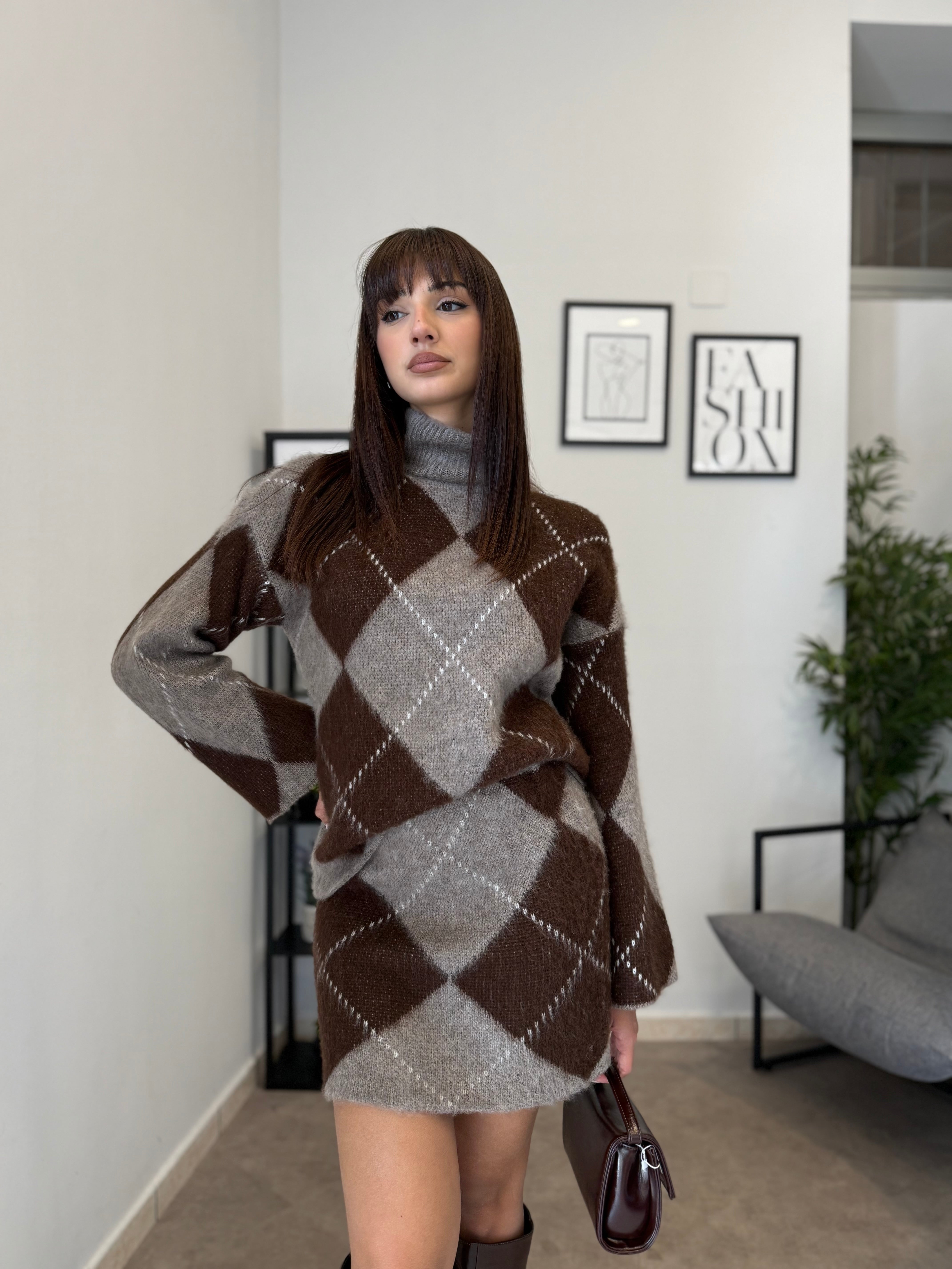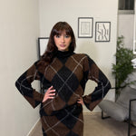 Completo con gonna e maglione a rombi. Tessuto elastico, veste bene dalla S alla L