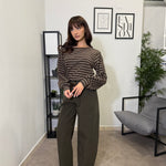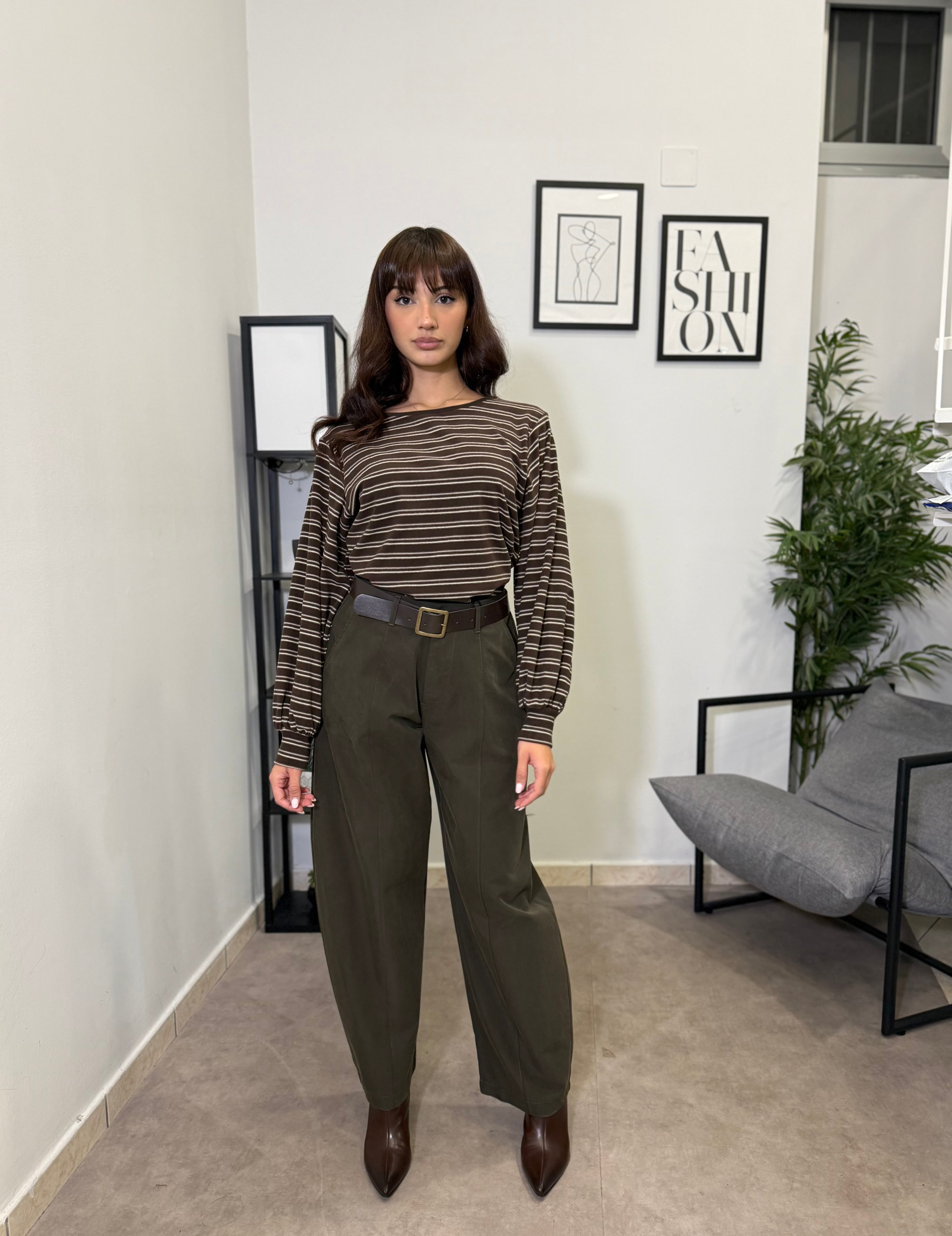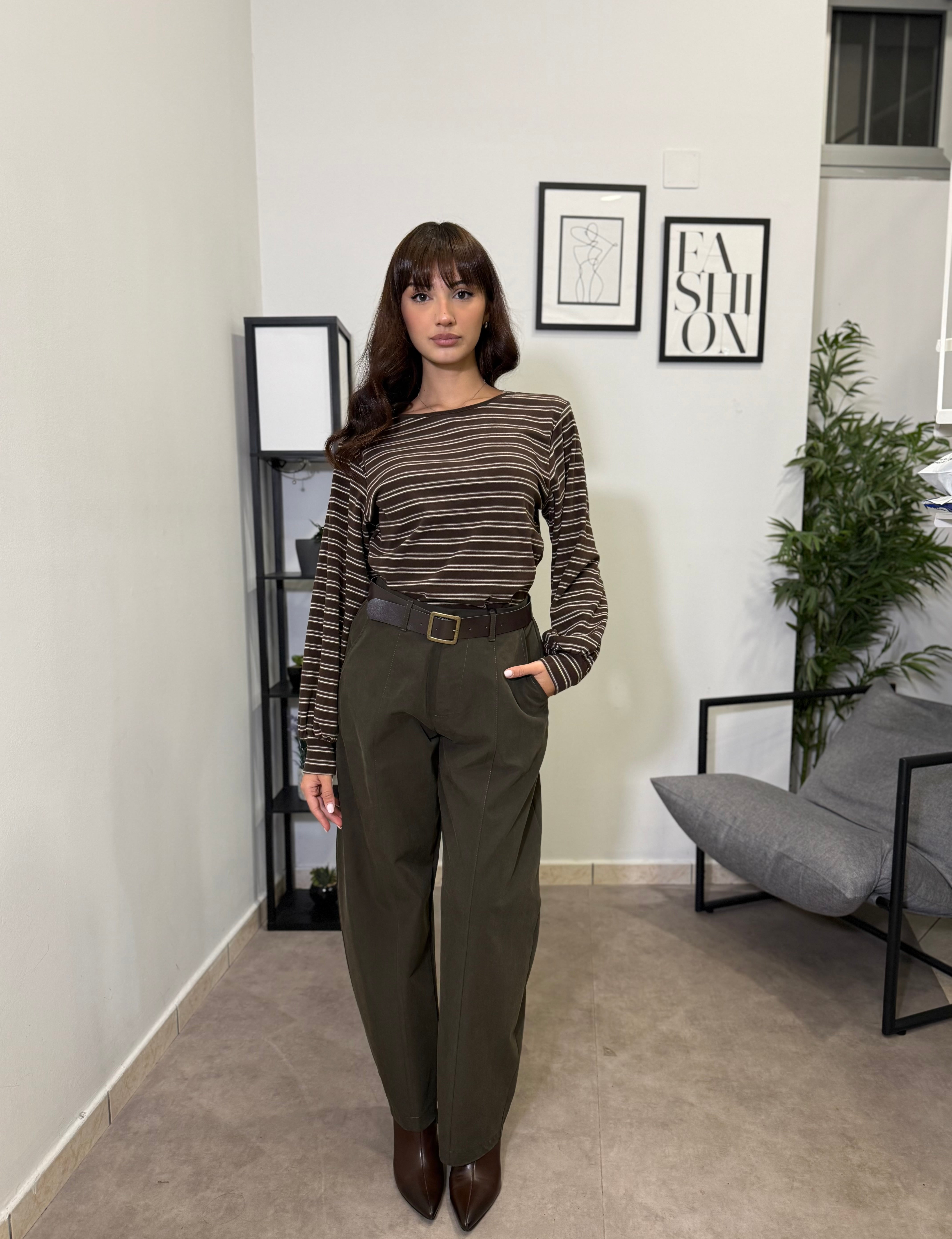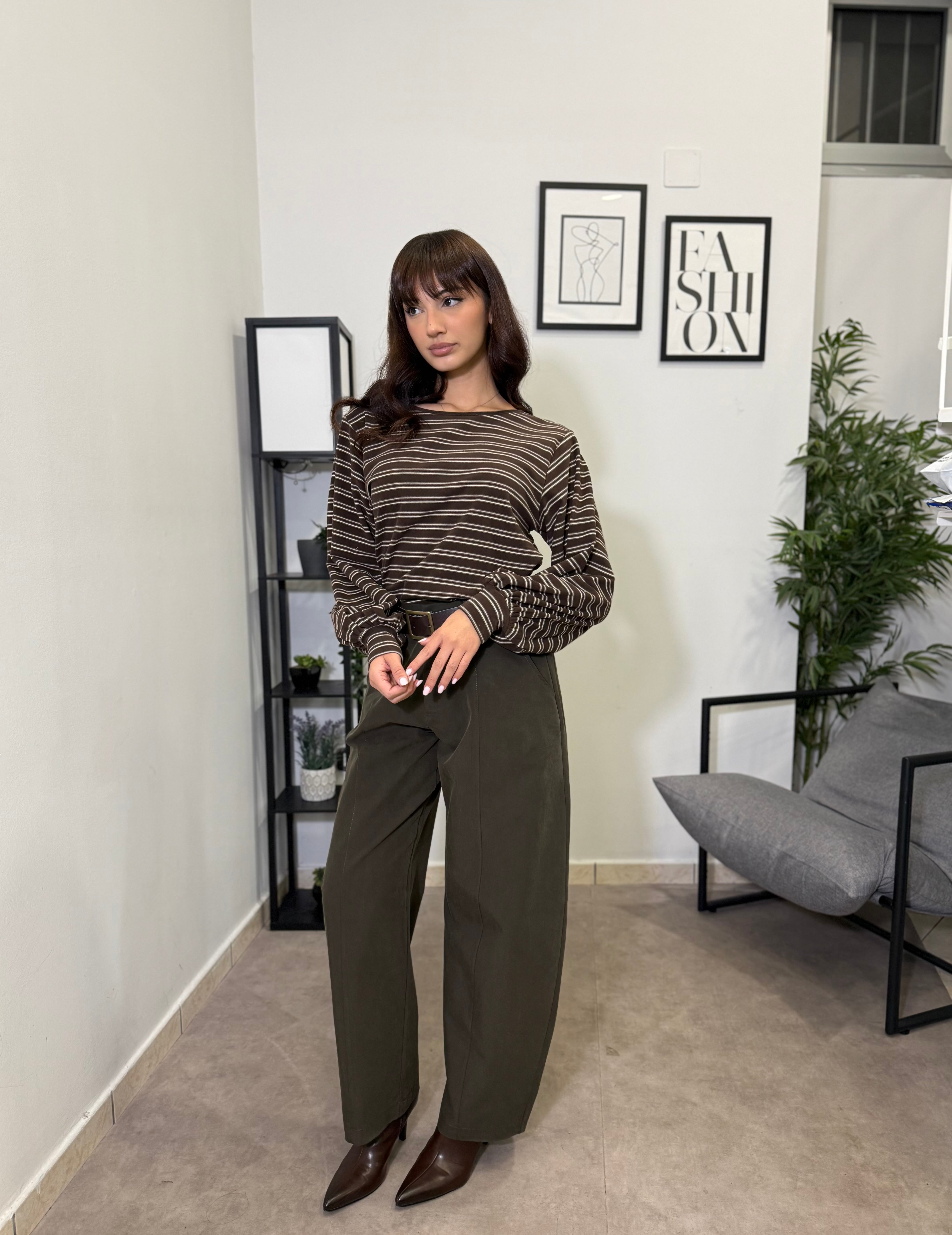 Maglia a righe con fondo marrone, vestibilità comoda!