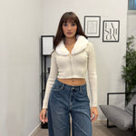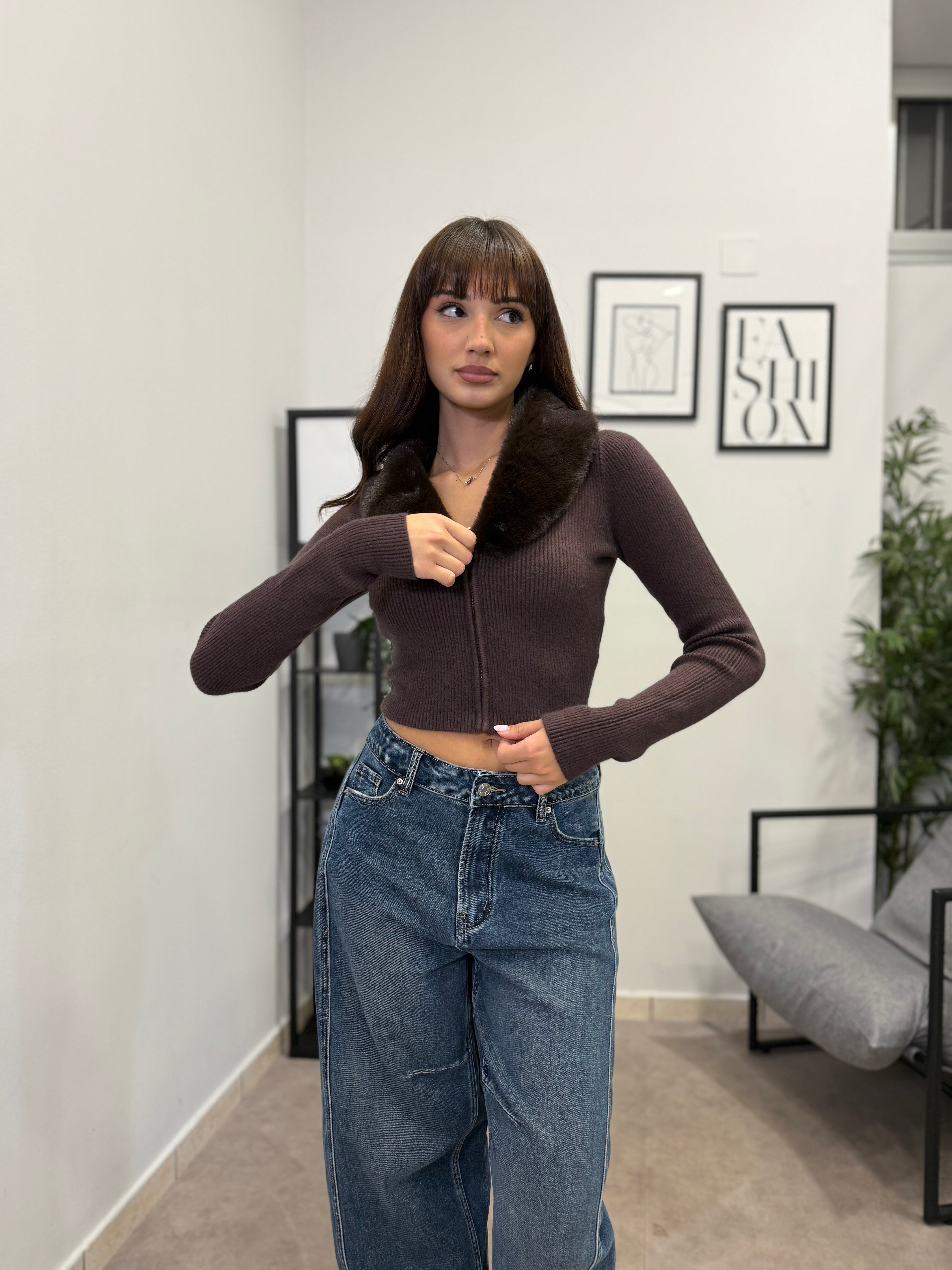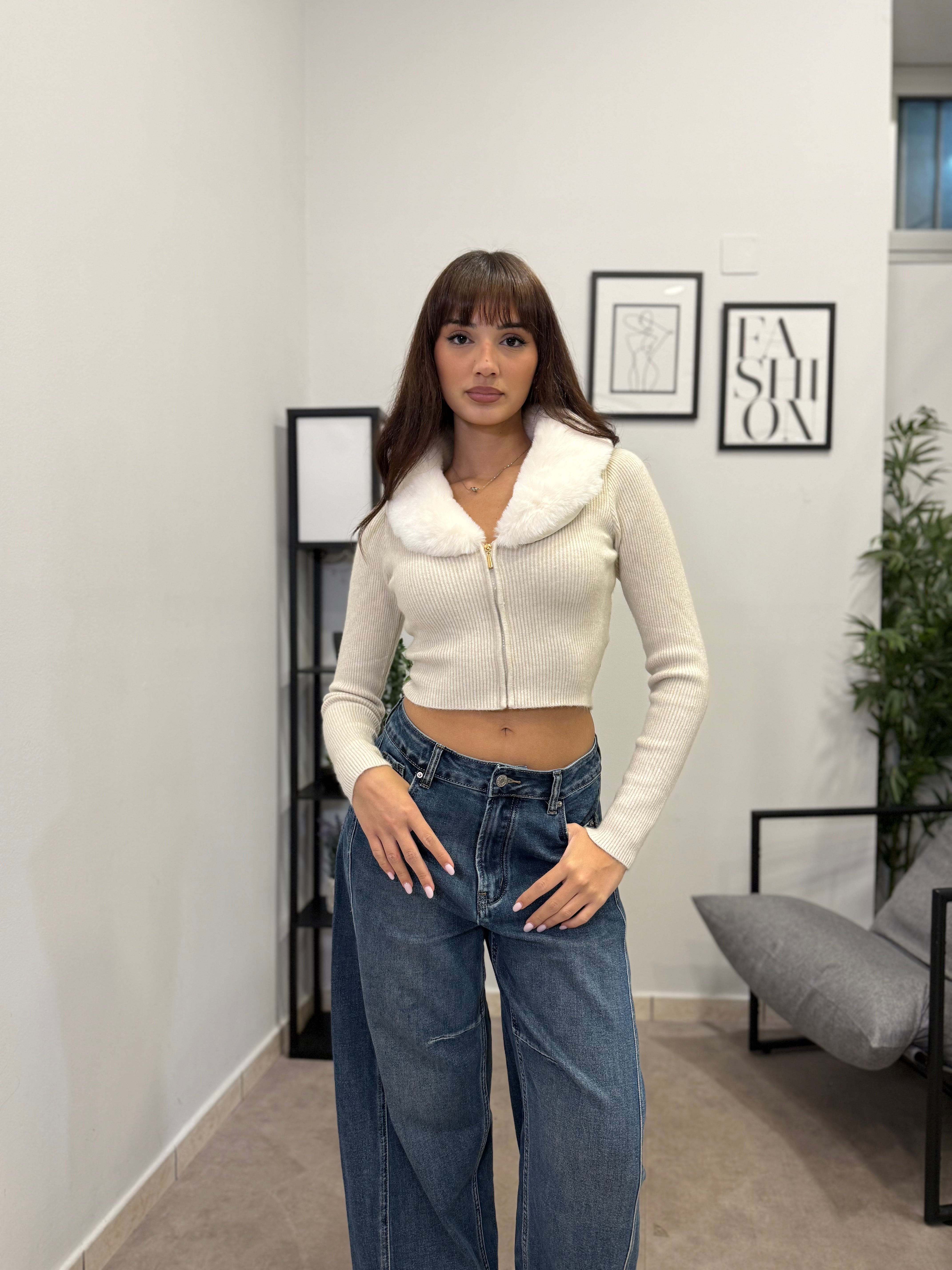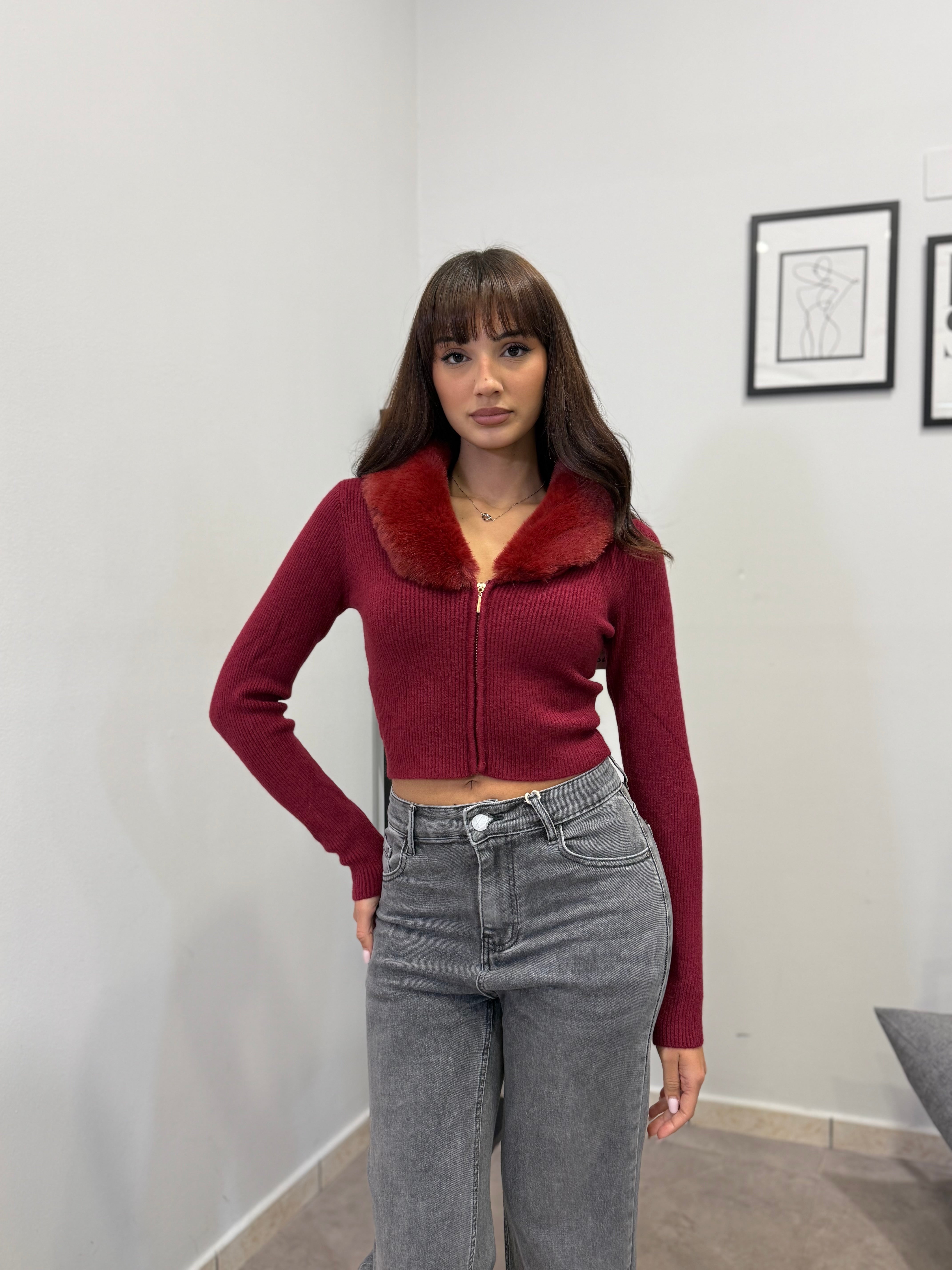 Pull corto a costine con zip oro e pelliccia! La pelliccia non è removibile. Veste bene dalla XS alla M/L