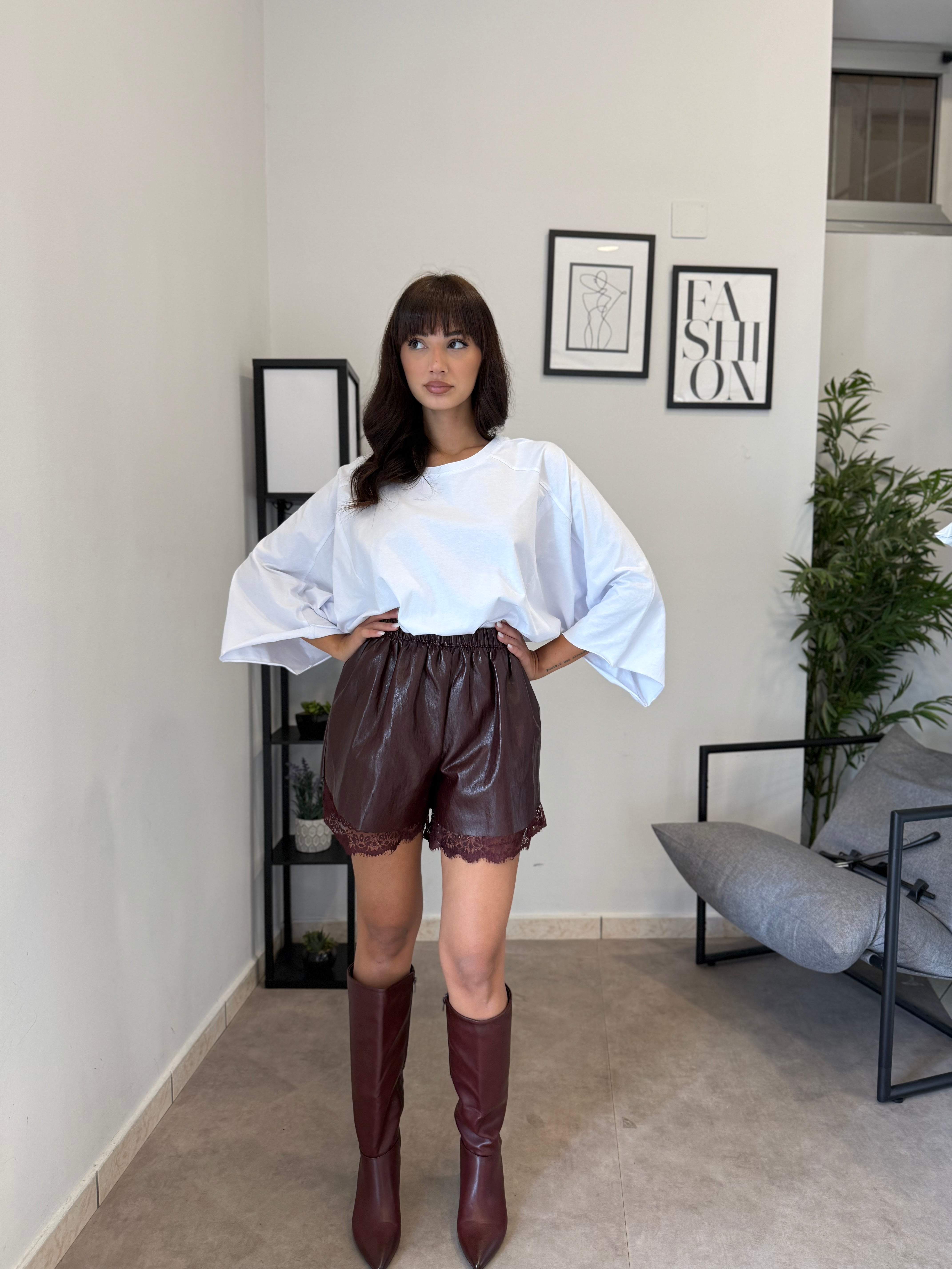 Pantaloncino Ecopelle Dettagli in pizzo 2634