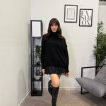 Maxi pull con applicazioni di pizzo sul fondo. Veste bene dalla S alla L