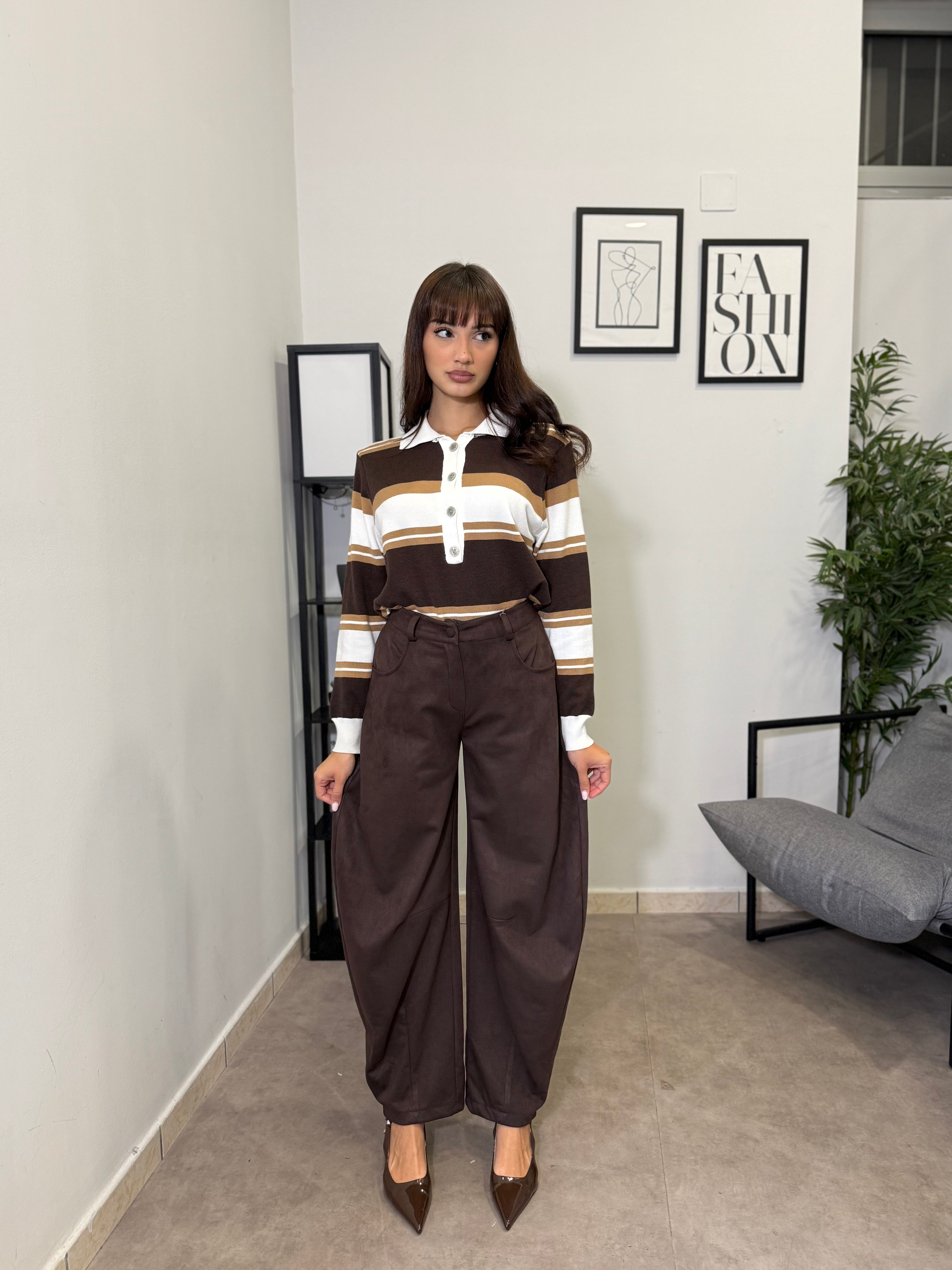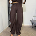 Pantalone vita alta, effetto camoscio con molla sul retro vita! Veste bene dalla S alla L