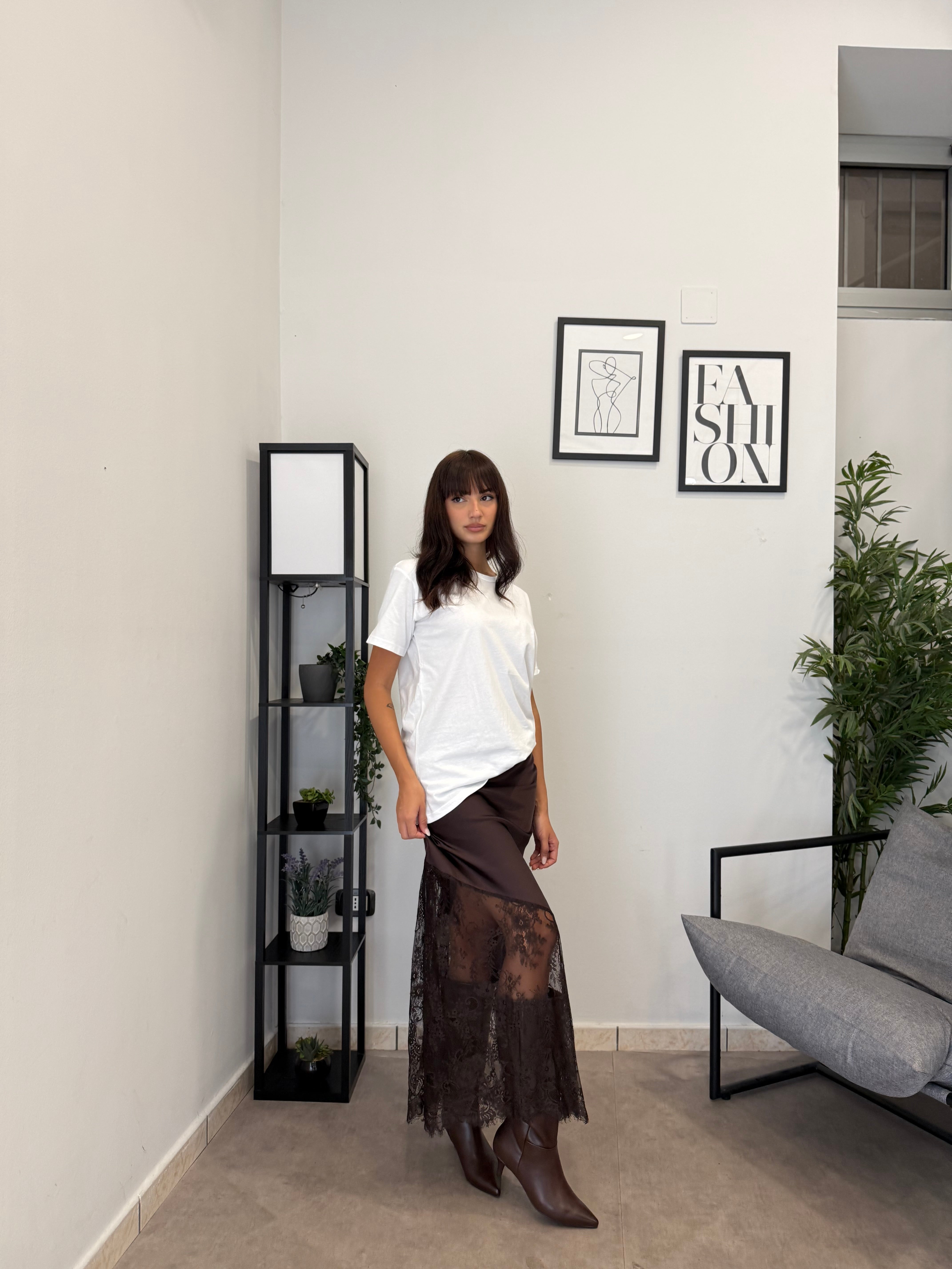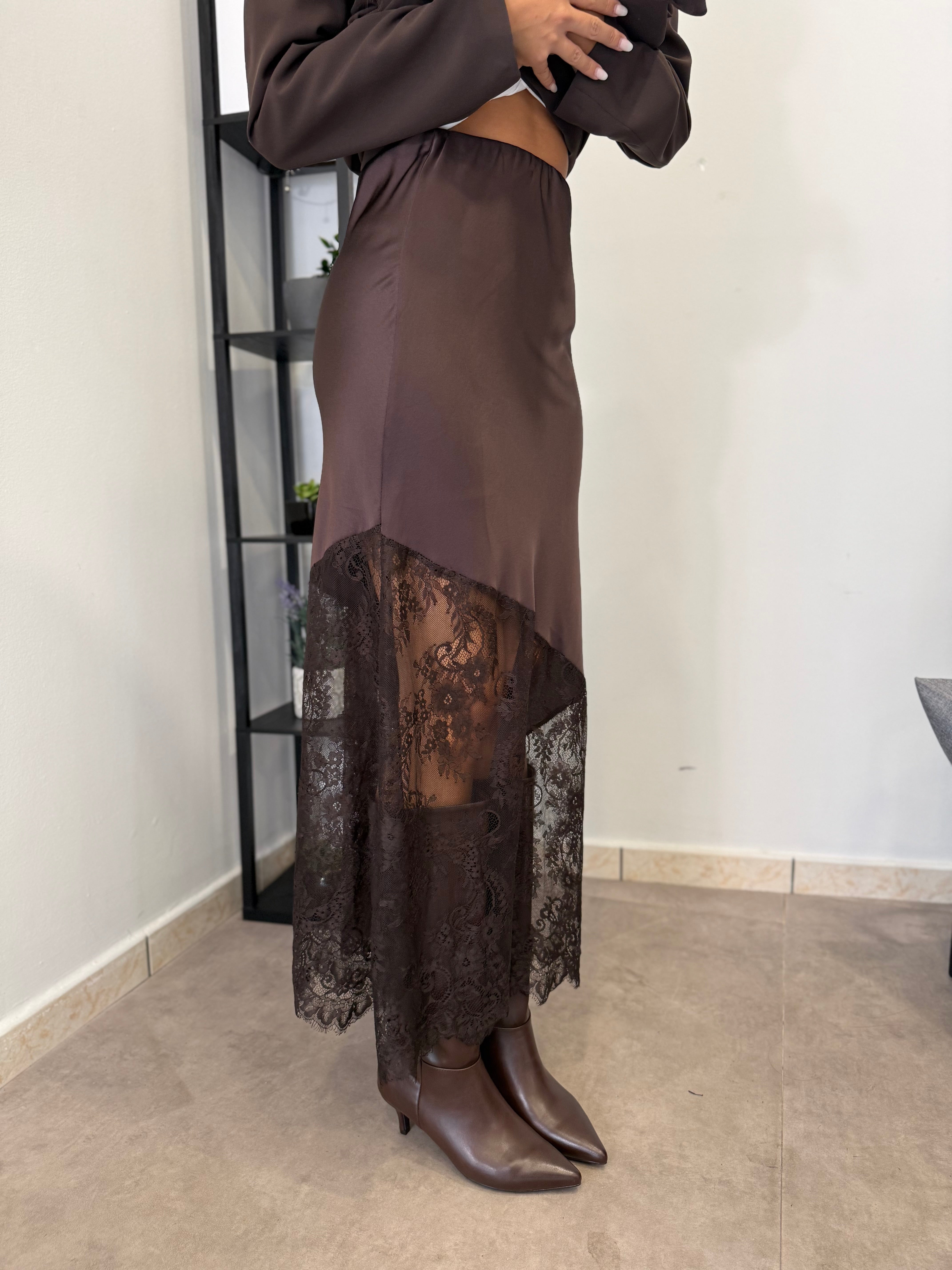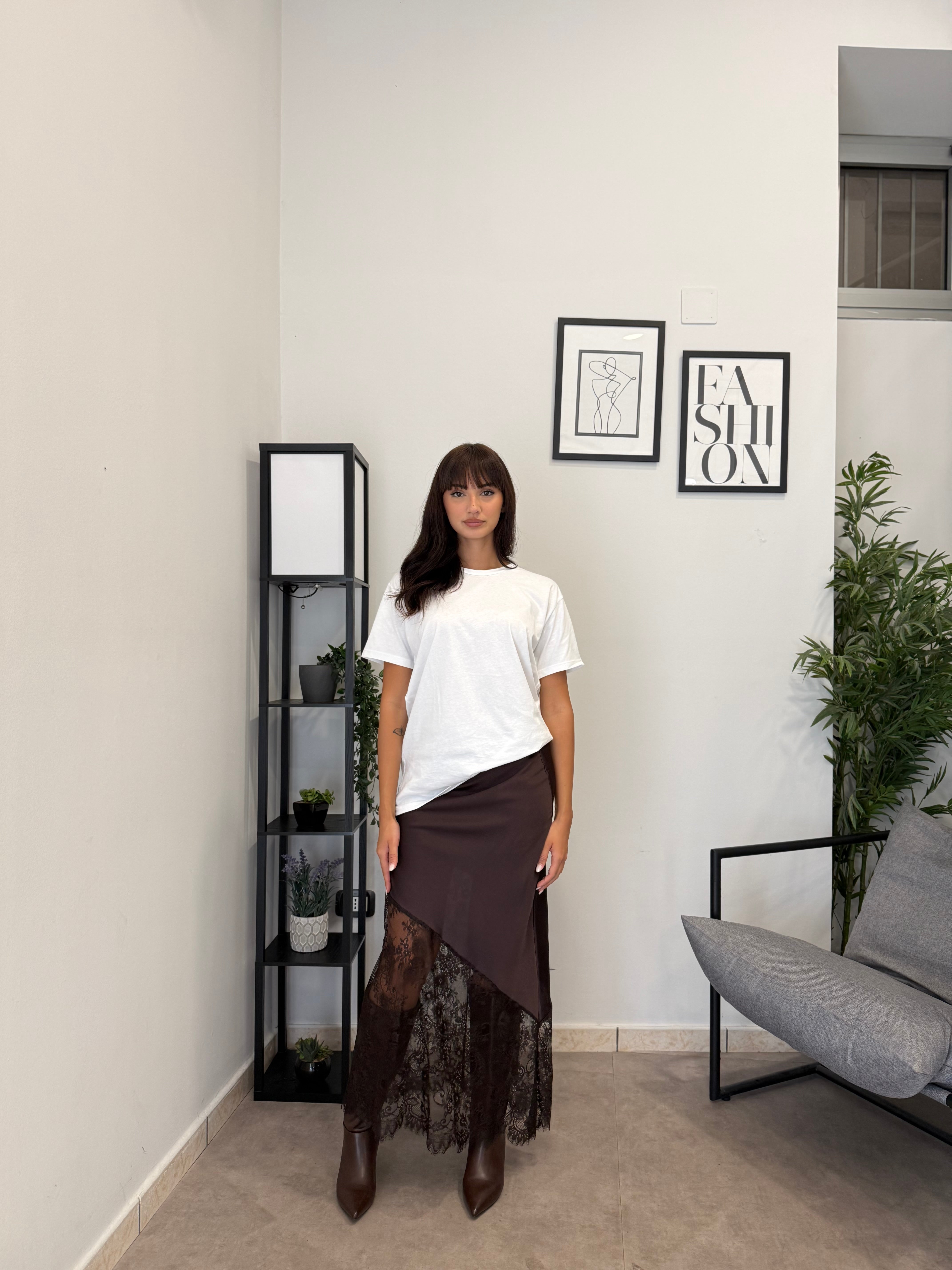 Gonnellone in simil raso con pizzo applicato sul fondo! Molla in vita, veste bene dalla S alla L (44ita)