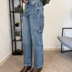 Jeans vita alta, tessuto fermo. Modello ballon, Marta indossa tg S
