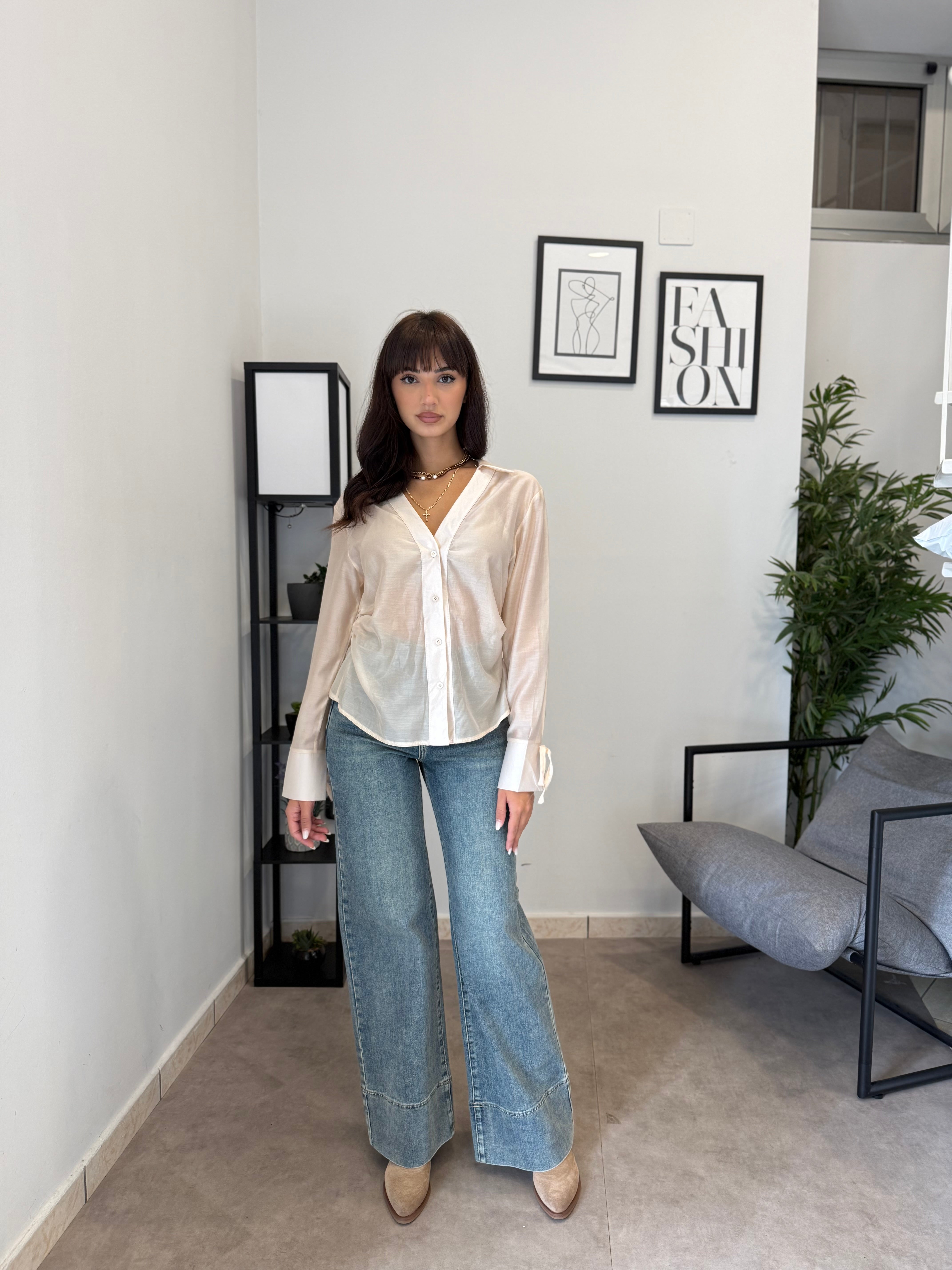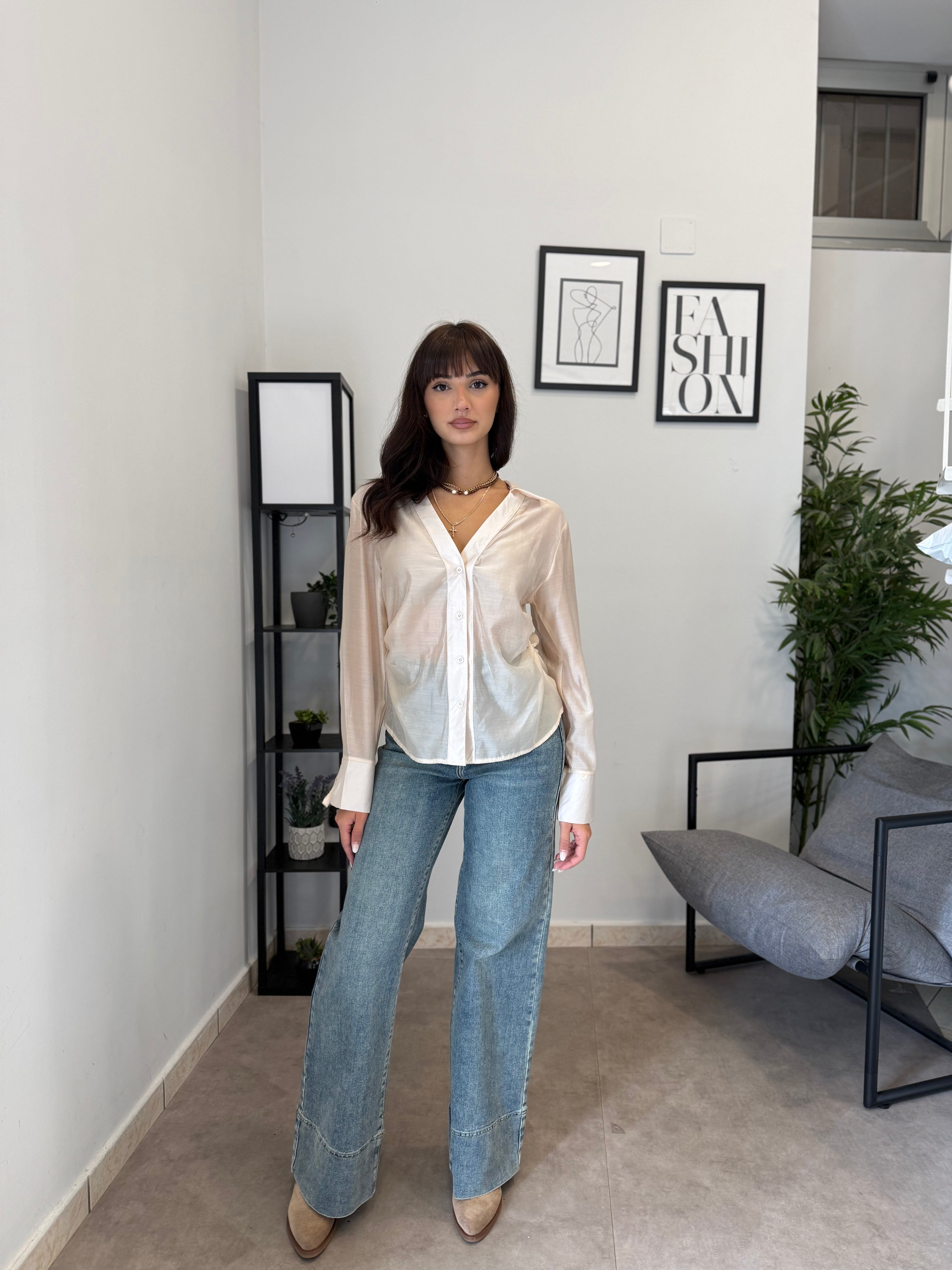 Jeans vita alta con gamba ampia, tessuto elastico. Marta indossa TG XS/34eu