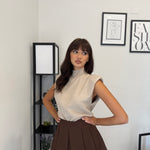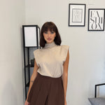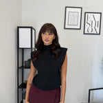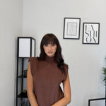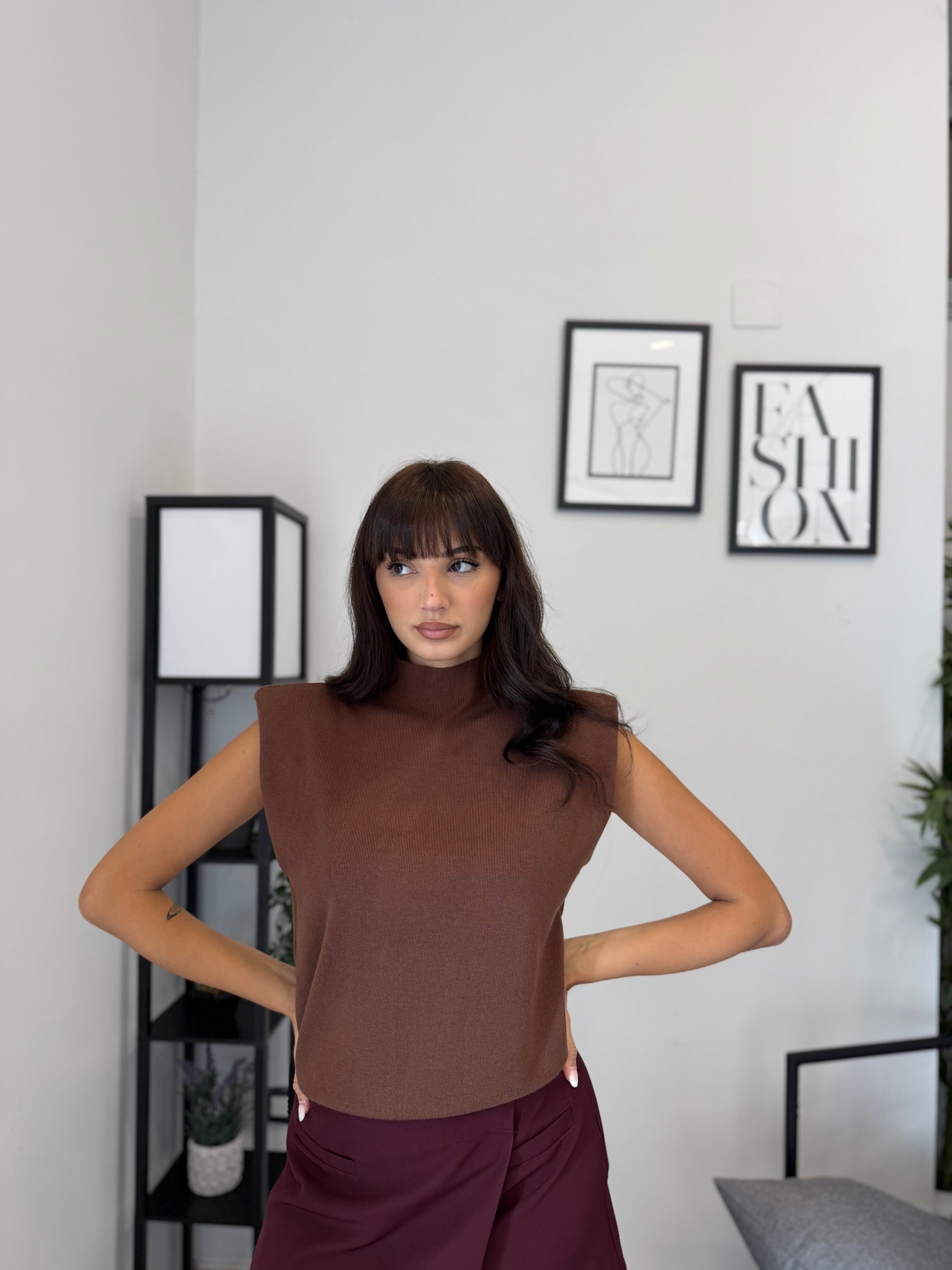 Maglia in misto viscosa, tessuto elastico con spalline applicate e mezzocollo. Veste bene dalla S alla L