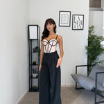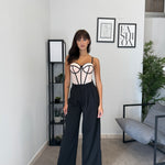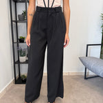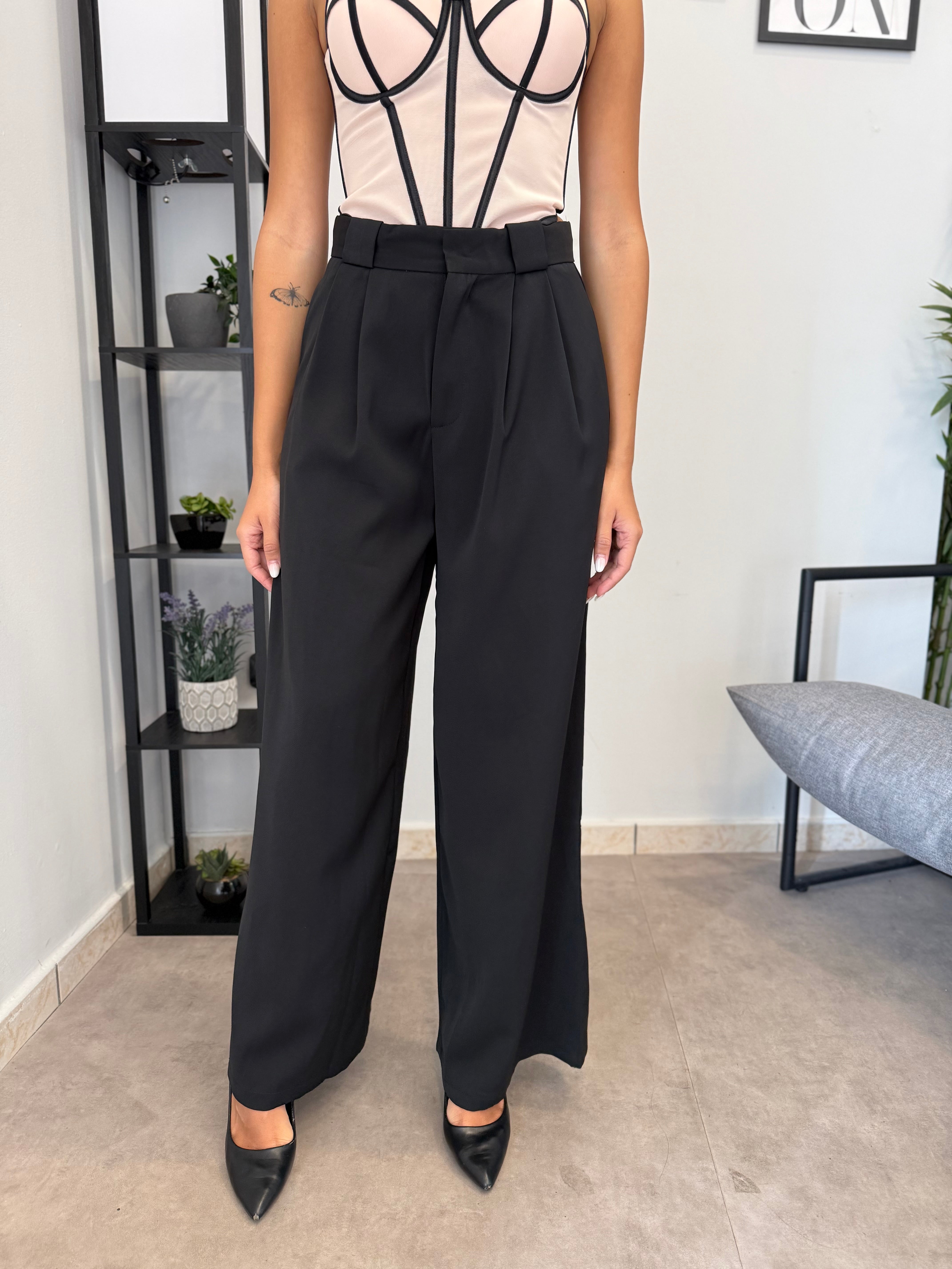 Pantalone palazzo con gamba ampia e chiusura frontale invisibile. Tessuto non elastico. Marta indossa tg S