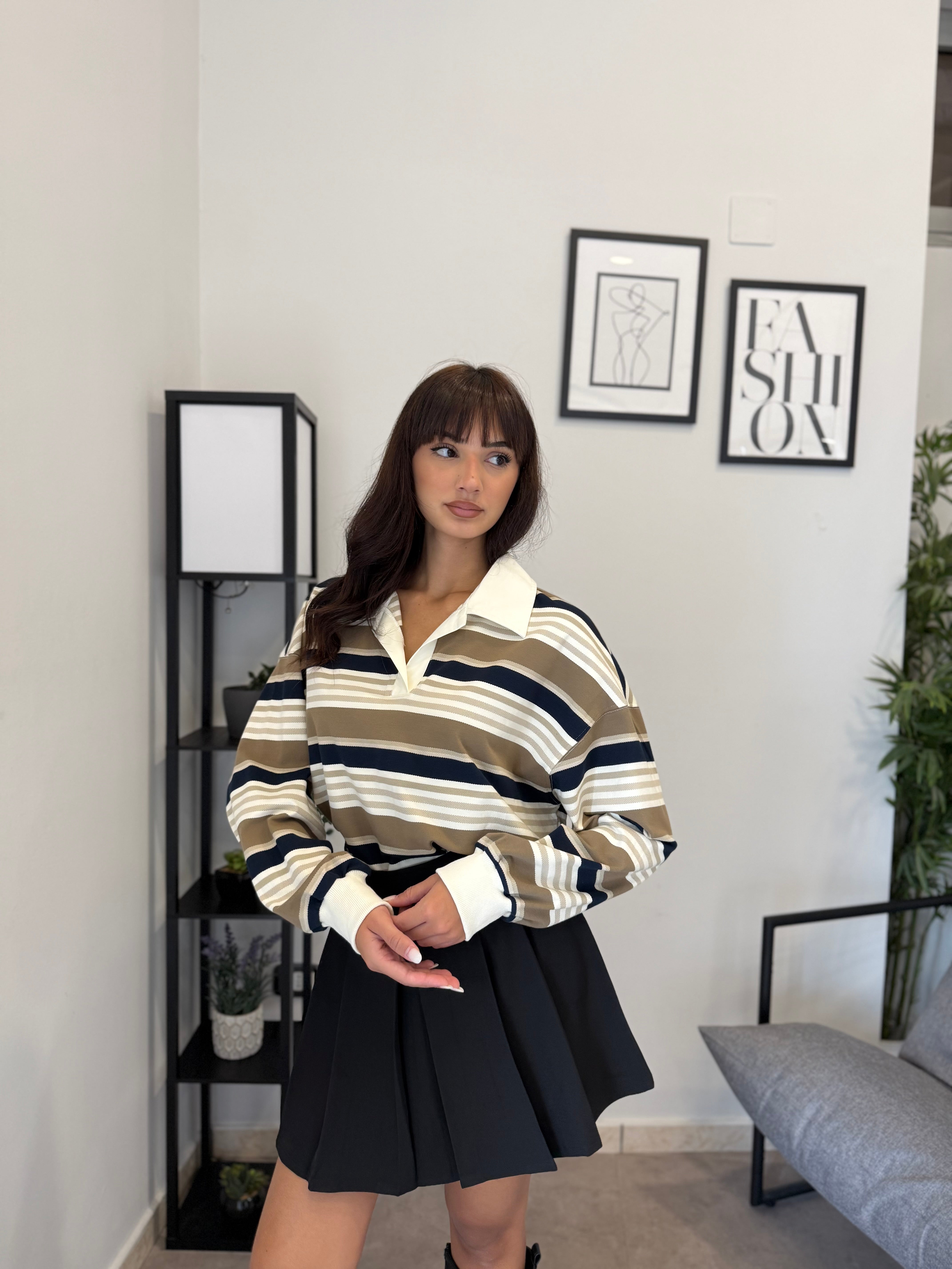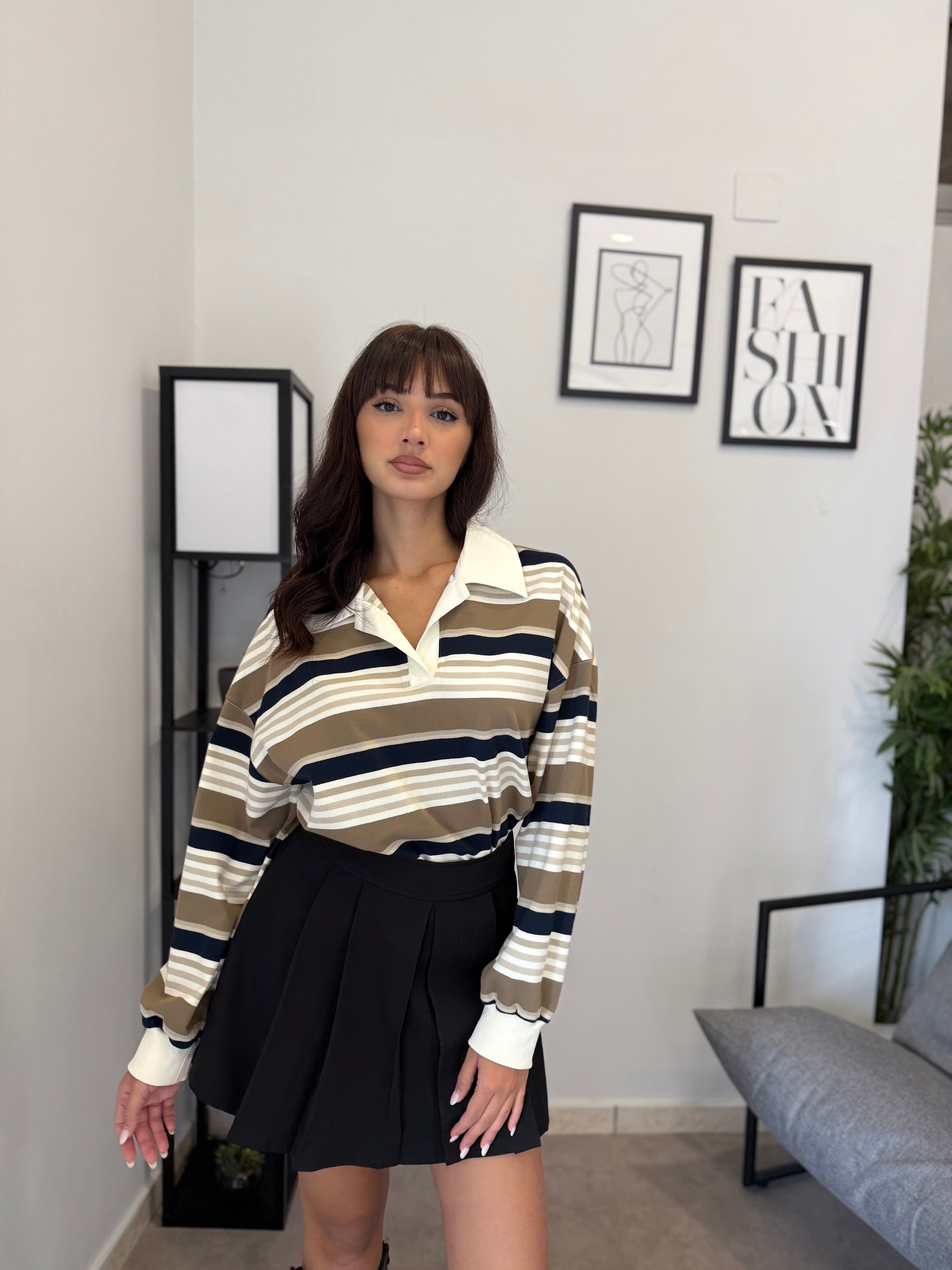 Maglia in cotone con collo, veste bene dalla S alla L