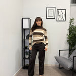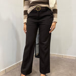 Non disponibilePantalone in monolana con molla sul retro, veste comodo in vita grazie alla molla in vita! Vita alta, Marta indossa tg S