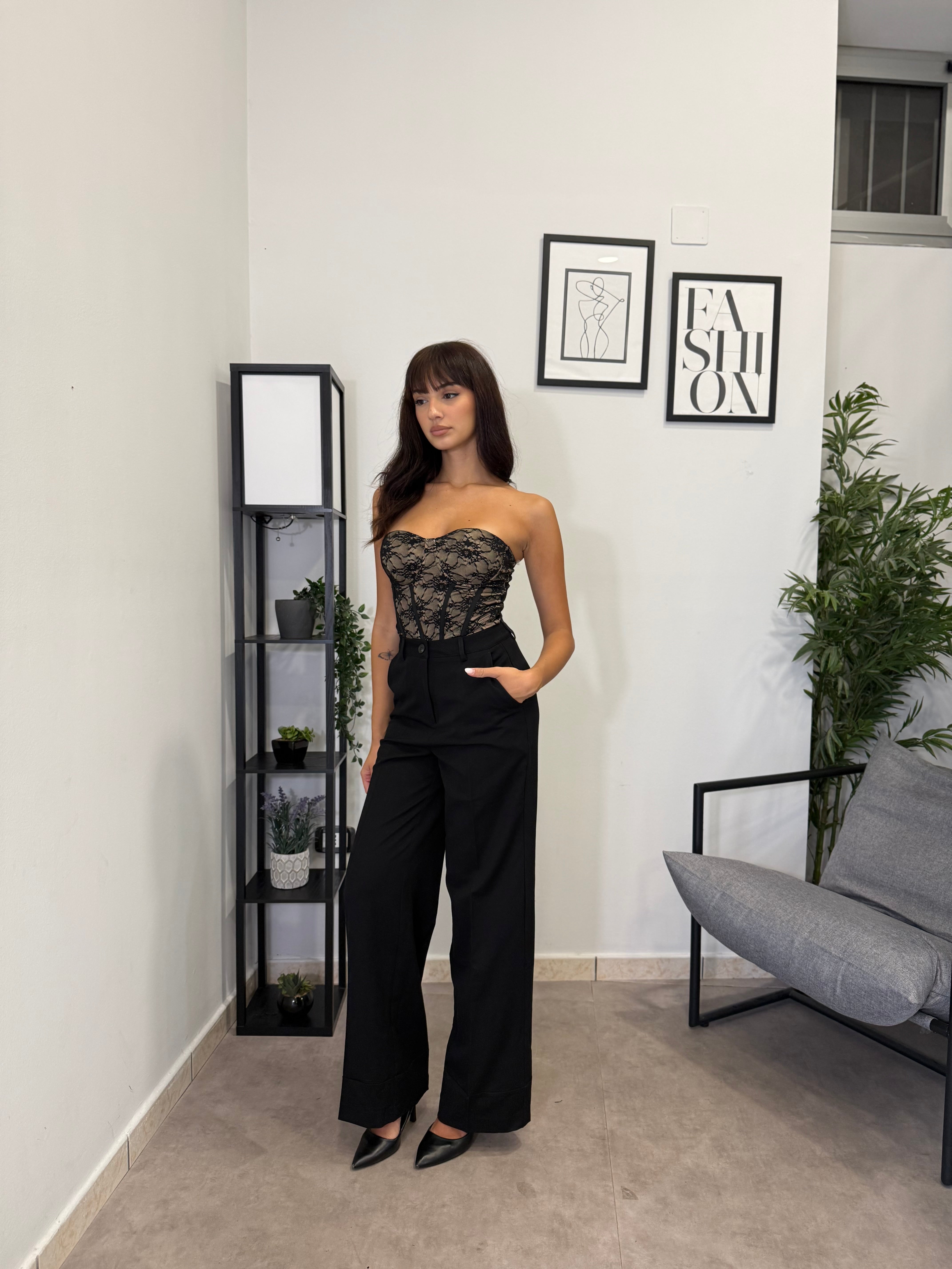 Non disponibilePantalone palazzo con cucitura alla caviglia. Bottone e zip frontali, tessuto non elastico. Marta indossa tg S