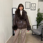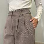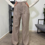Pantalone palazzo con chiusura frontale invisibile. Fantasia sui toni terra! Marta indossa tg S ma veste leggermente comodo!