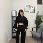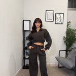 Pantalone con gamba larga e pile interno. La molla in vita si può regolare grazie alla coulisse