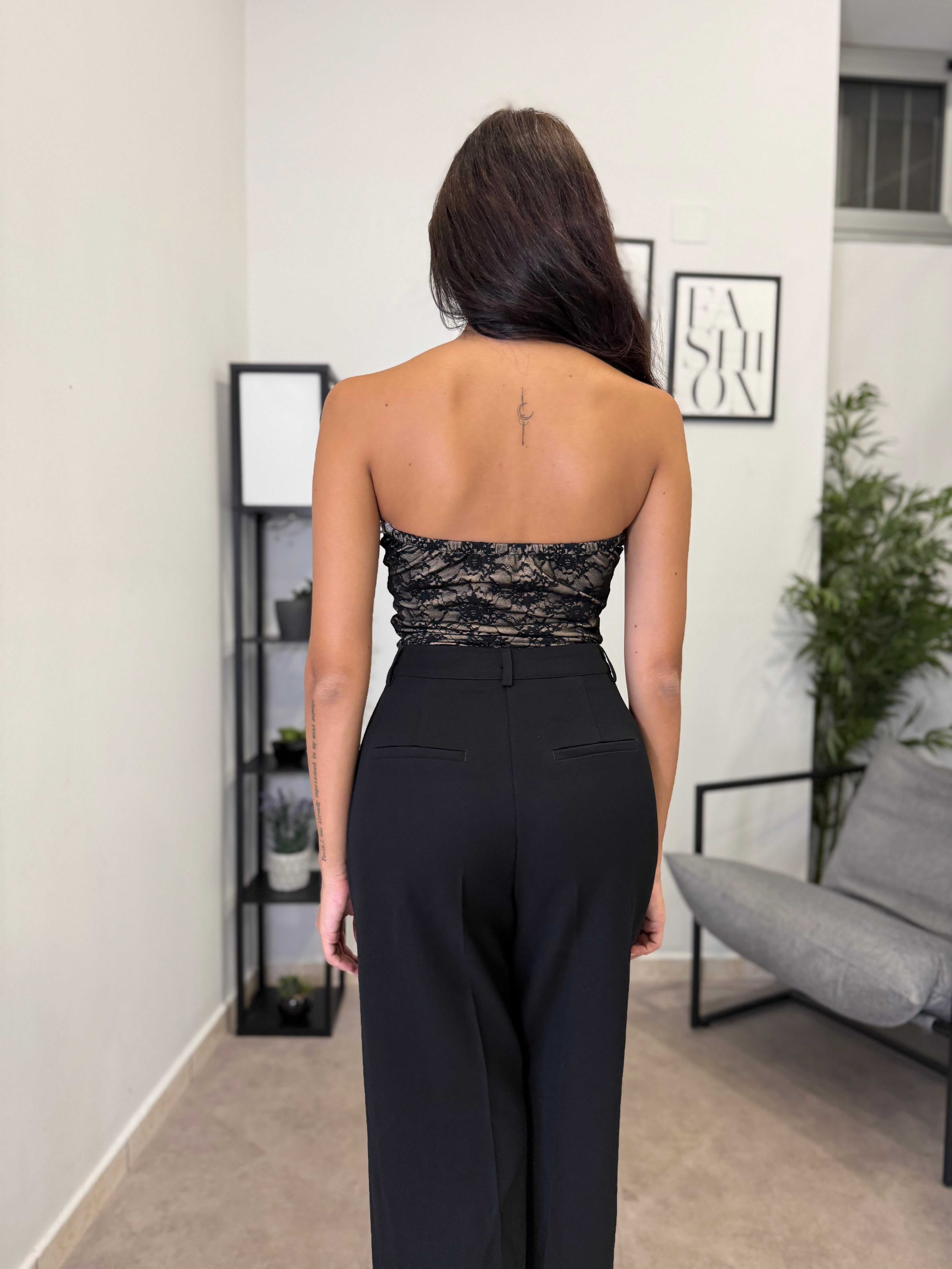Corpetto in pizzo elasticizzato ma senza zip. Ha le coppe, Marta indossa tg S/M