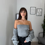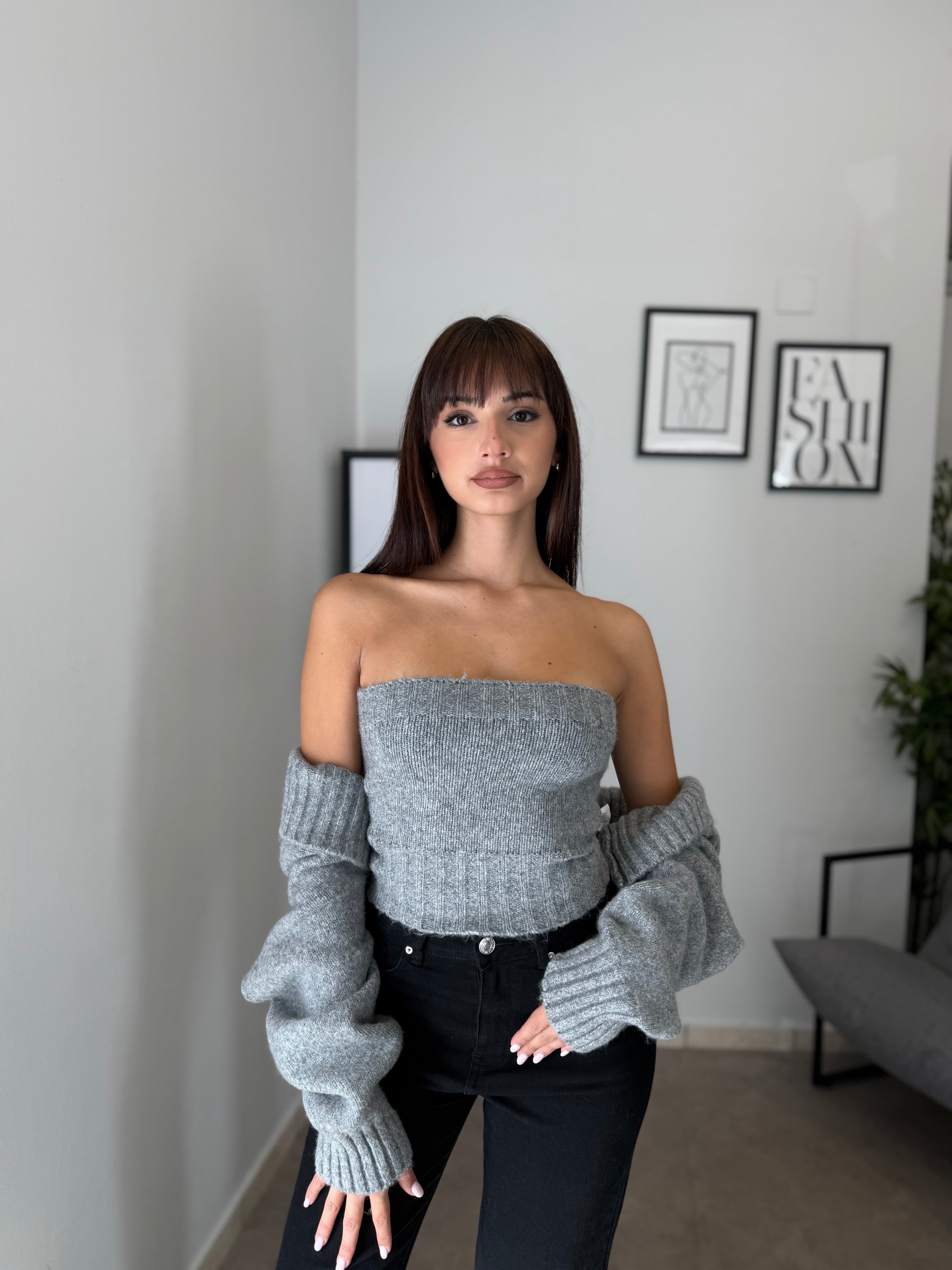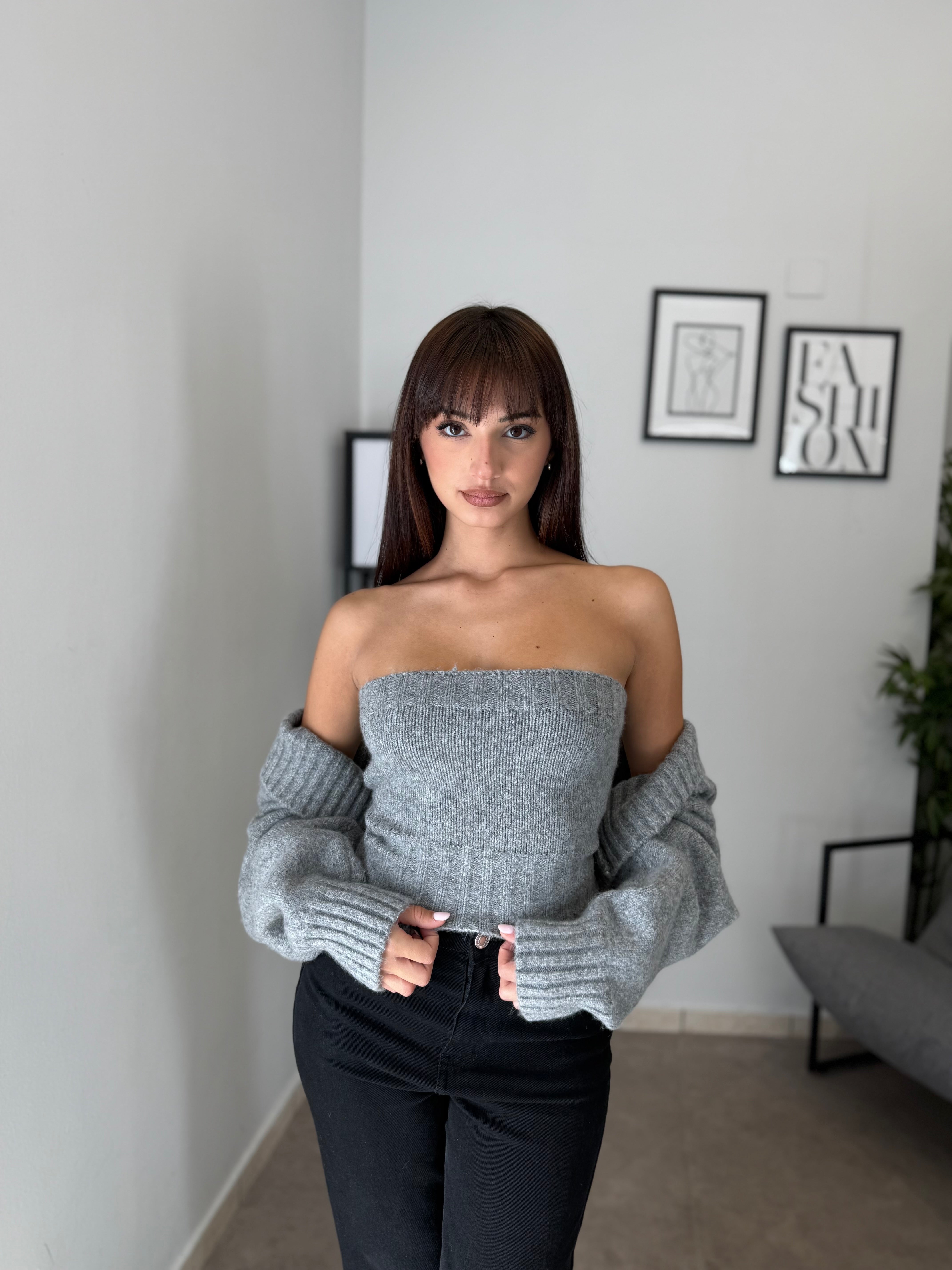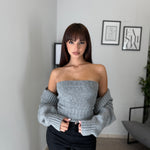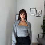 Completo in misto lana con coprispalle e crop to abbinato. Veste bene dalla XS alla M