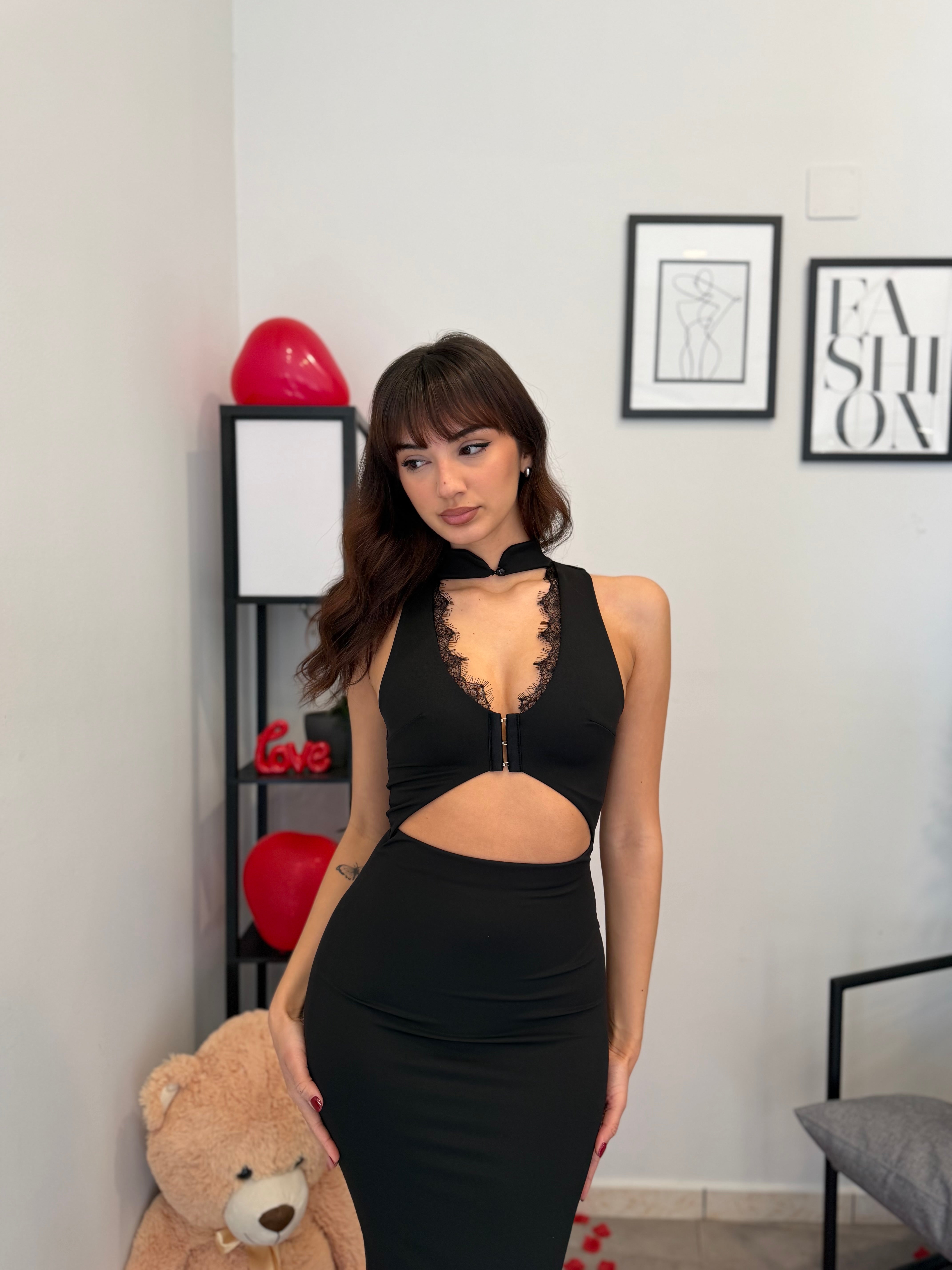 Abito in licra, lunghezza midi con scollatura frontale. Tessuto elastico, veste bene dalla XS alla M