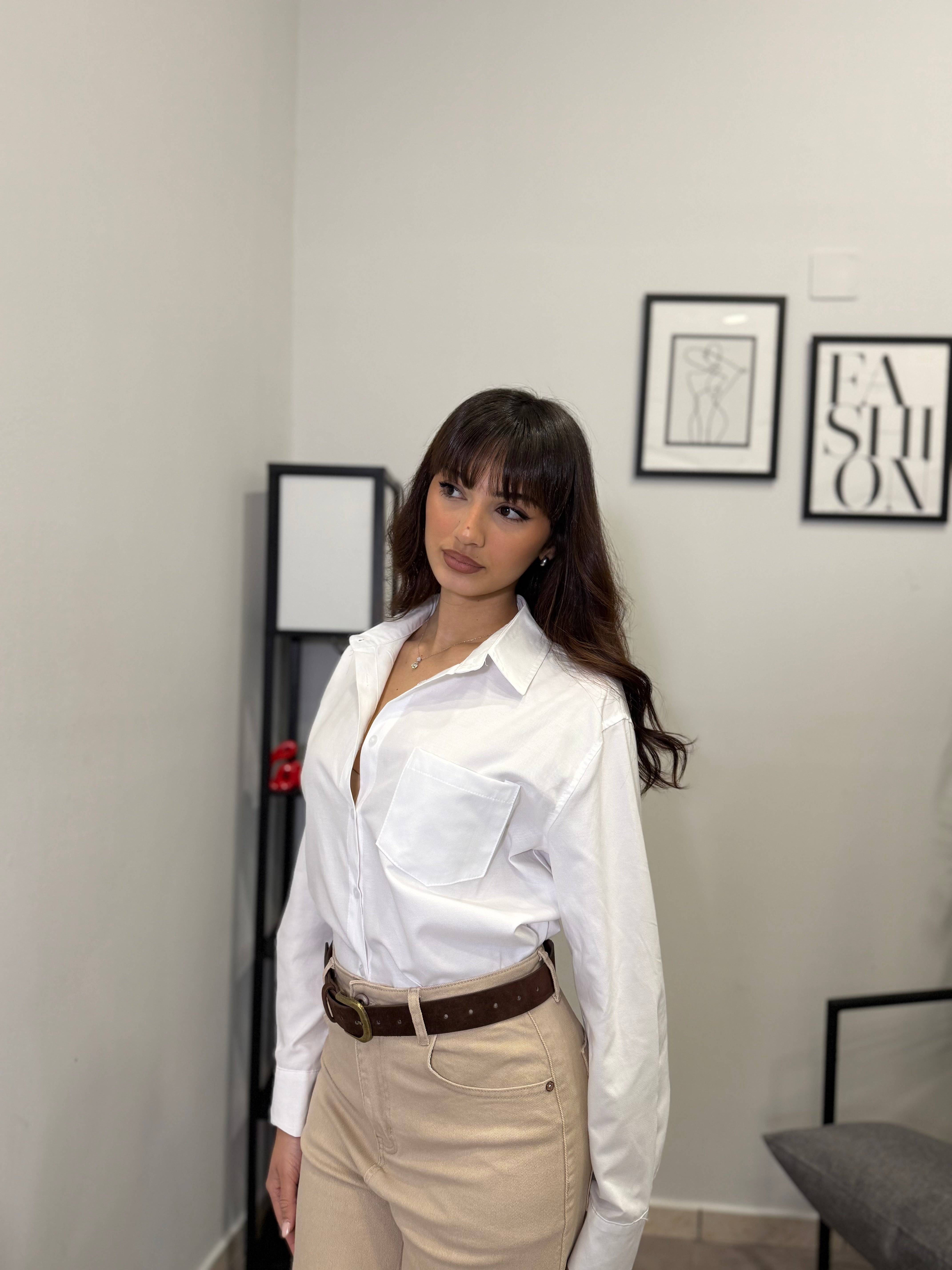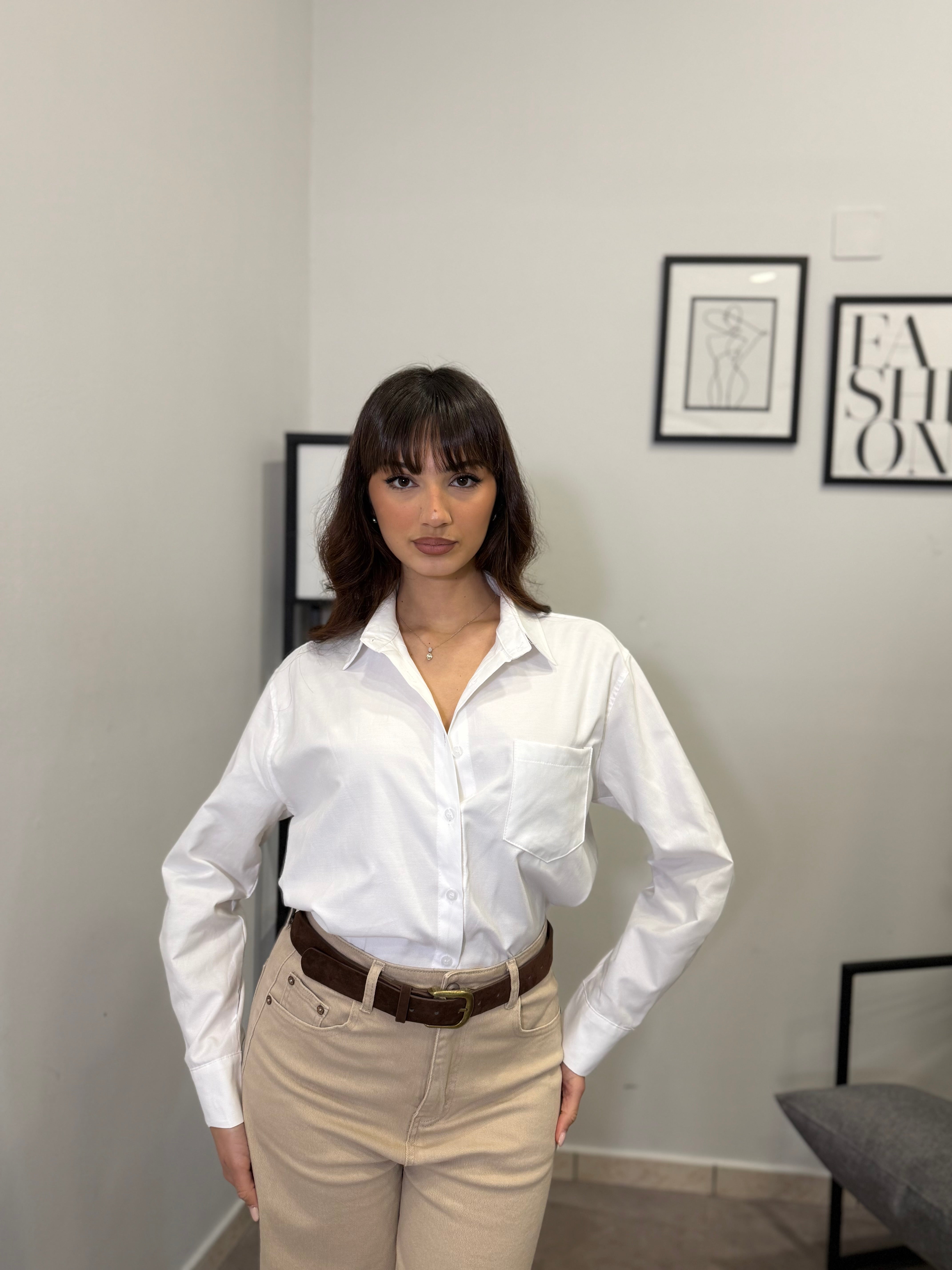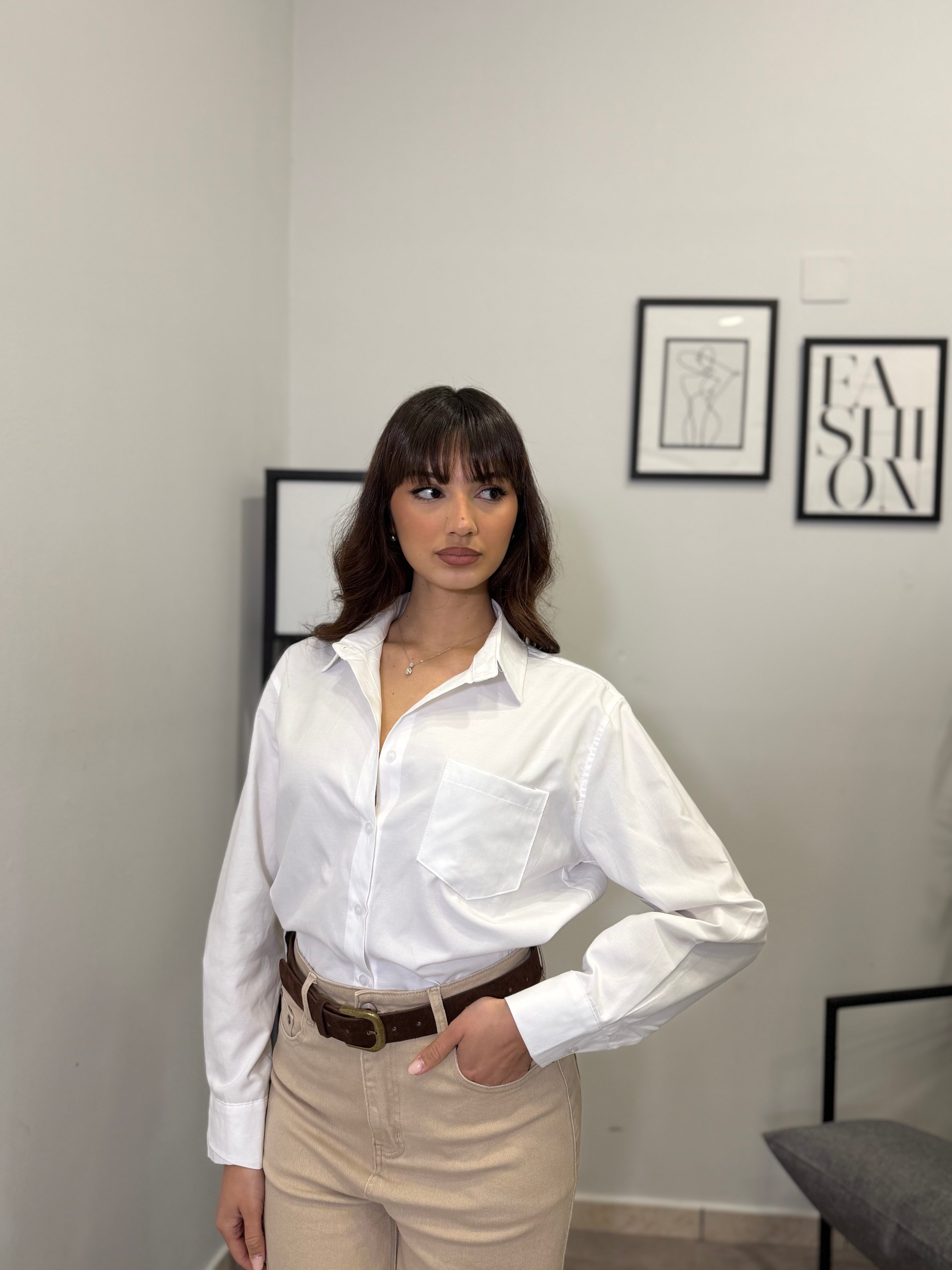 Camicia oversize con taschino in cotone. Vestibilità ampia