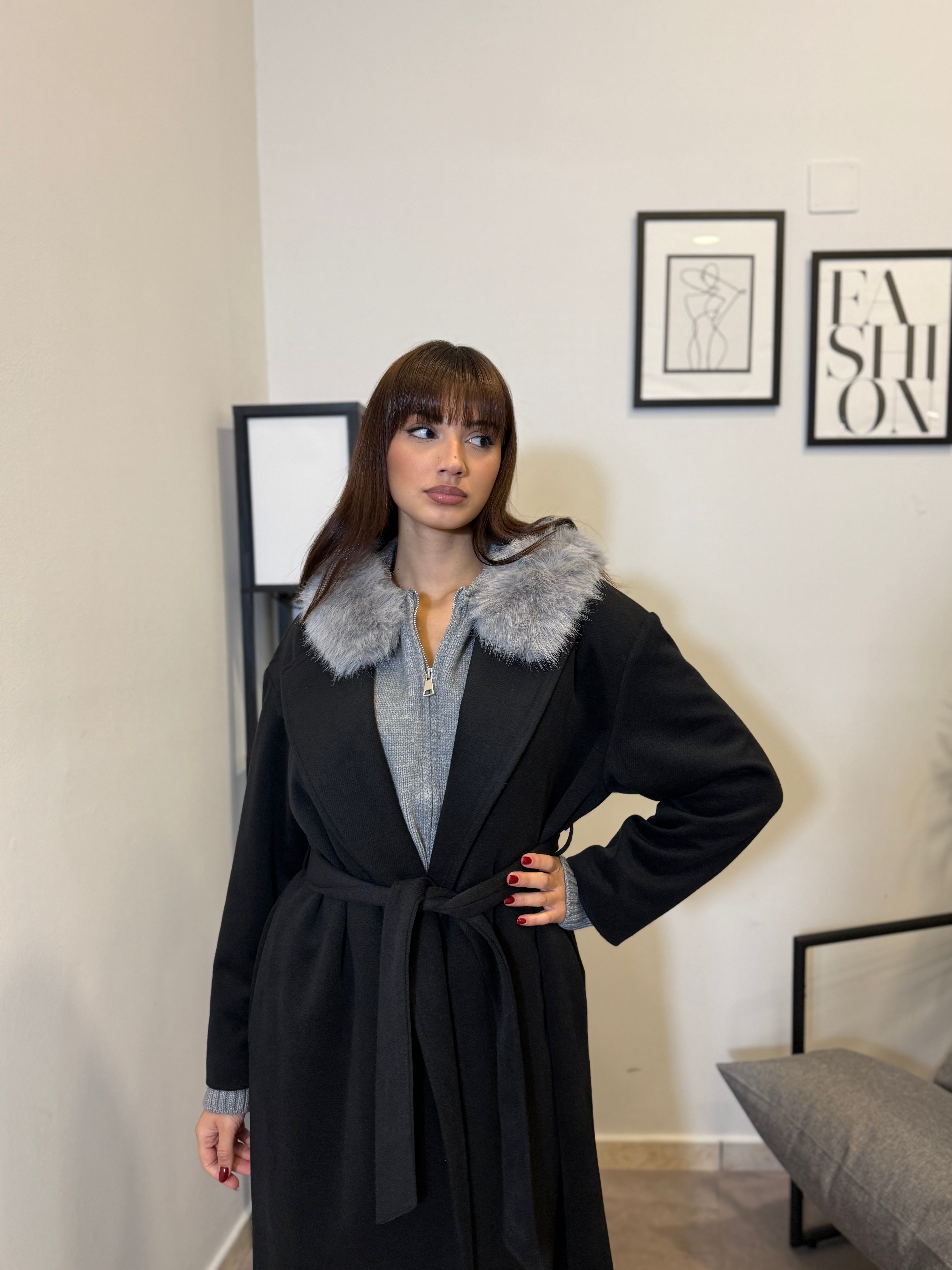 Cappotto morbido e lungo modello accappatoio. Cintura in vita regolabile. Marta indossa tg S.