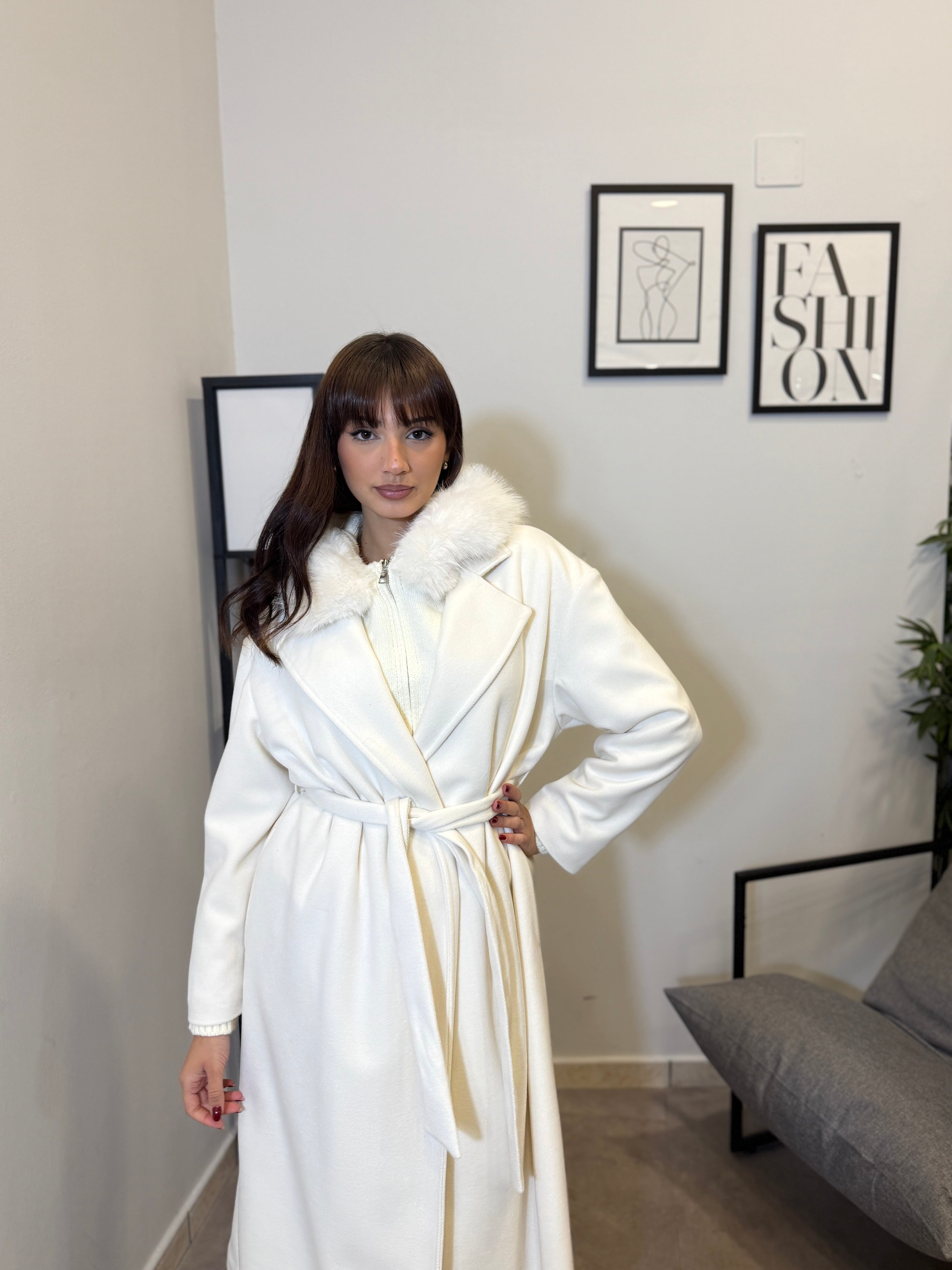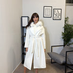 Cappotto morbido e lungo modello accappatoio. Cintura in vita regolabile. Marta indossa tg S.
