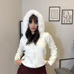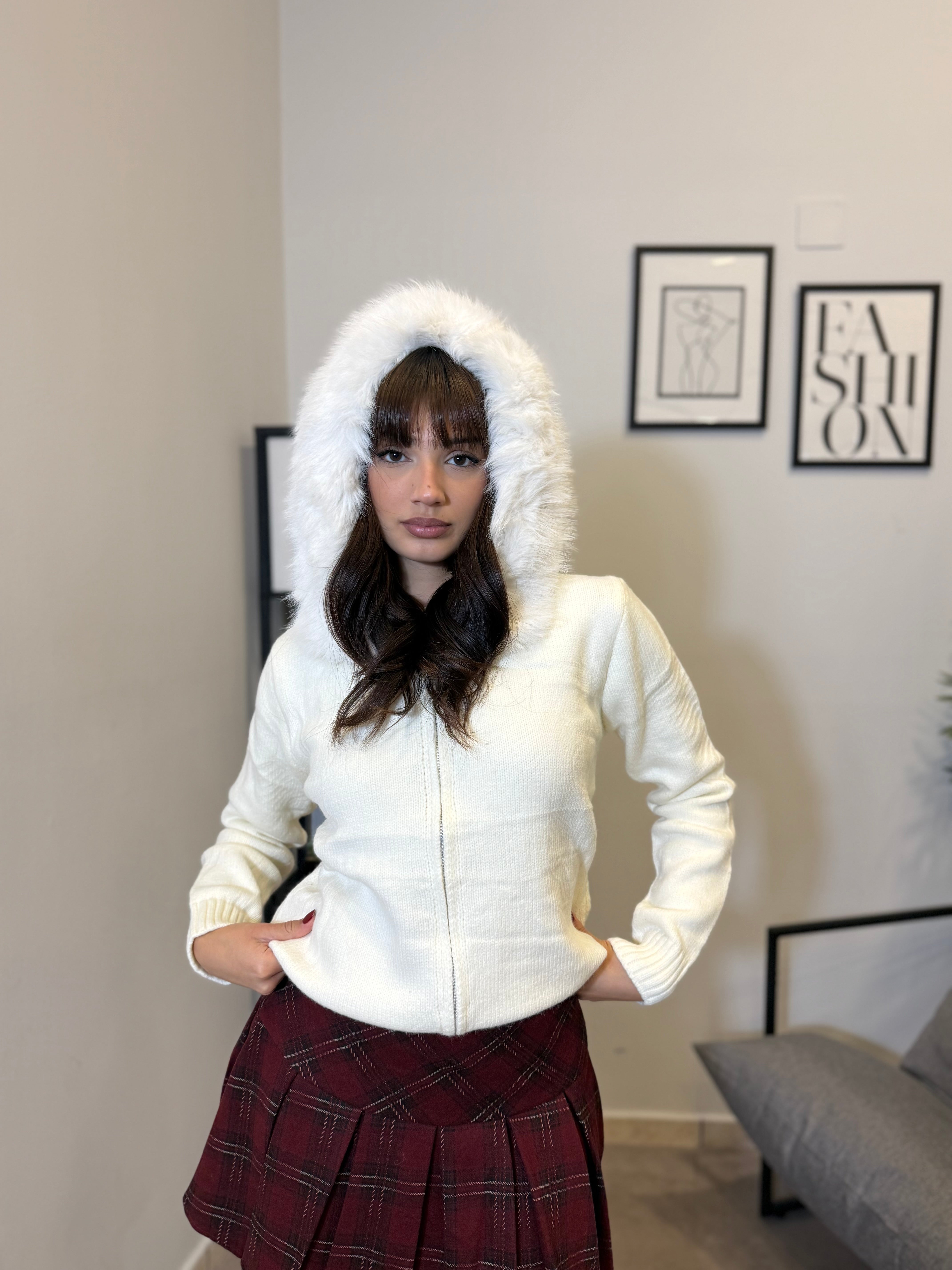 Felpa con zip frontale e cappuccio con pelliccia removibile. Calda e ottima vestibilità.