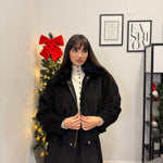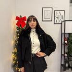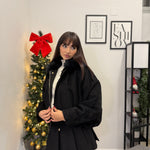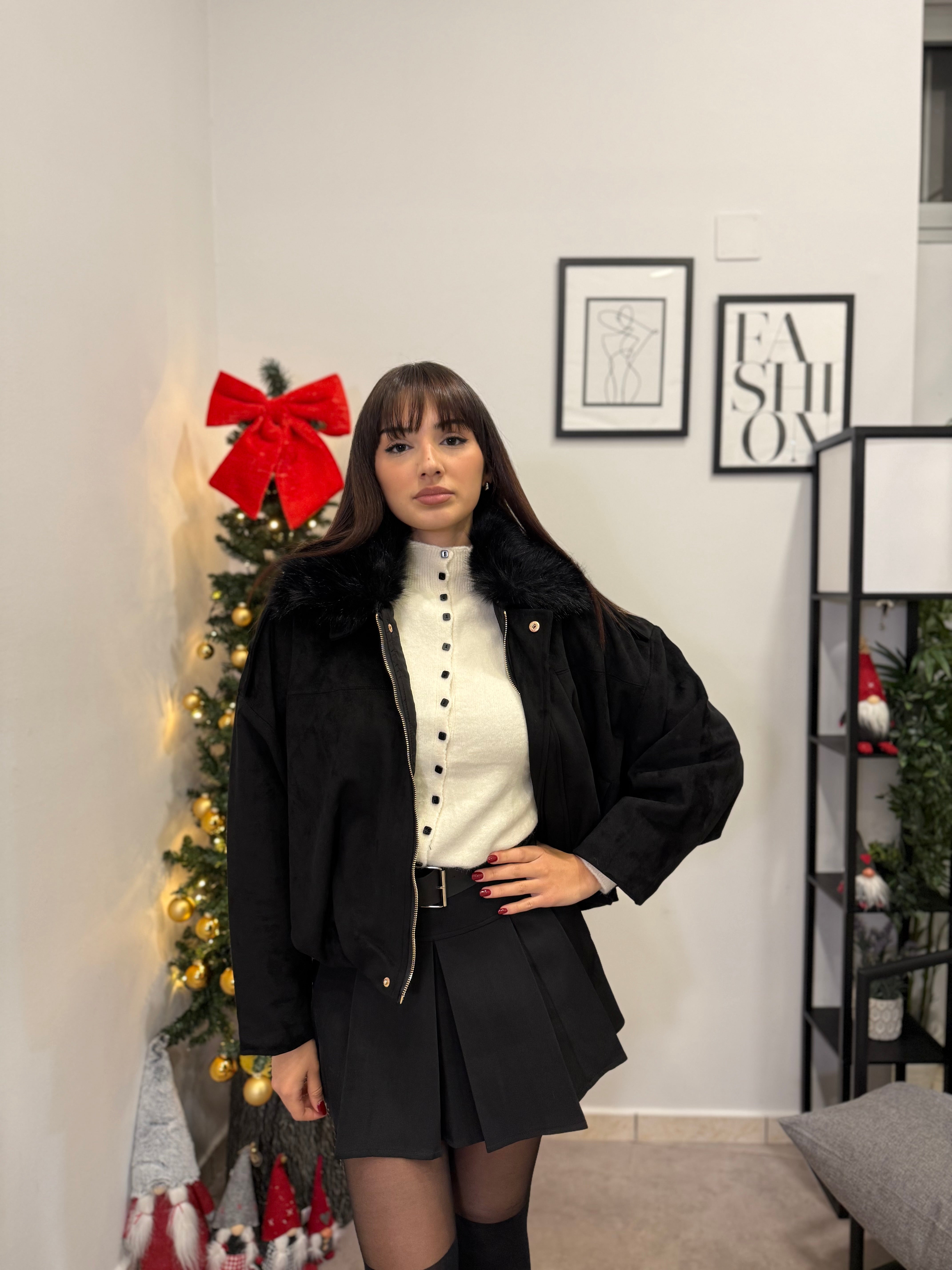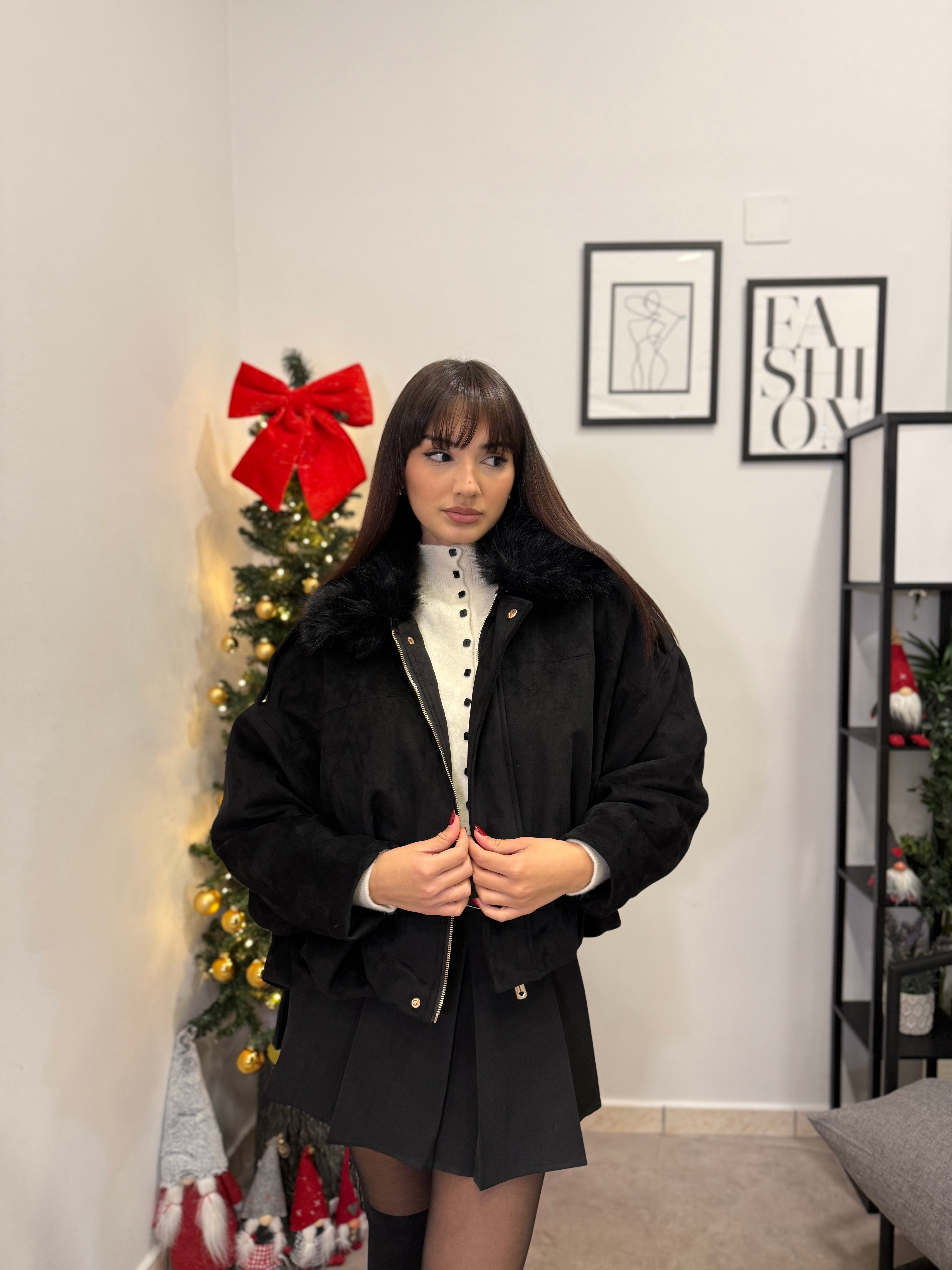 Giubbotto corto foderato con pelliccia sul collo removibile. Veste bene dalla S alla L