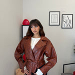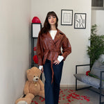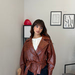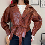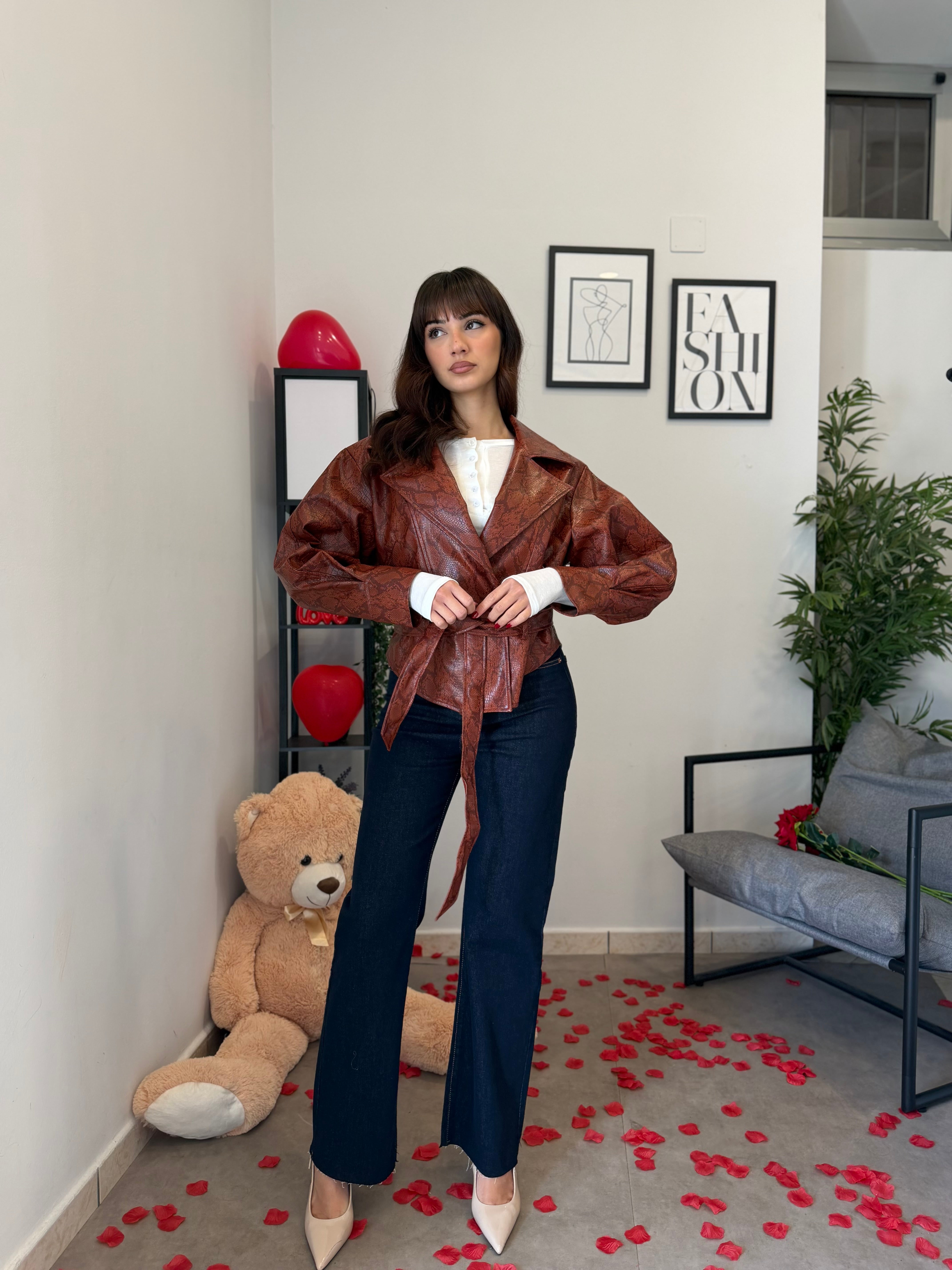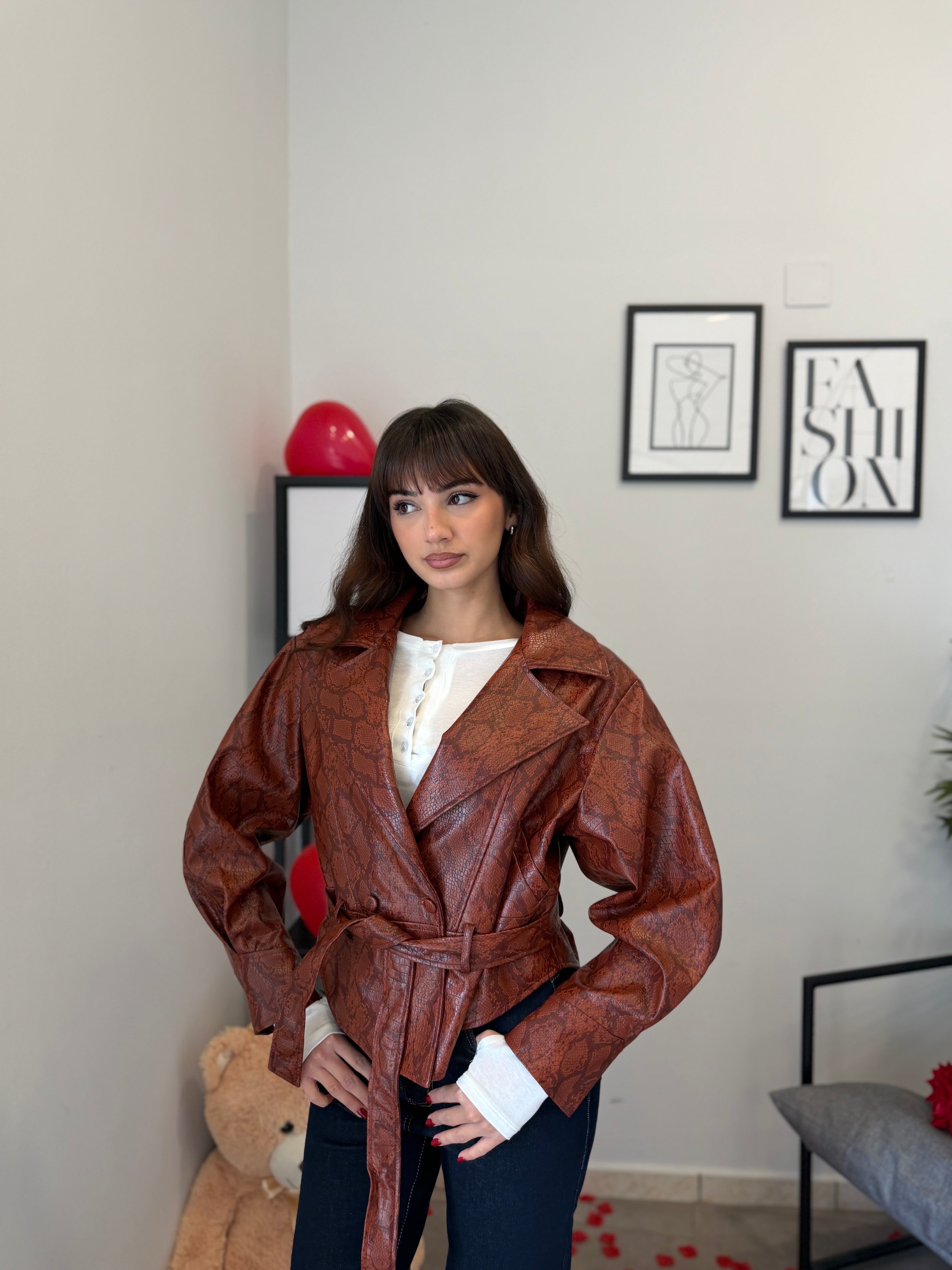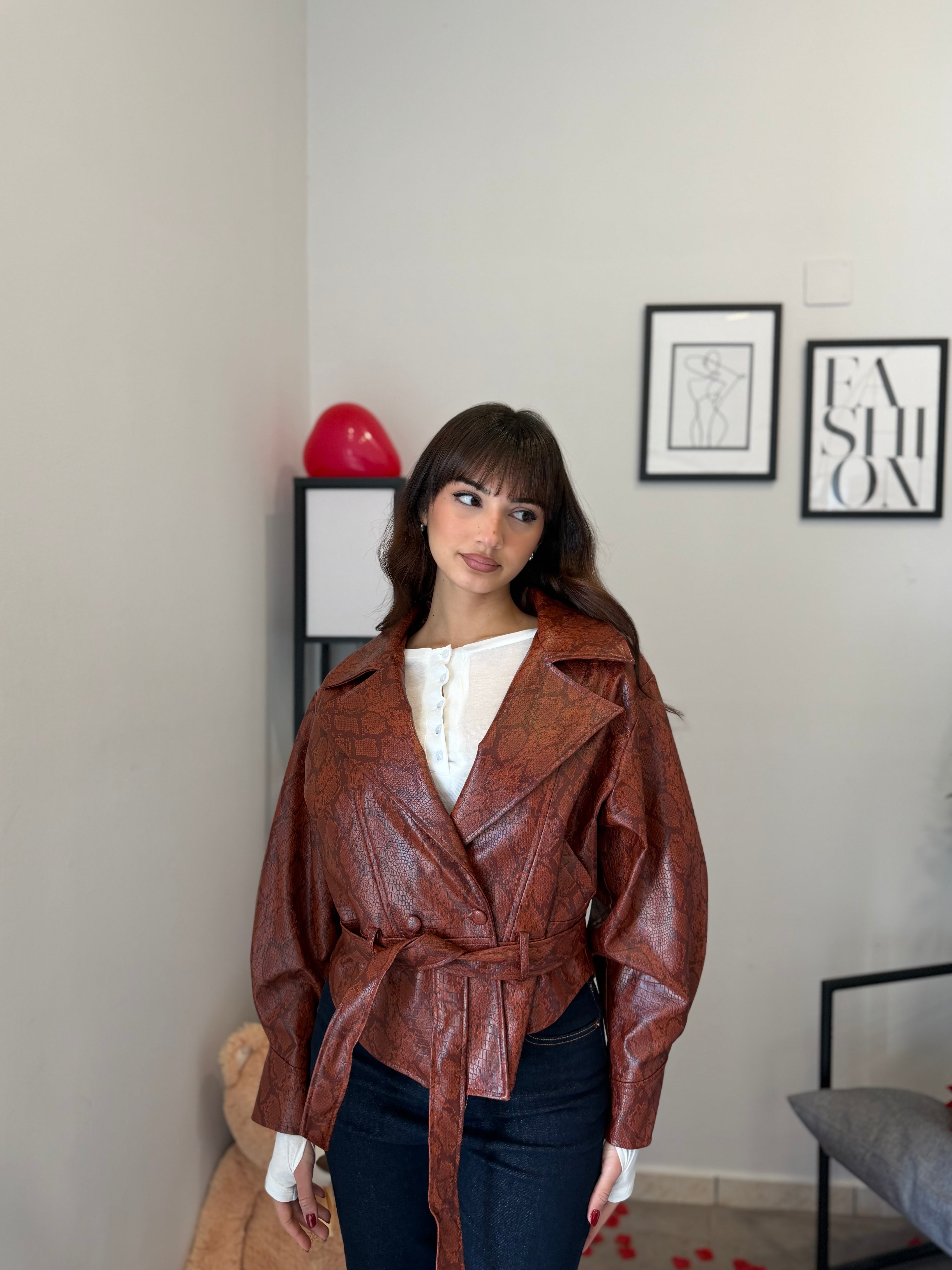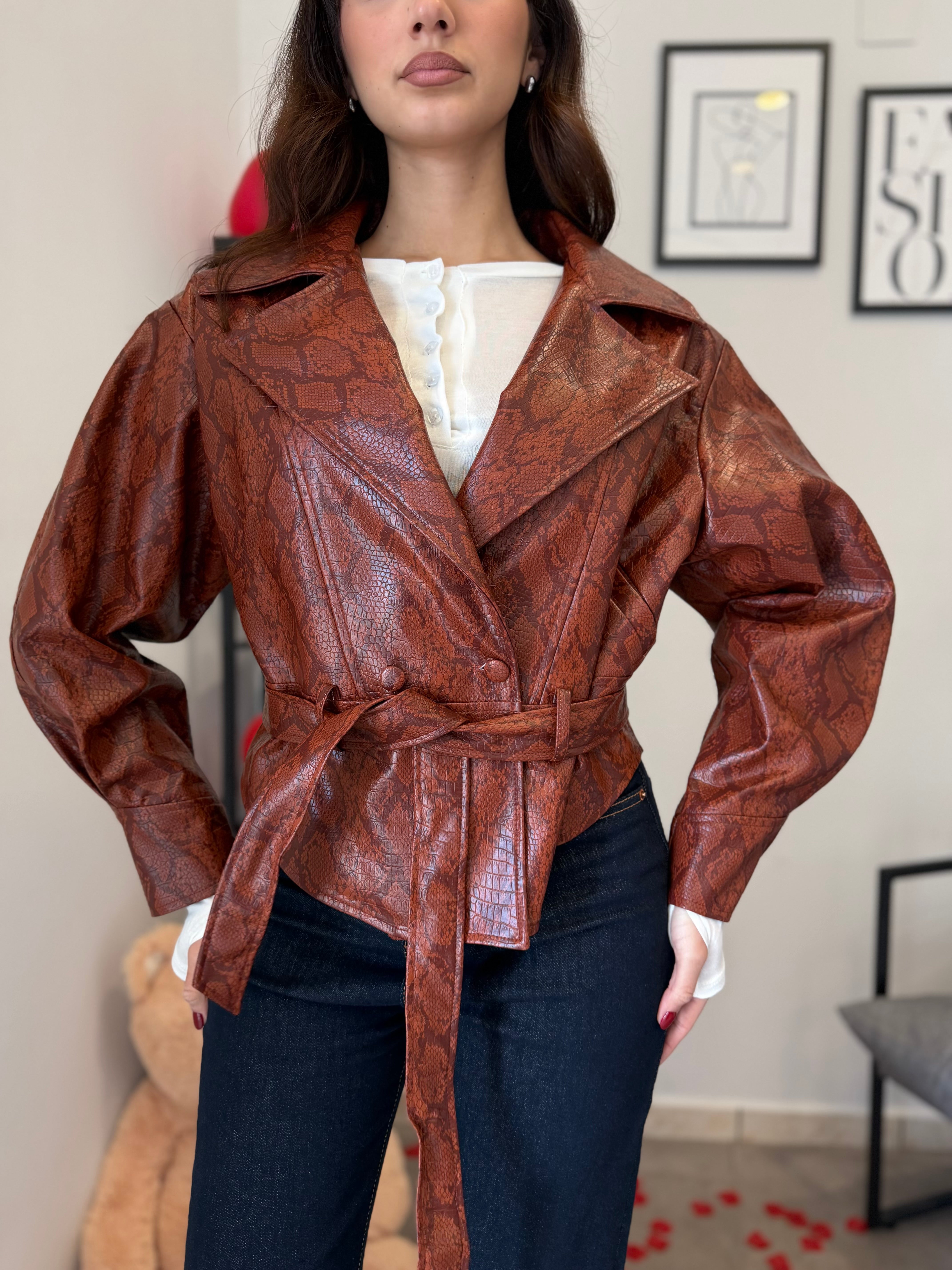 Giubbotto in ecopelle con stampa pitonata. Cintura in vita, veste bene dalla XS alla L
