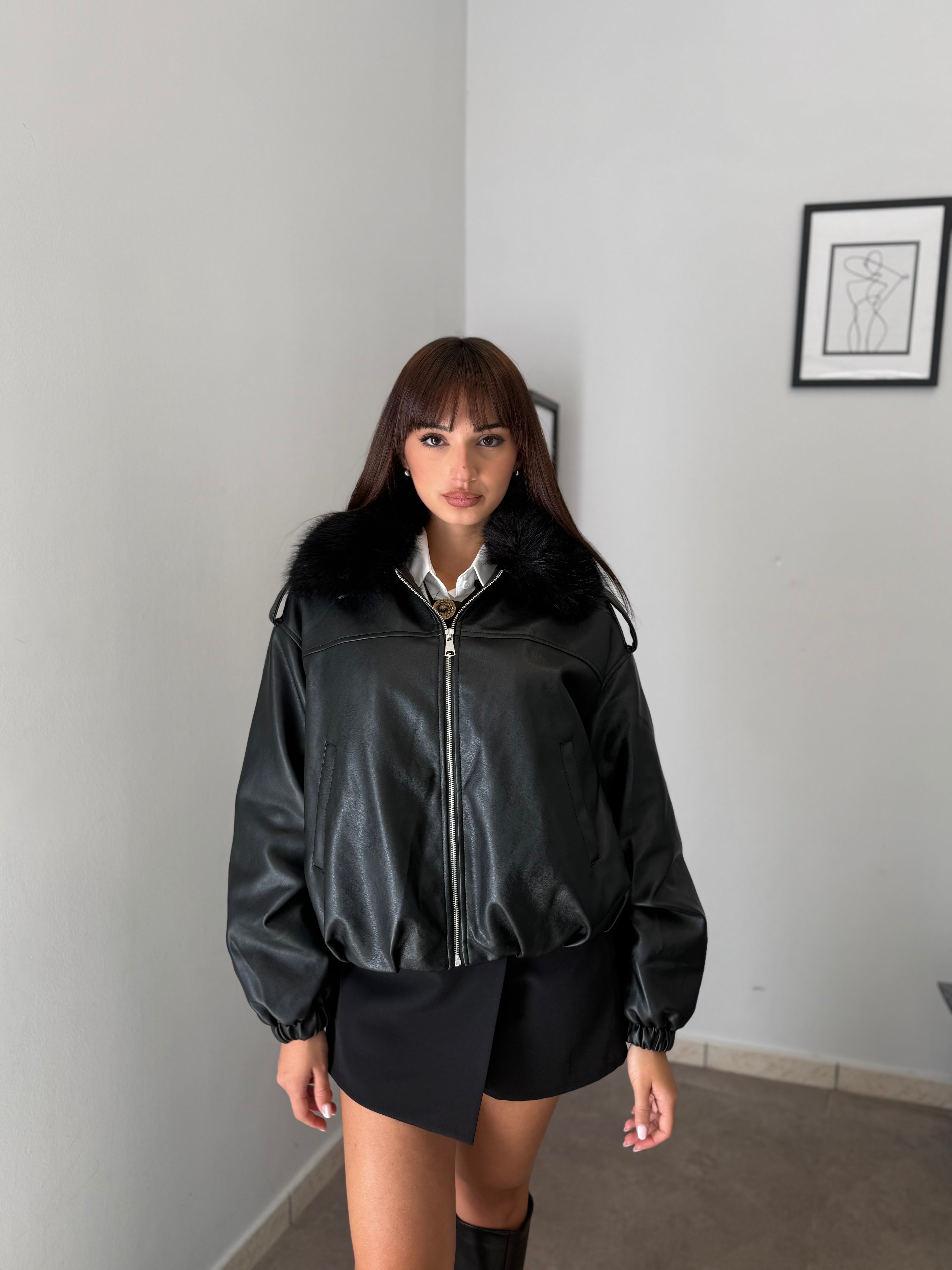 Giubbotto Ecopelle con Pelliccia - black 202305