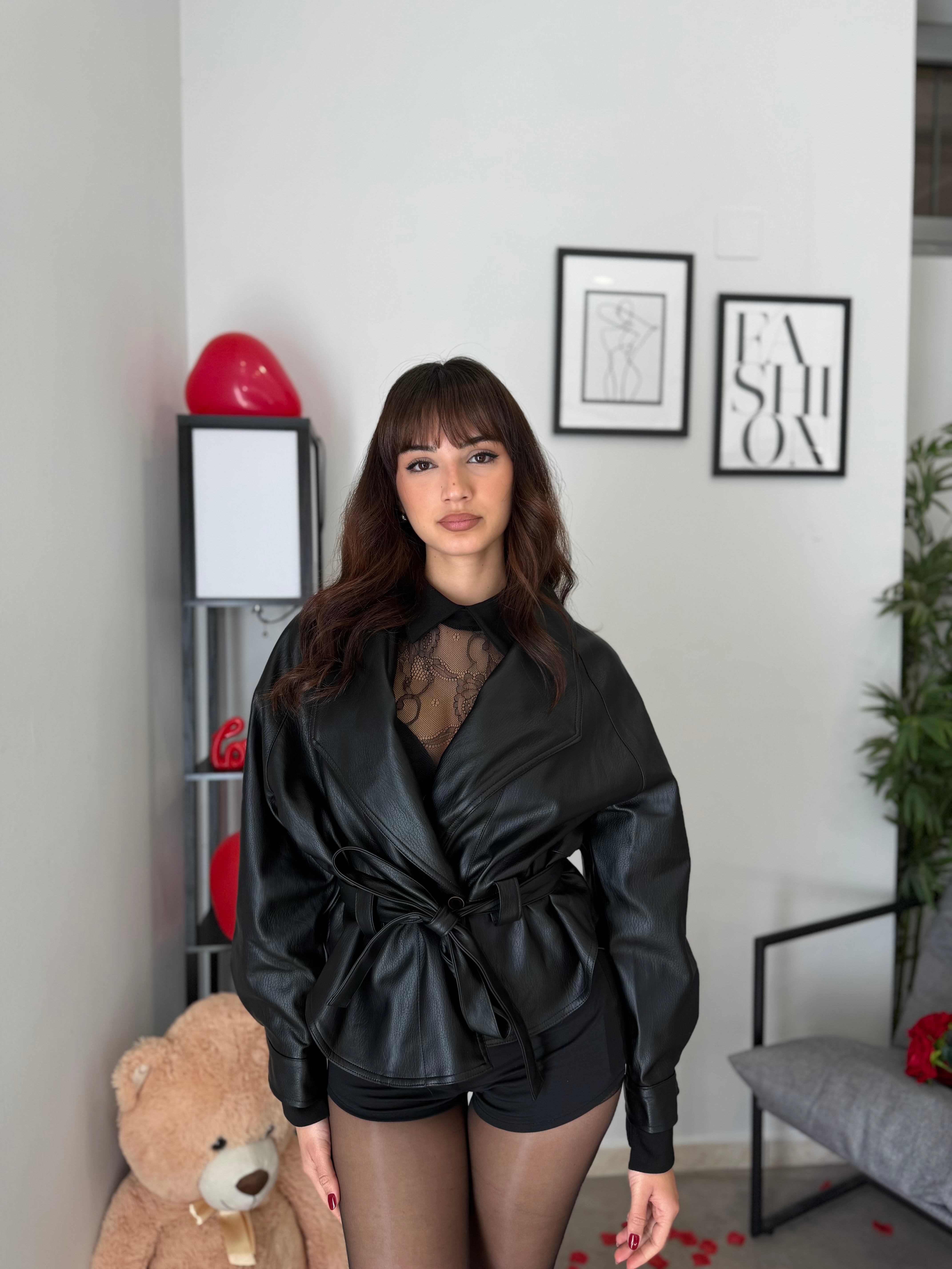 Giubbotto in ecopelle con cintura in vita. Ben foderato, prodotto premium. Veste bene dalla XS alla L