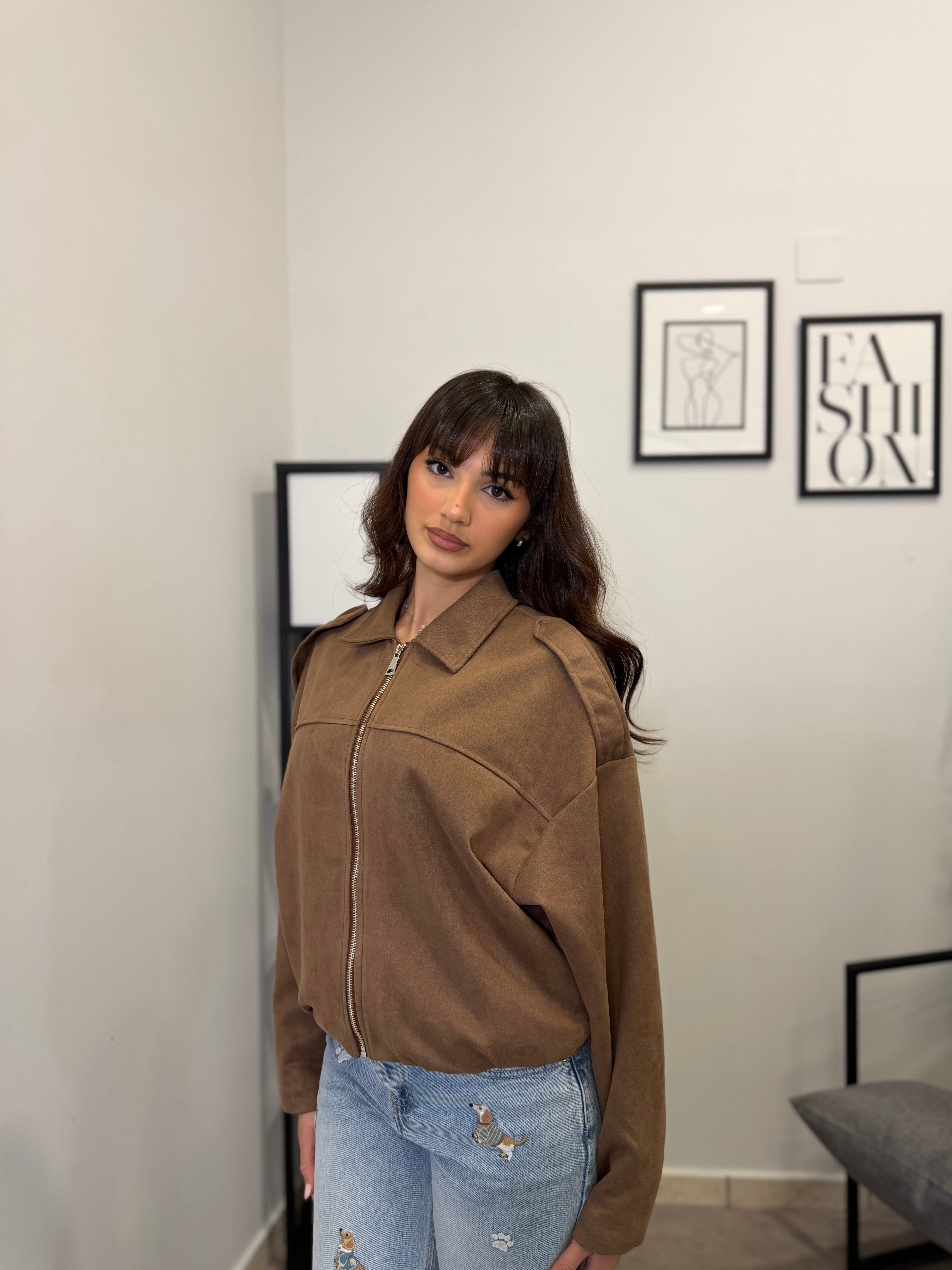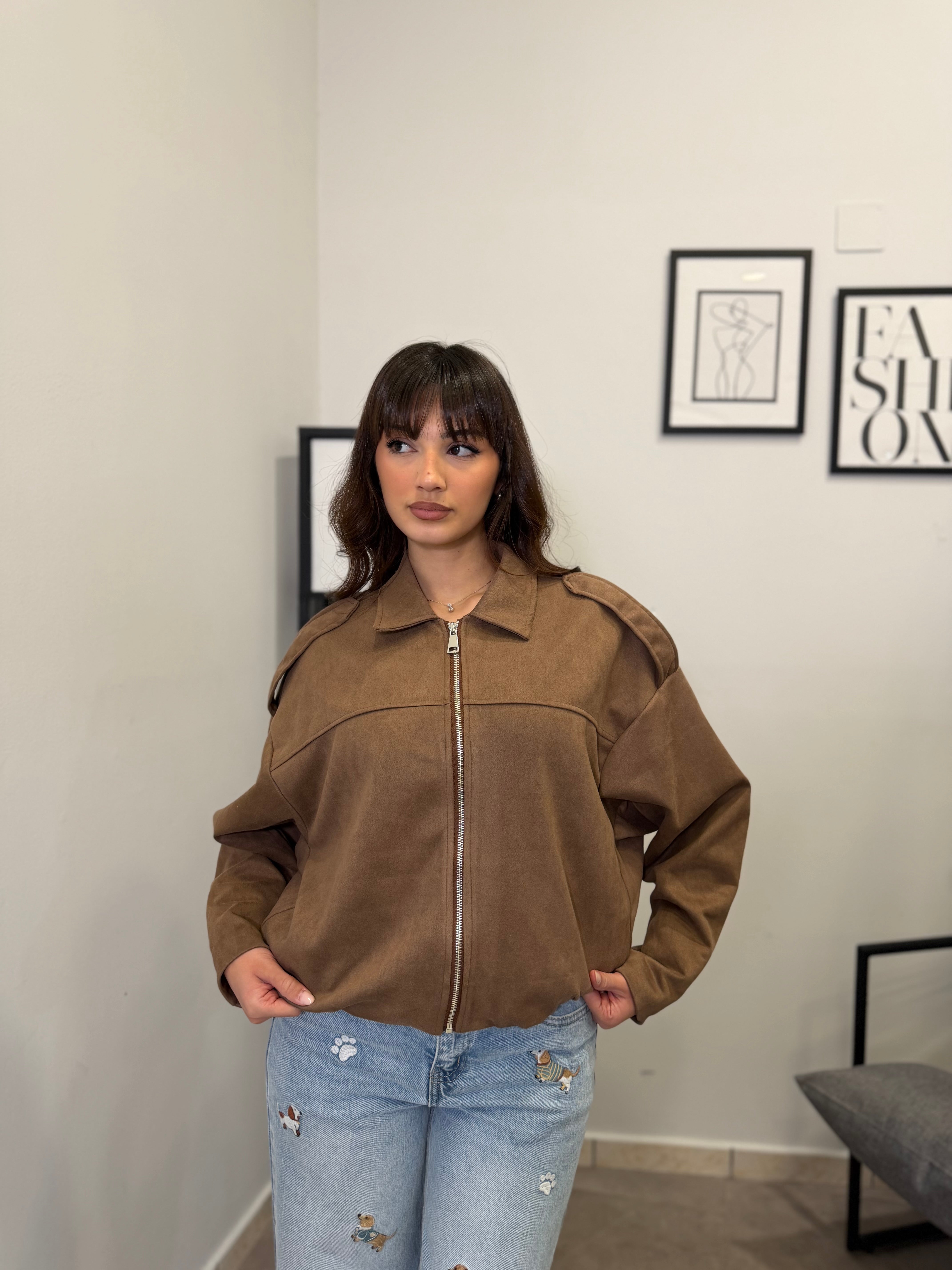 Giubbotto oversize in camoscio. Veste dalla S alla XL