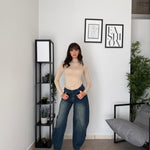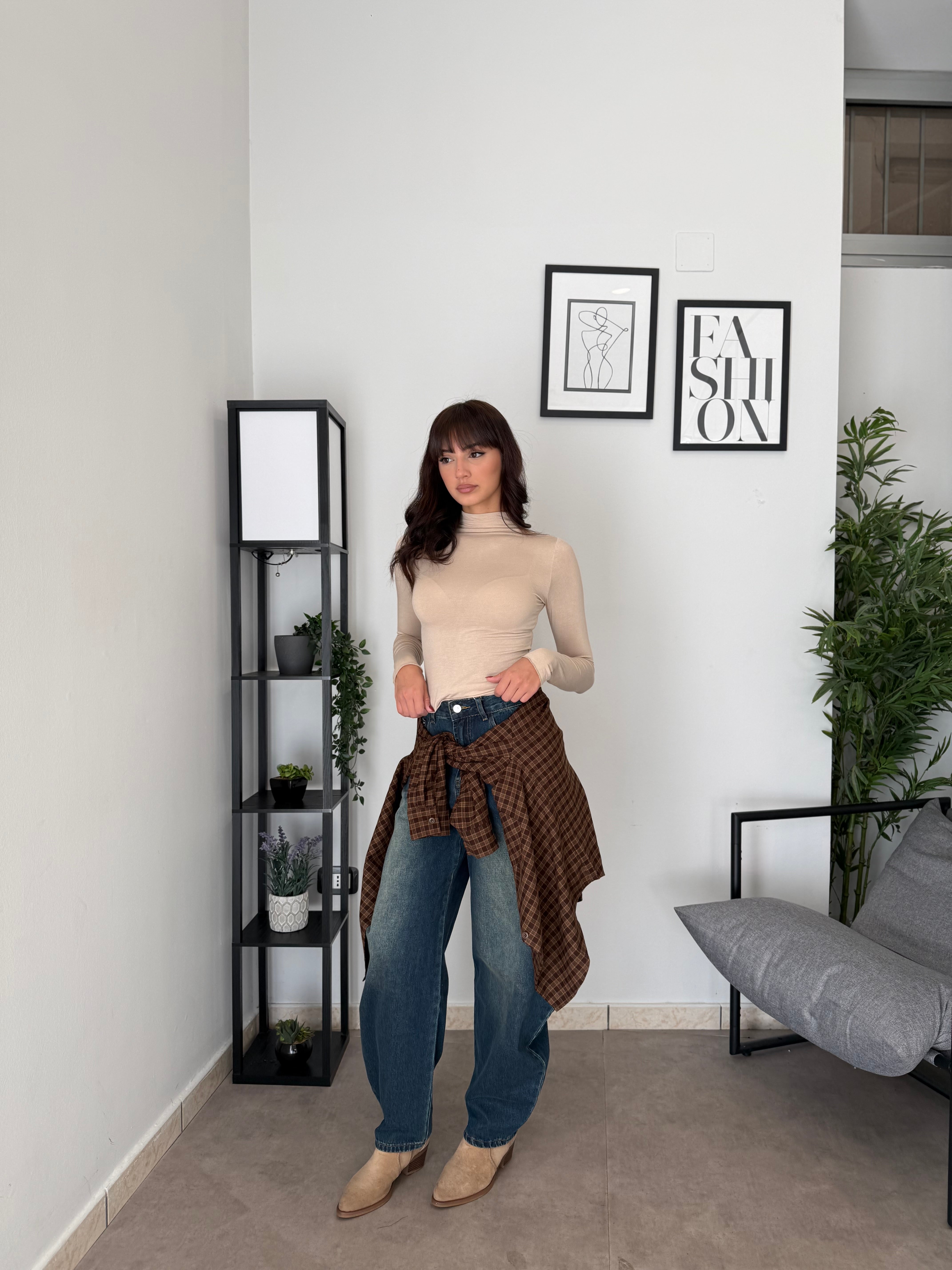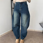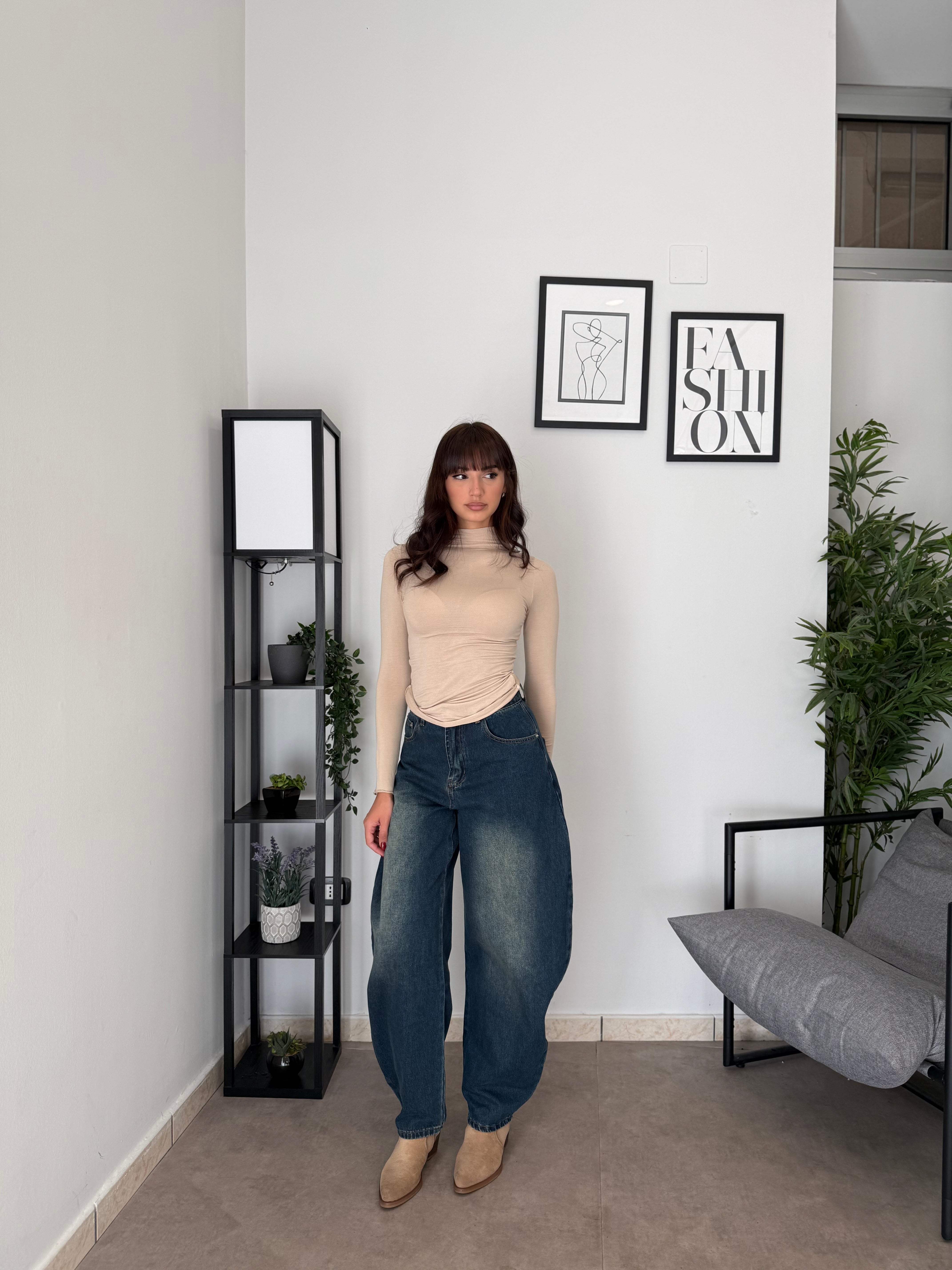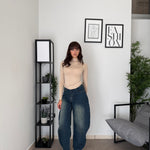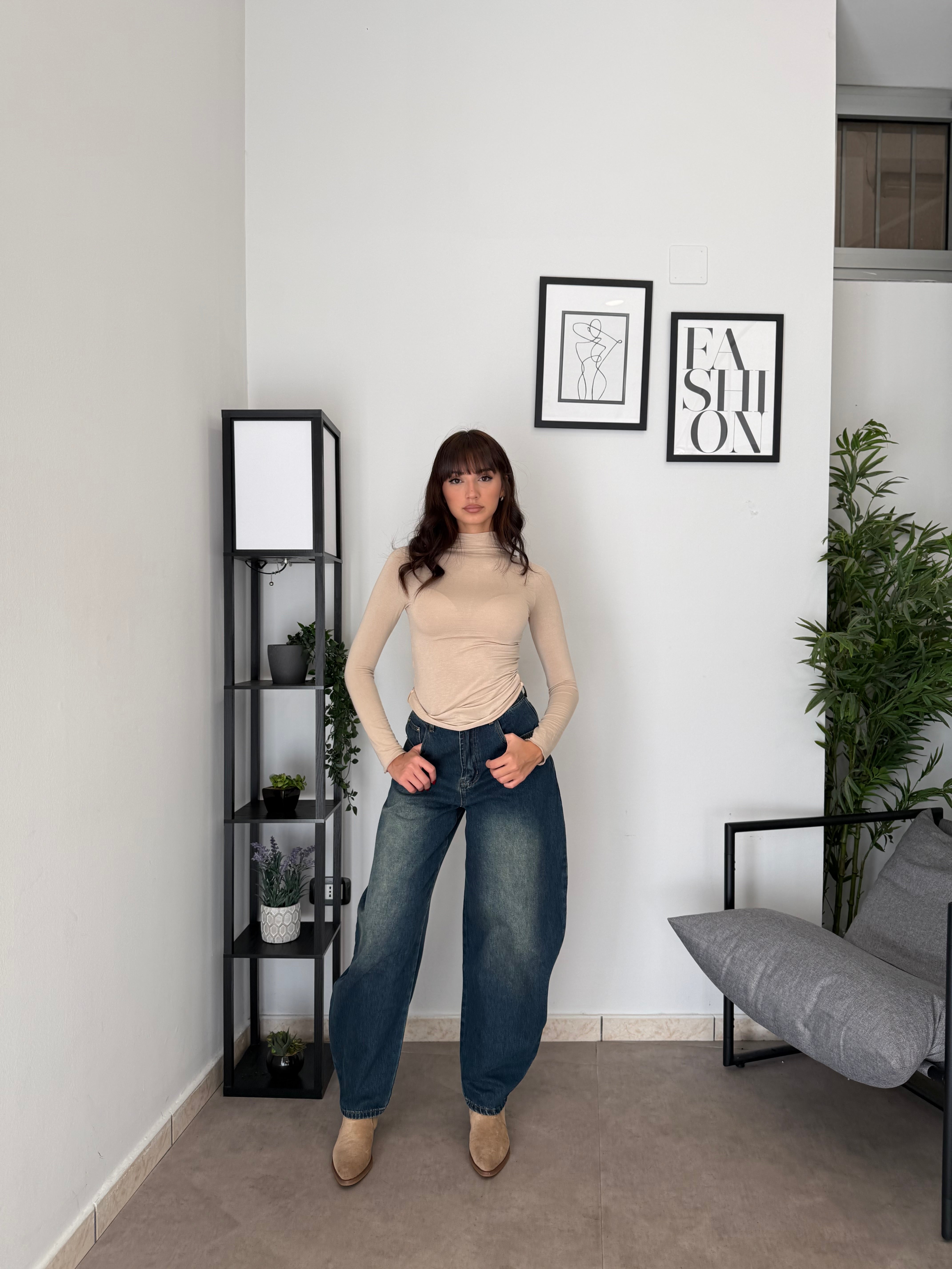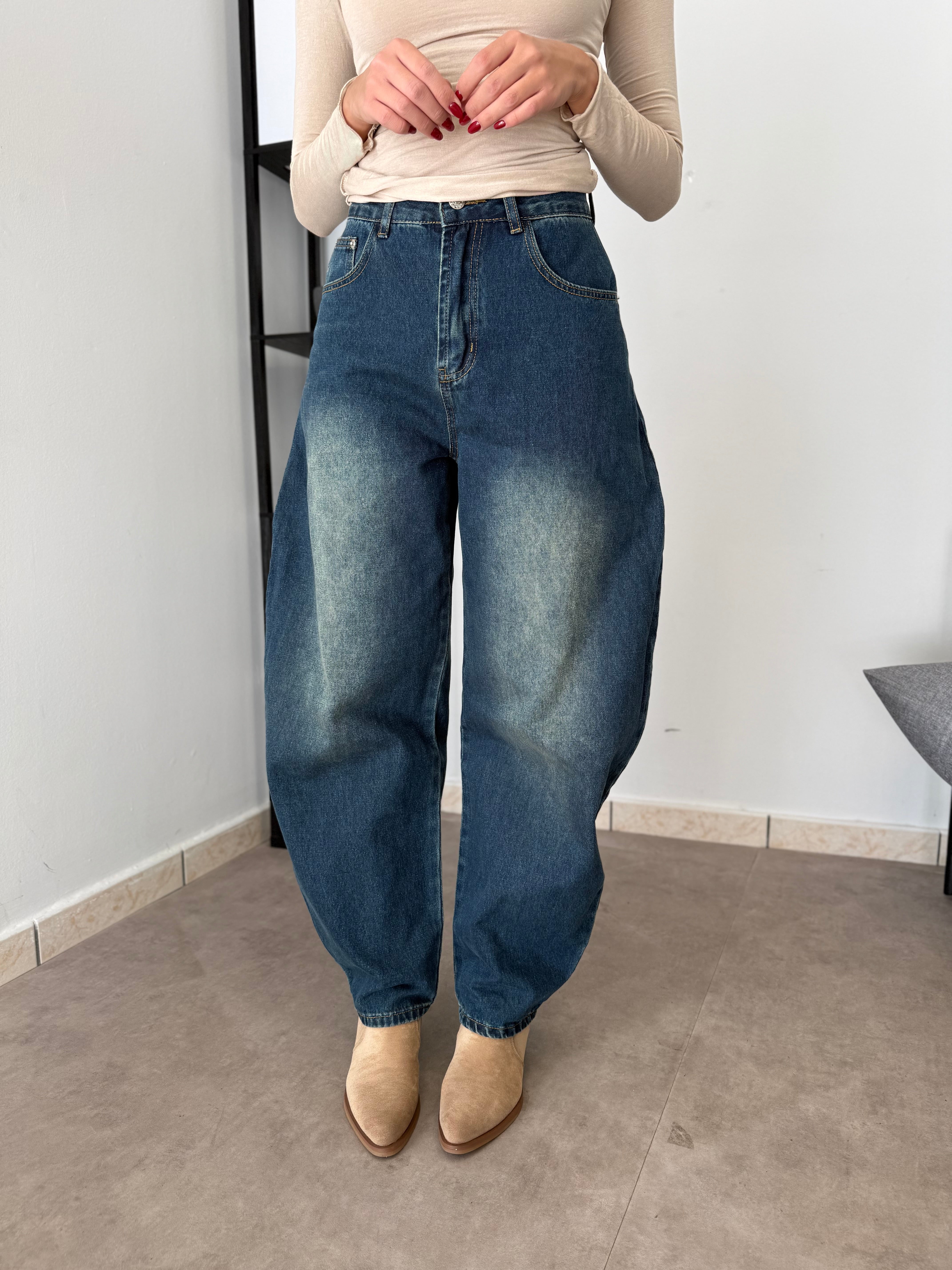 Non disponibileJeans vita alta con gamba larga, effetto ballon. Lavaggio vintage, tessuto poco elastico. Marta indossa tg S