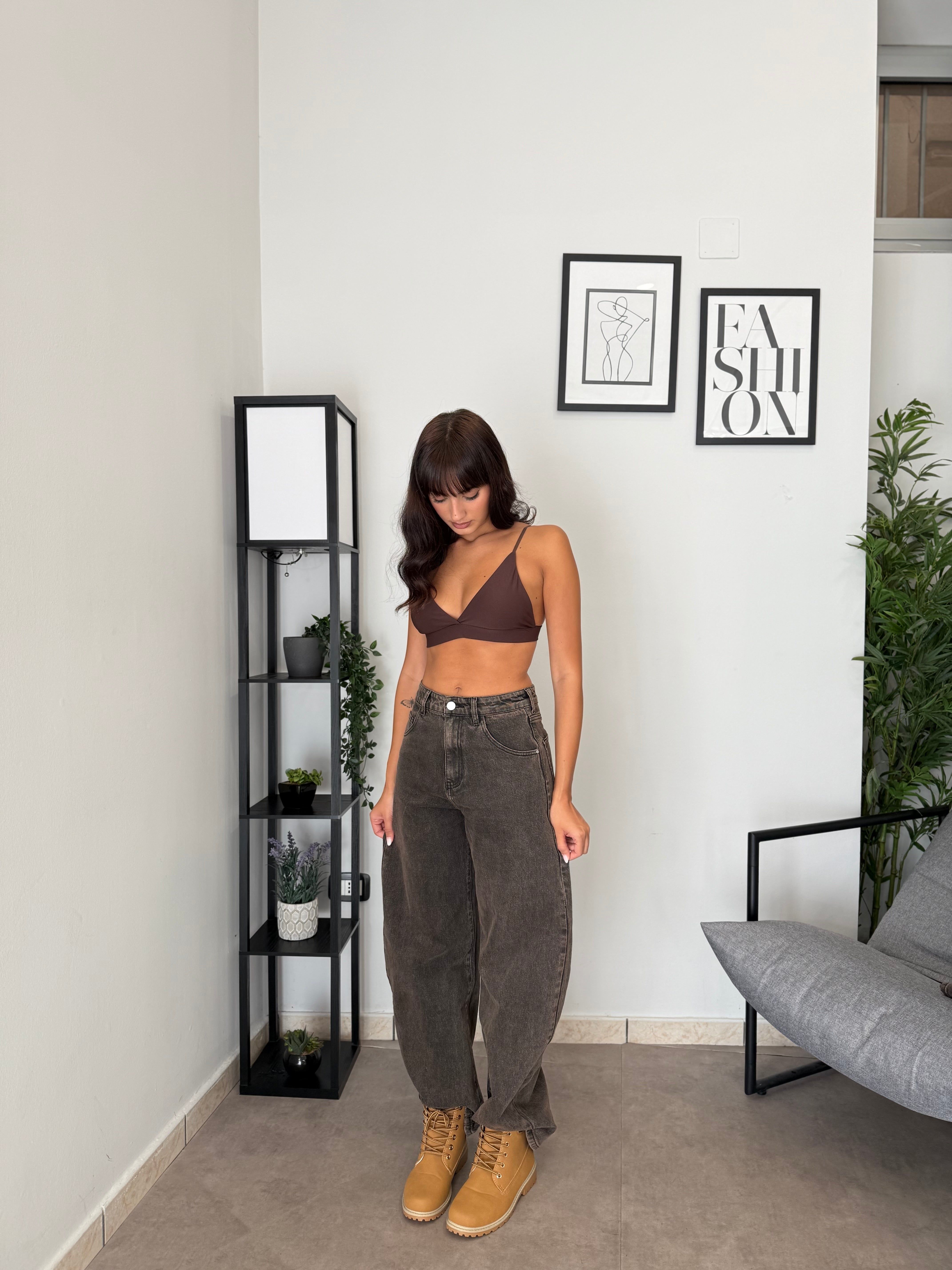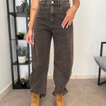 Jeans ballon fit, lavaggio Marrone! Marta indossa tg S, vita alta. Tela fissa, non elastico