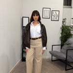 Jeans gamba dritta con cintura inclusa. Tessuto elasticizzato, Marta indossa tg S/M