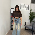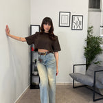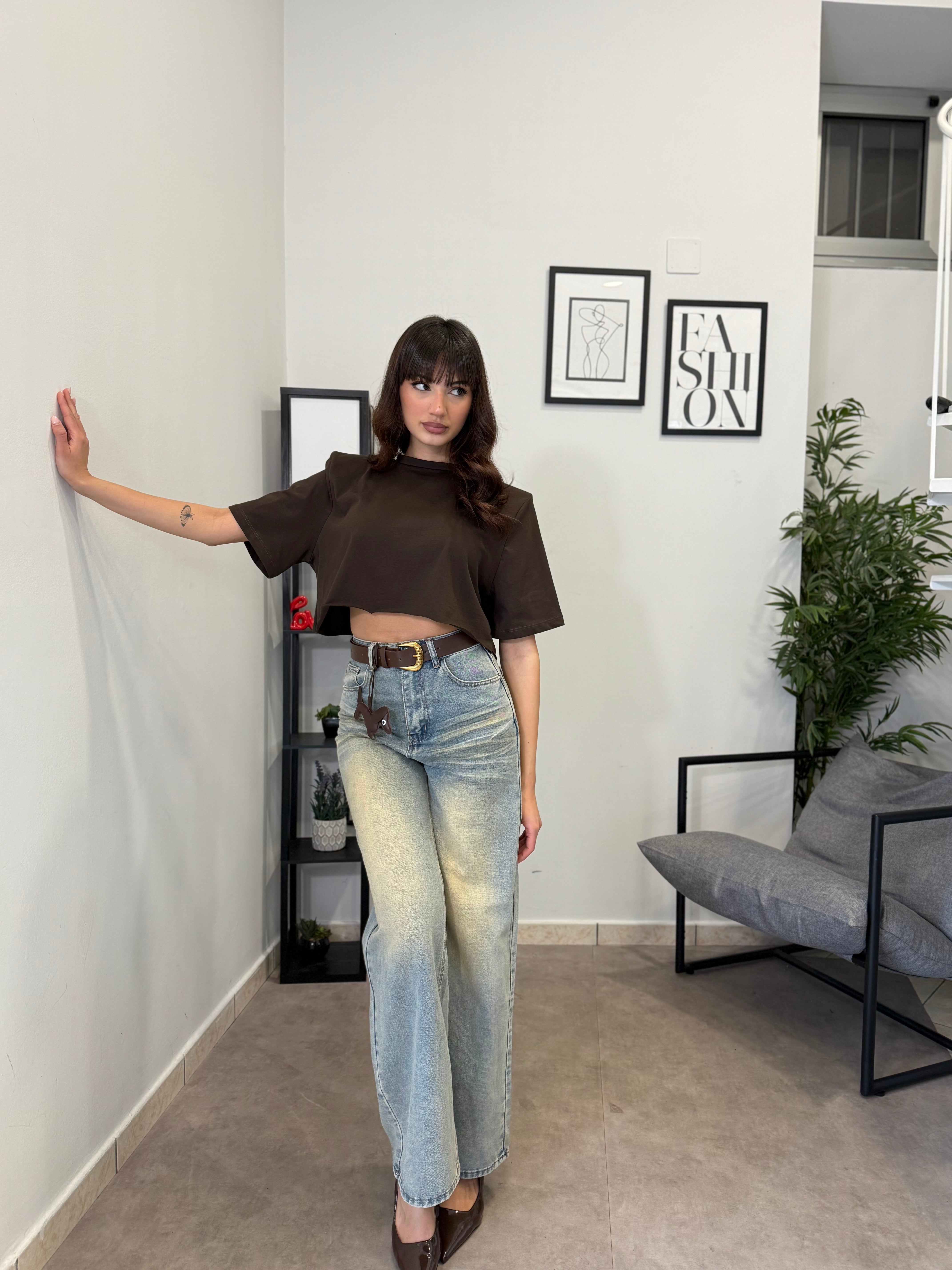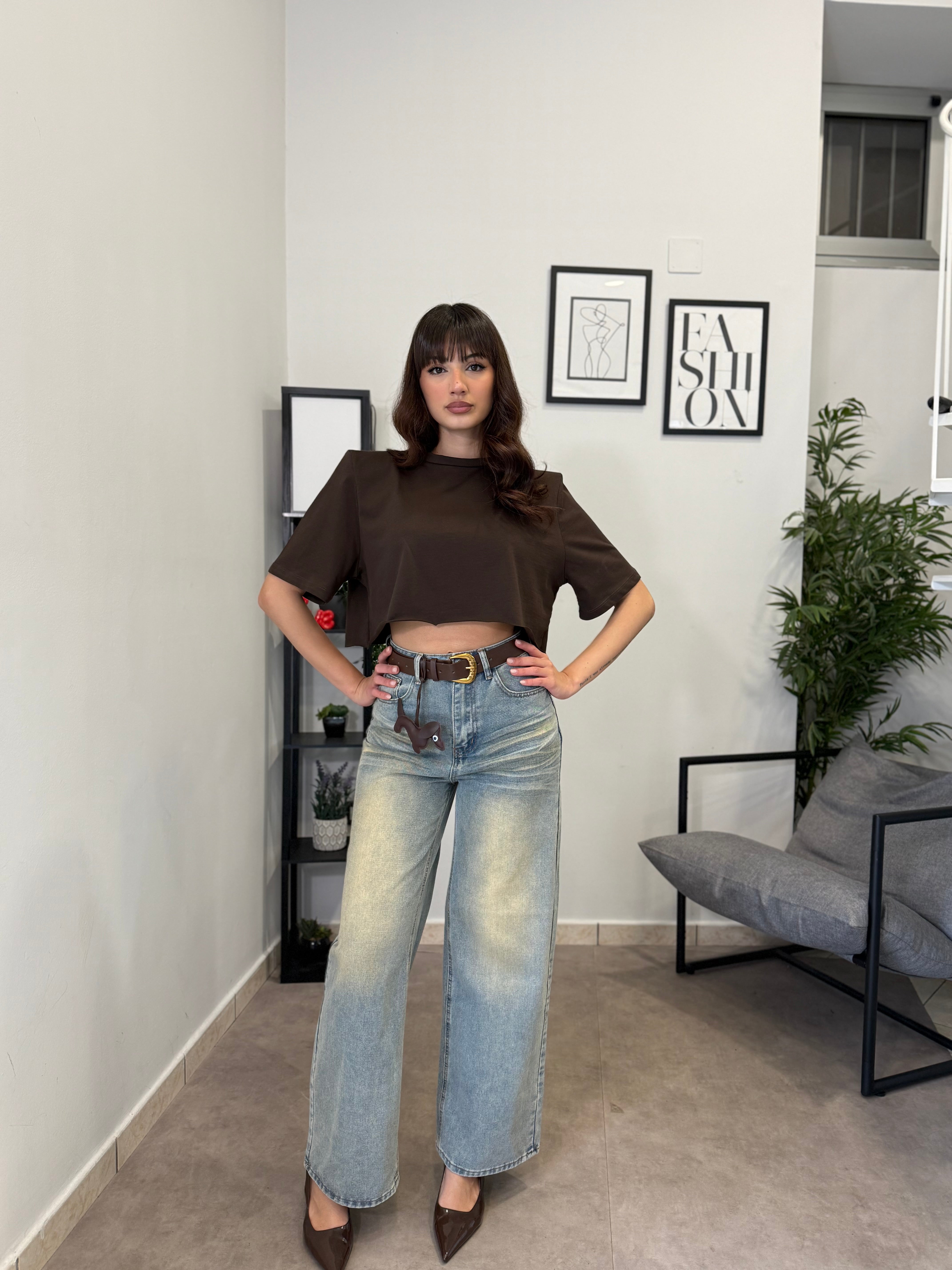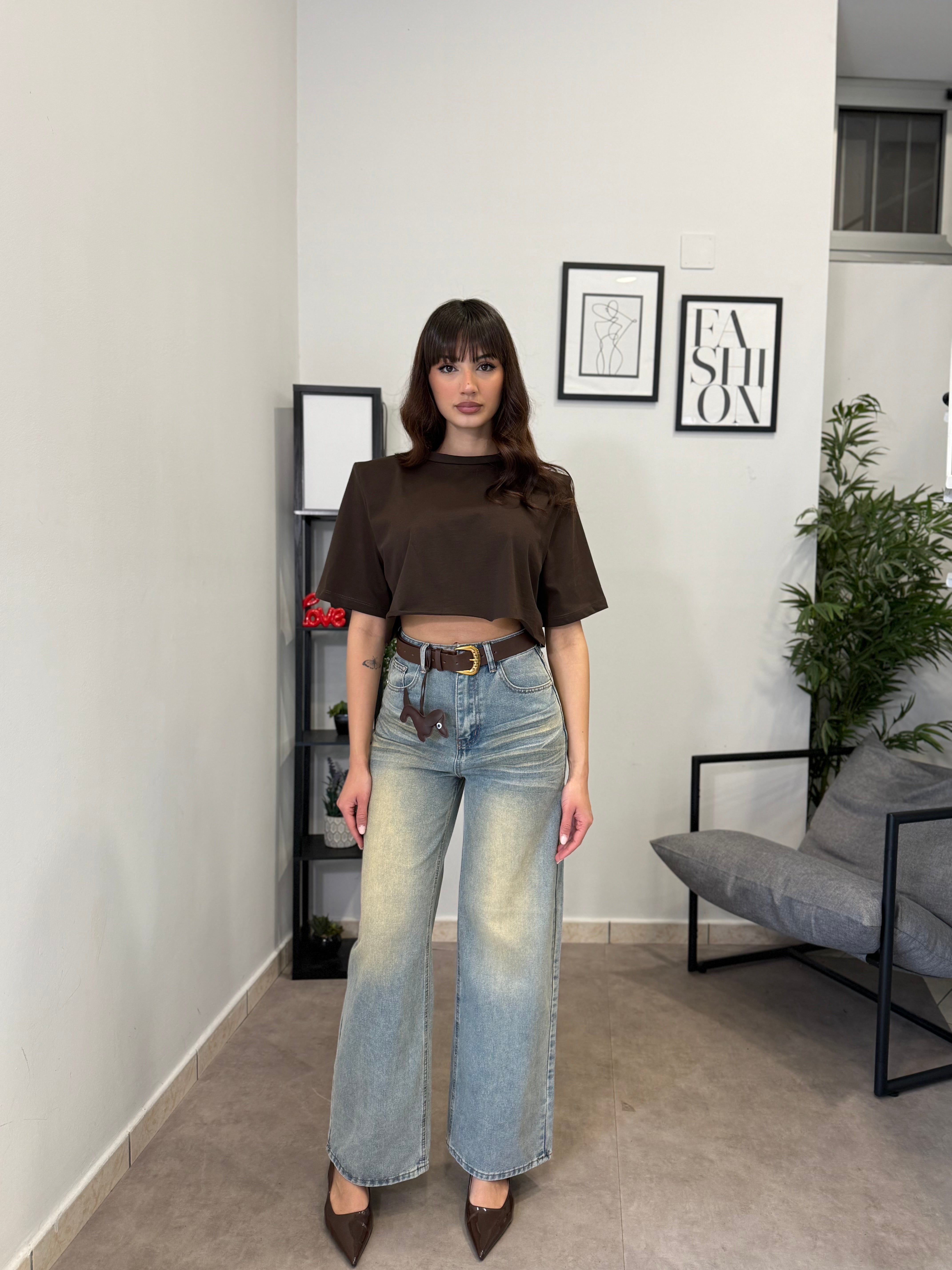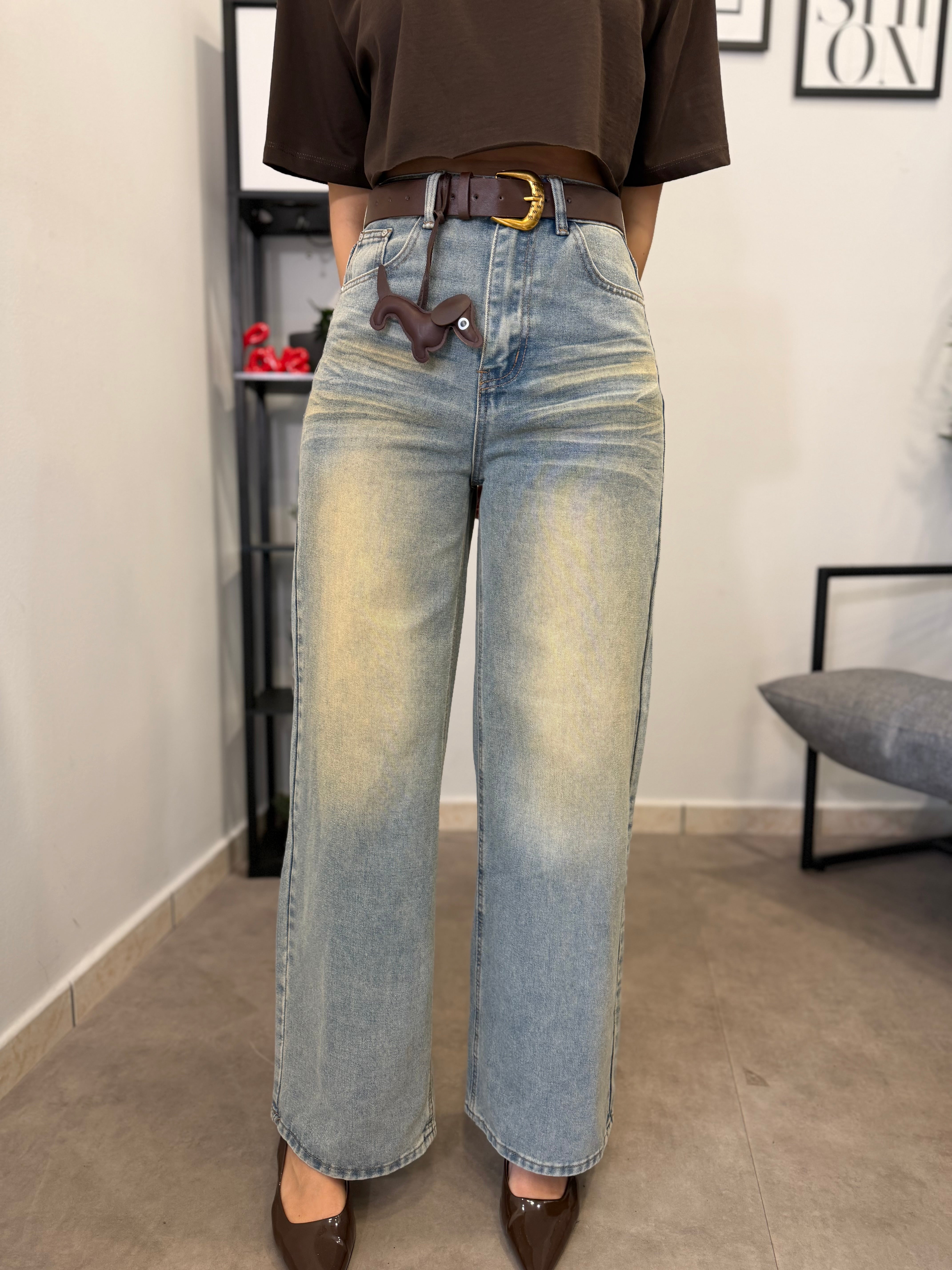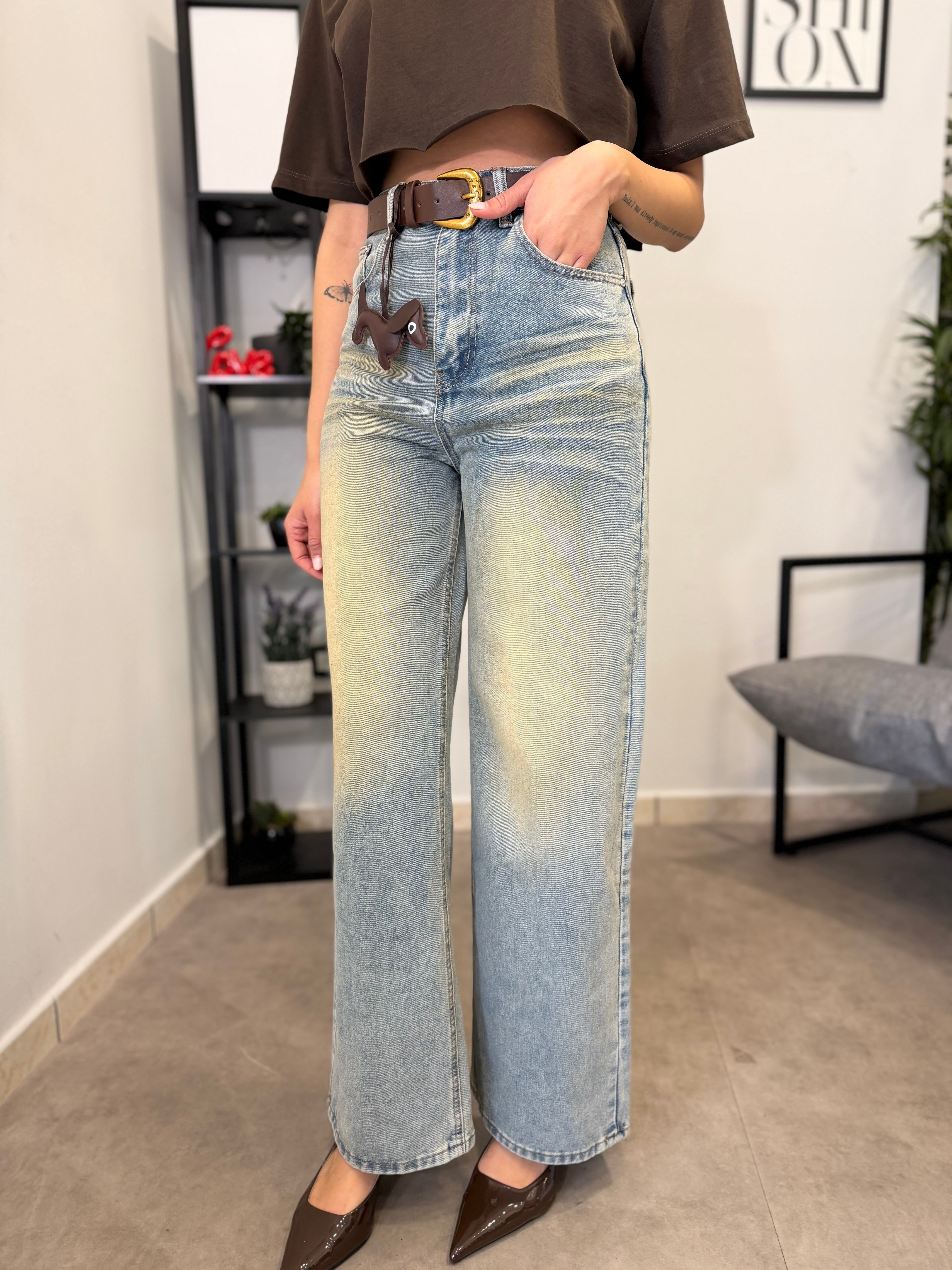 Jeans vita alta, modello palazzo. La cintura è inclusa. Tessuto elasticizzato