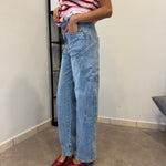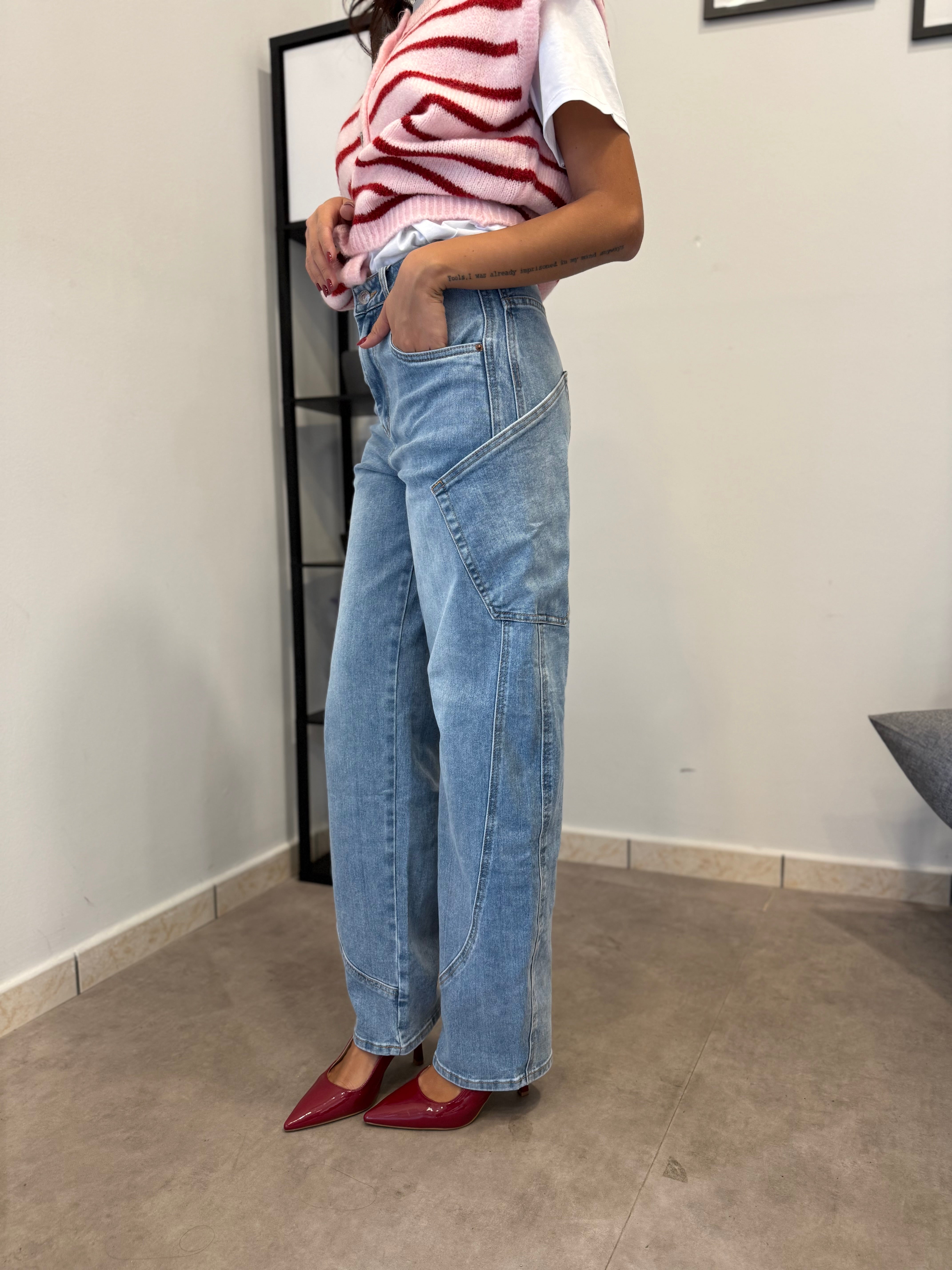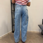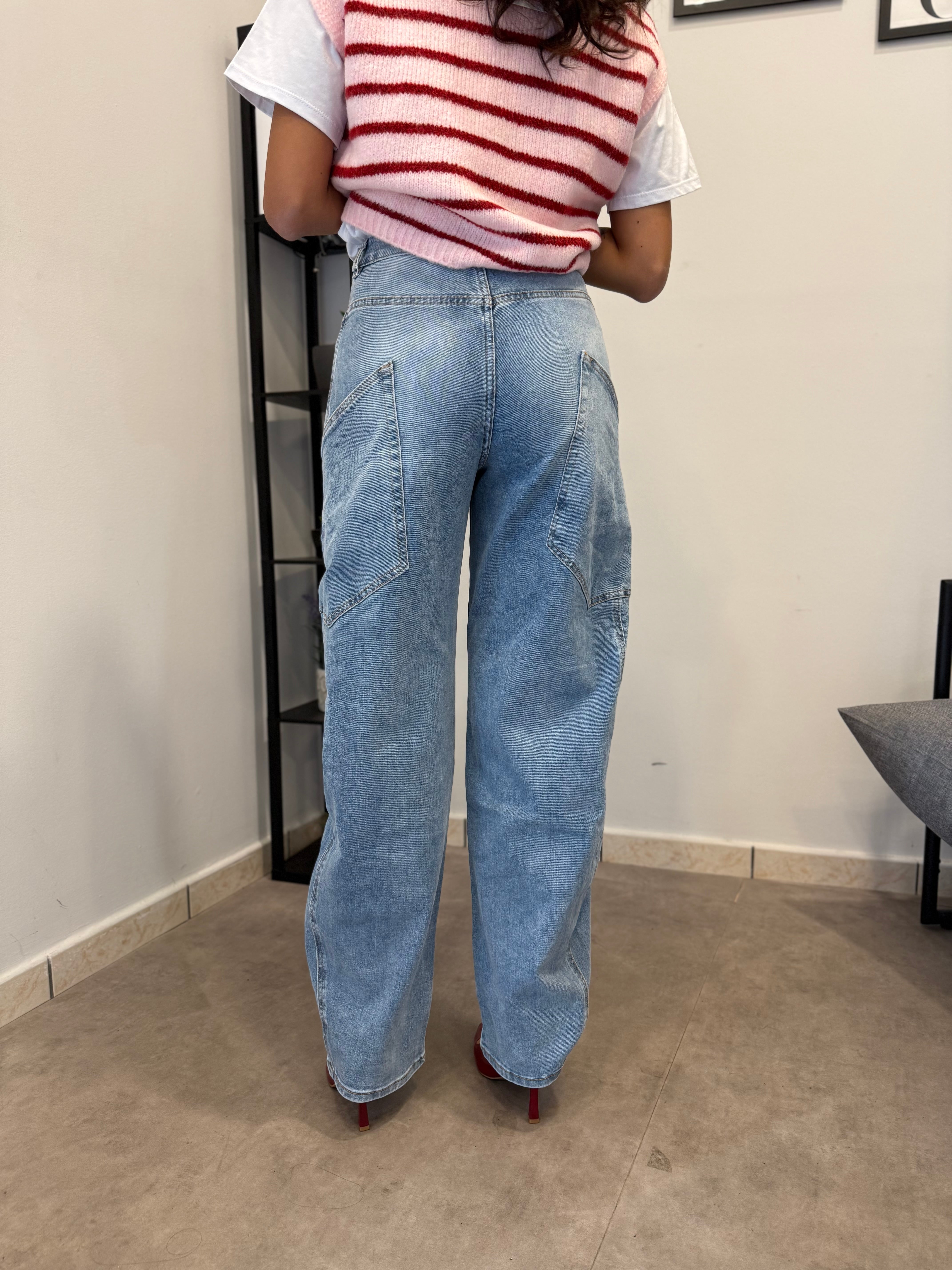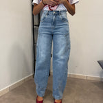 Non disponibileJeans Chiaro con vita alta e gamba ampia. Tessuto leggermente elasticizzato. Marta indossa tg XS/34eu