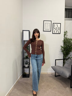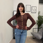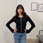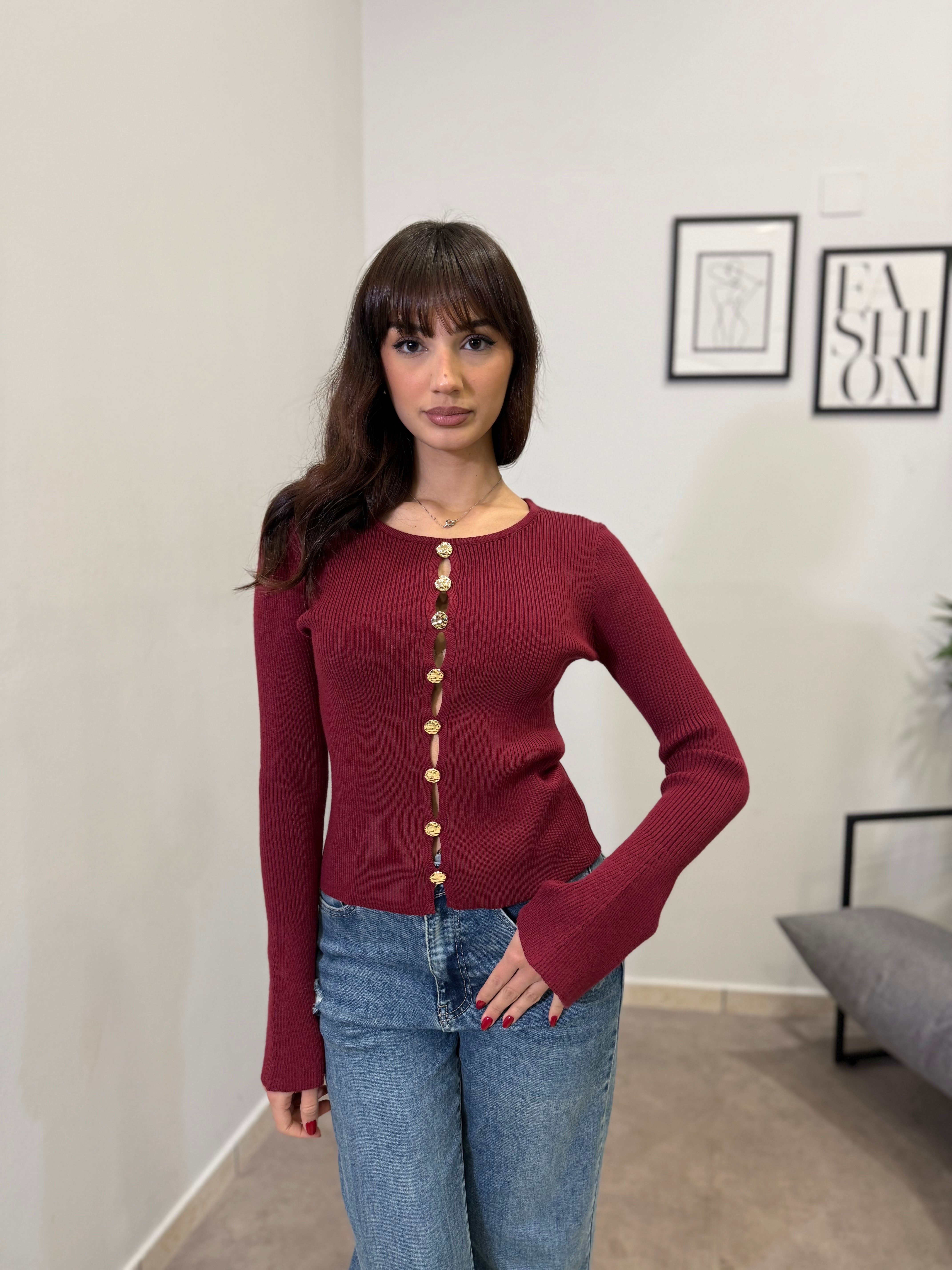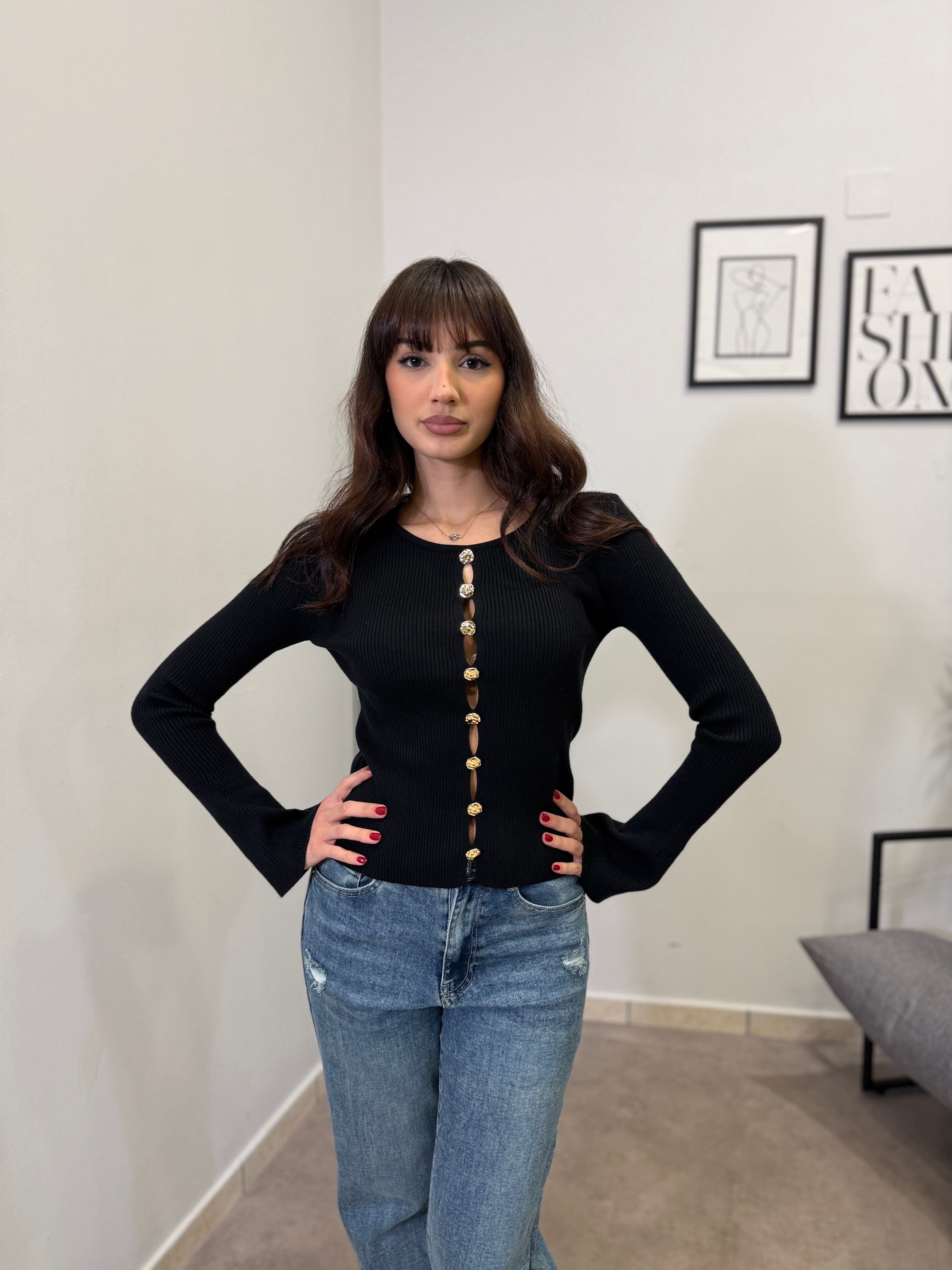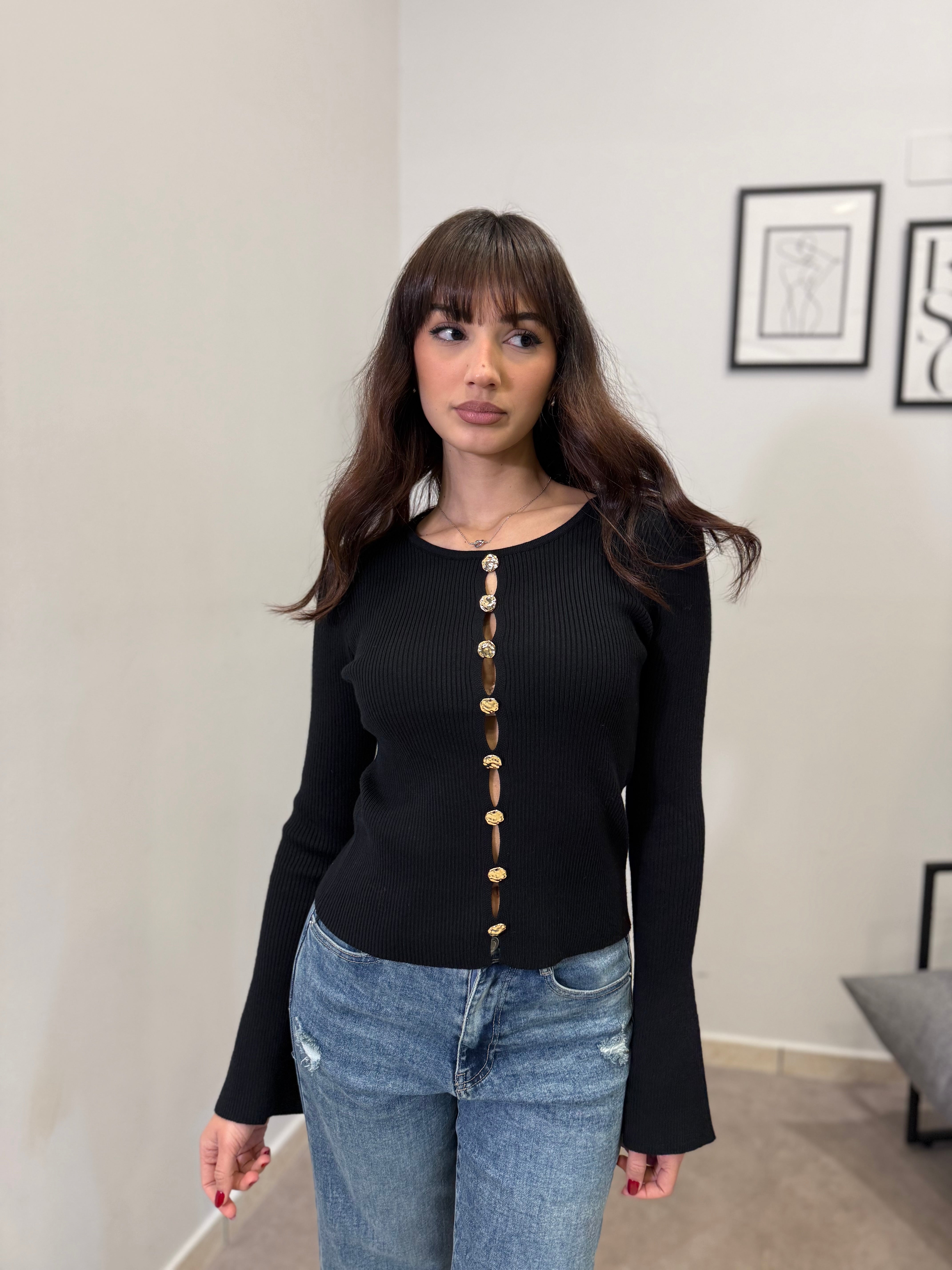 Maglia a costine con apertura frontale. Veste bene dalla XS alla M