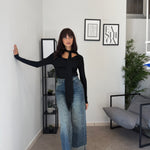 Maglia in misto cotone/viscola con scollatura morbida. Tessuto elastico
