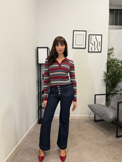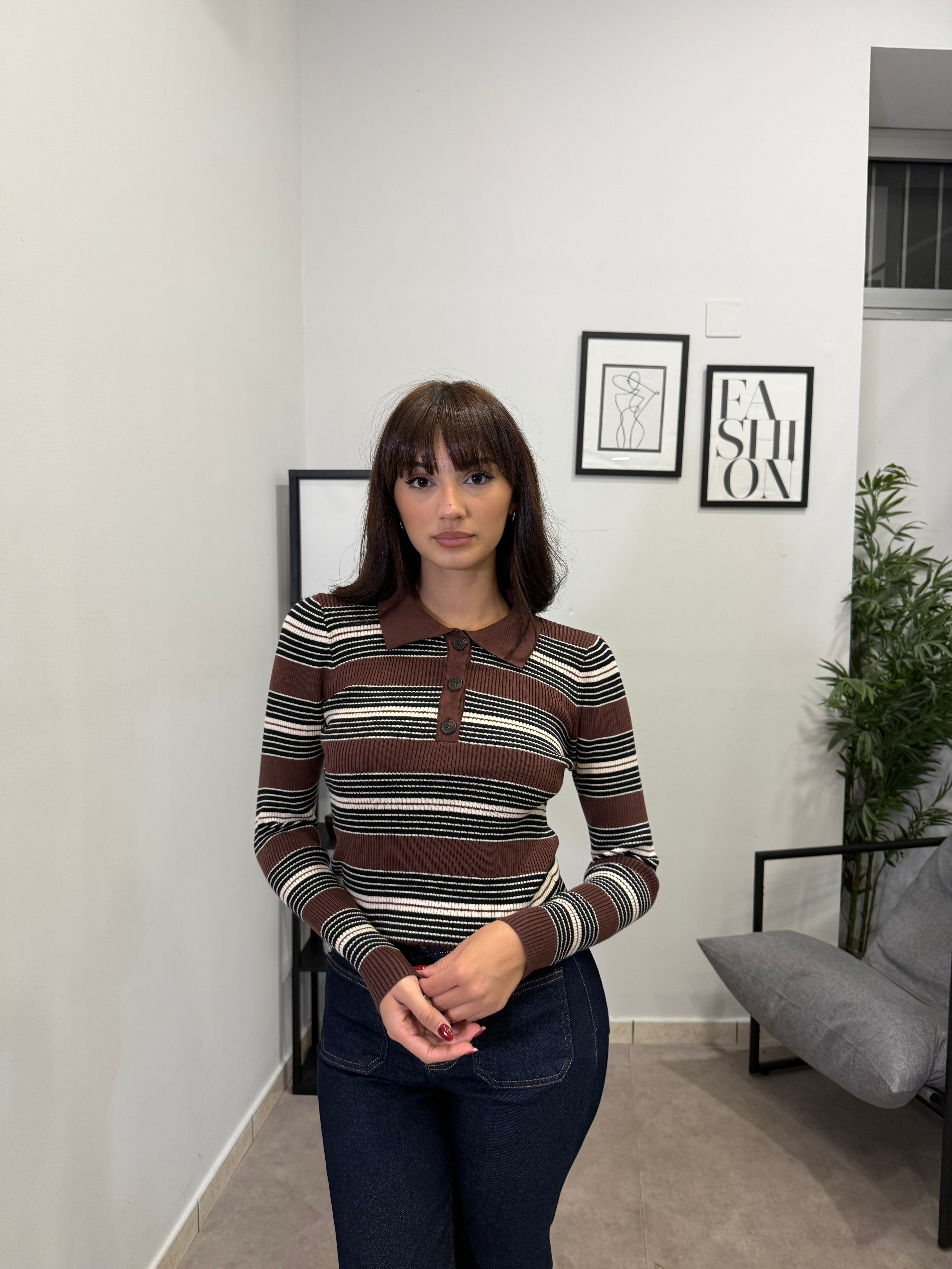 Maglia polo a costine con tre bottoni. Tessuto elasticizzato