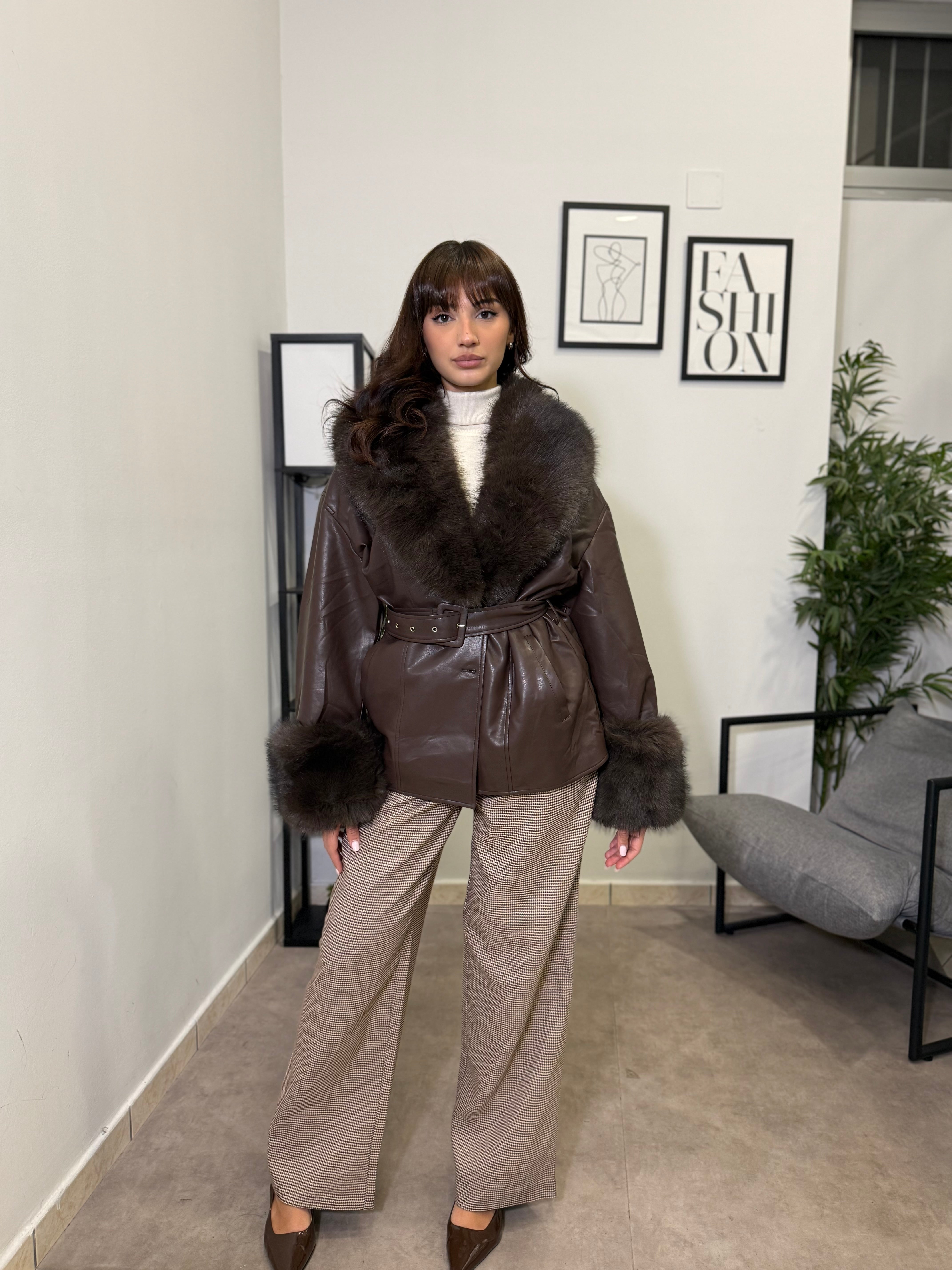 Pantalone palazzo con chiusura frontale invisibile. Fantasia sui toni terra! Marta indossa tg S ma veste leggermente comodo!