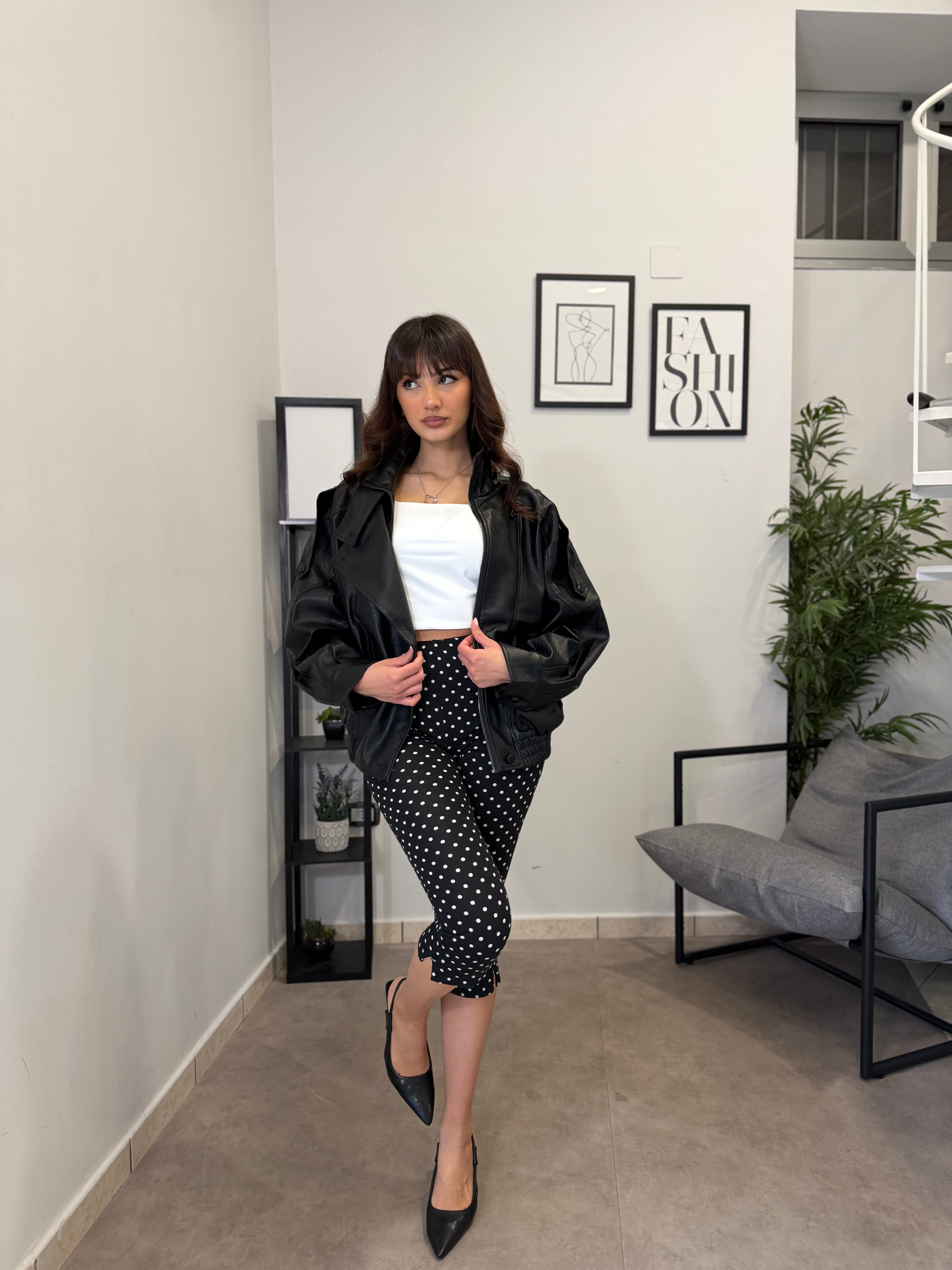 Pantalone in viscosa elastica, stampa pois. Tessuto elasticizzato! Marta indossa tg S