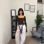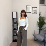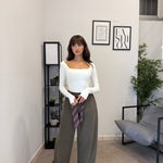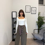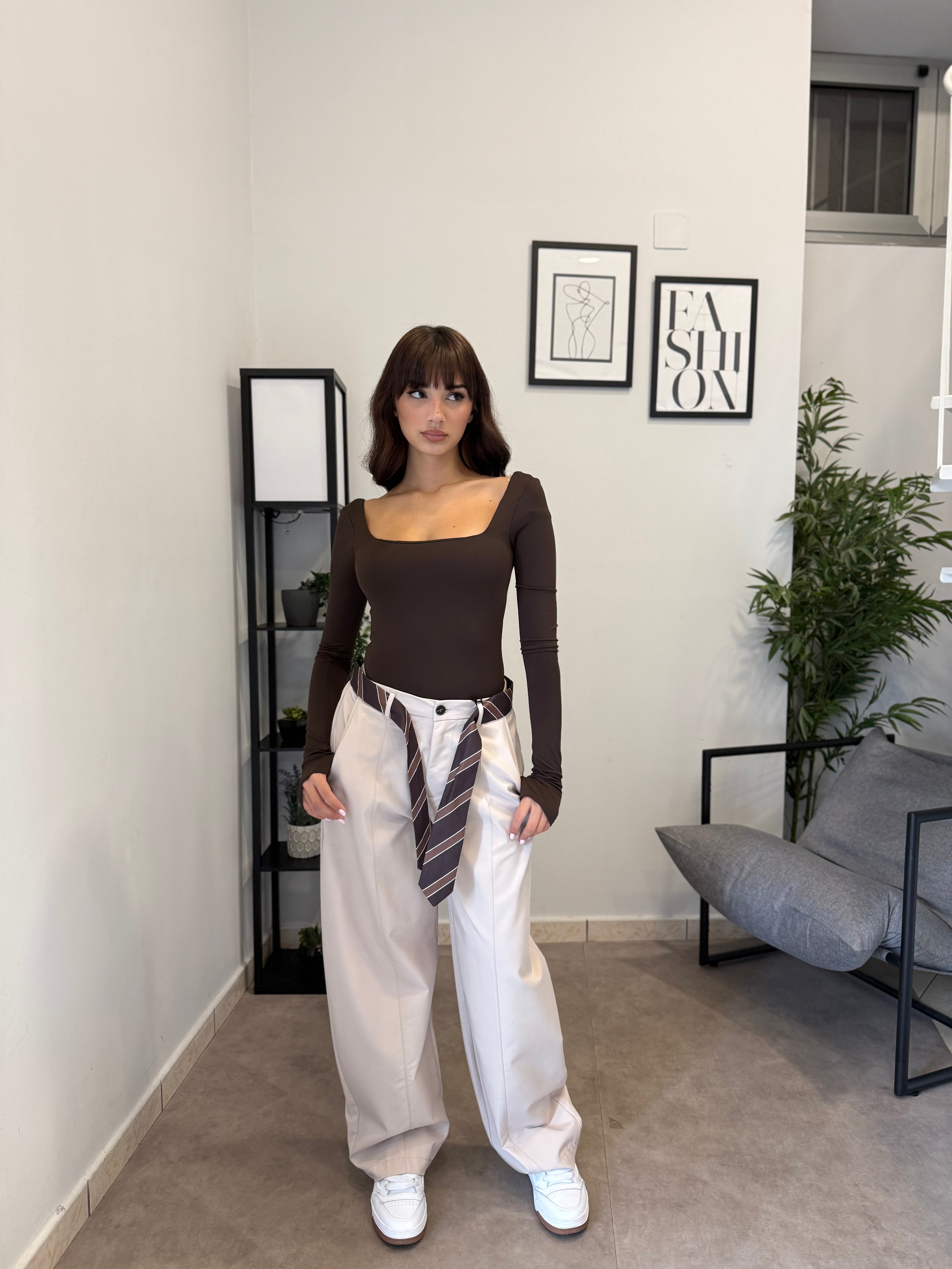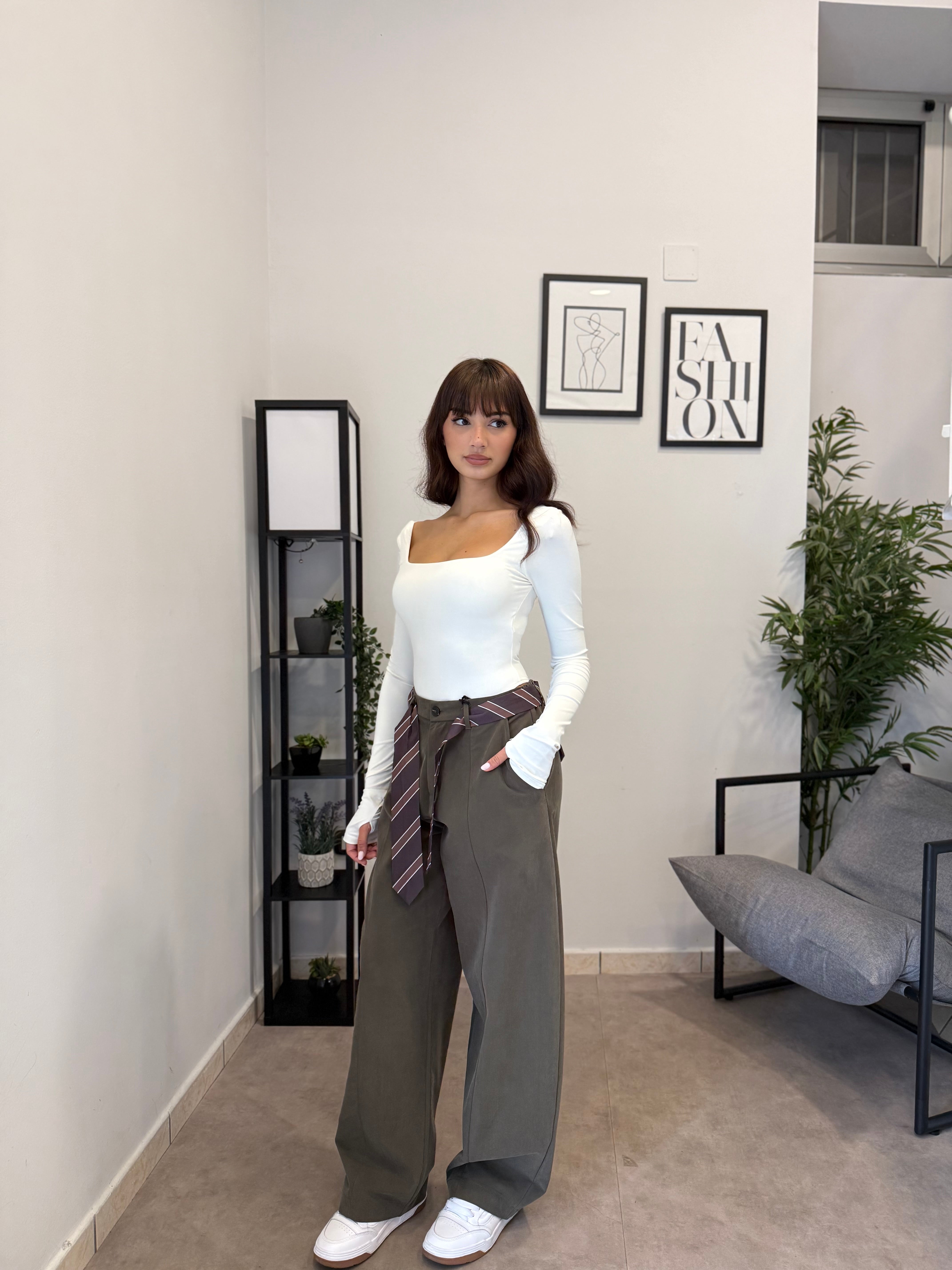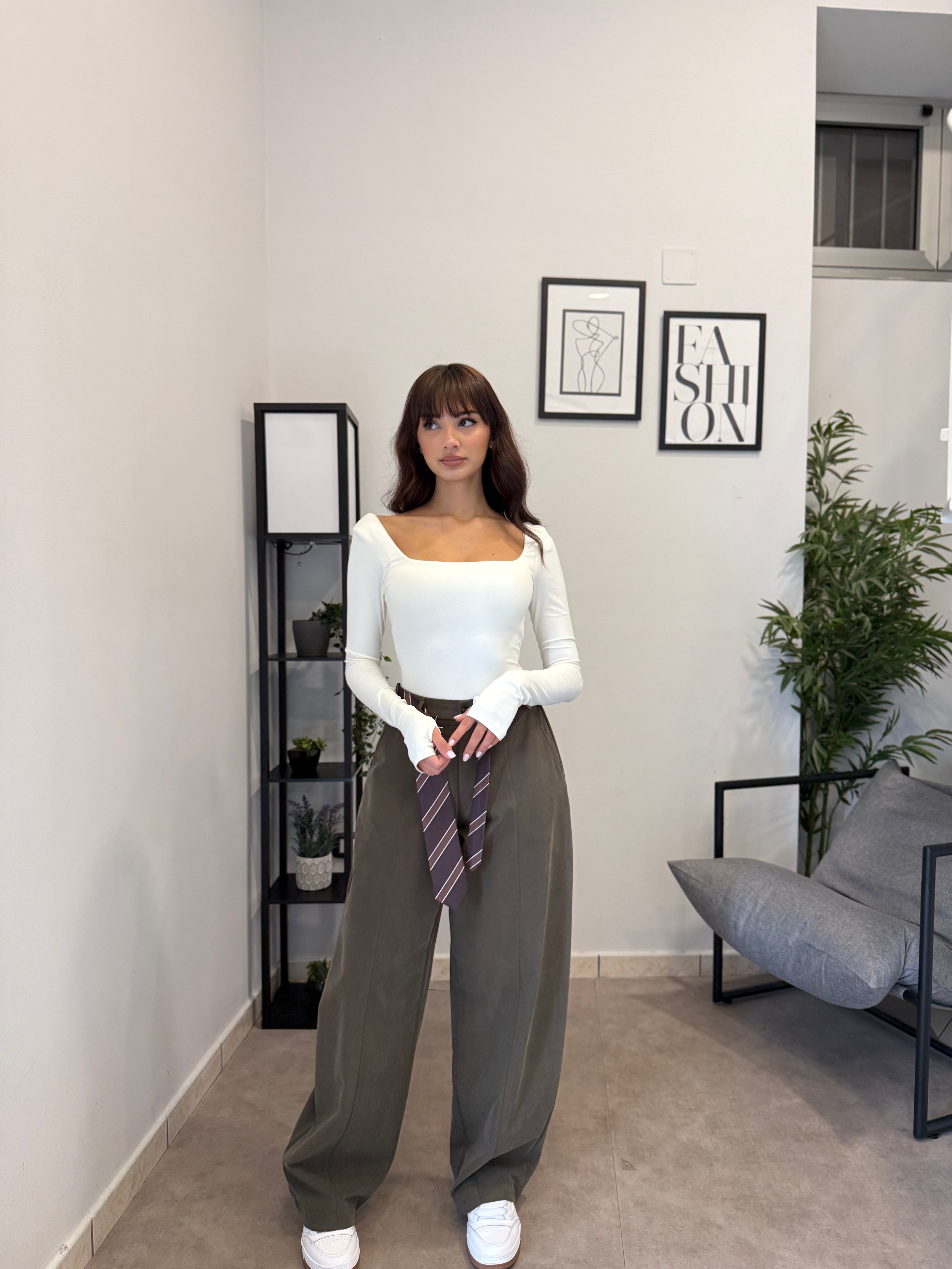 Pantalone in caldo contone con gamba larga e molla in vita. La cravatta è inclusa. Veste bene dalla S alla L