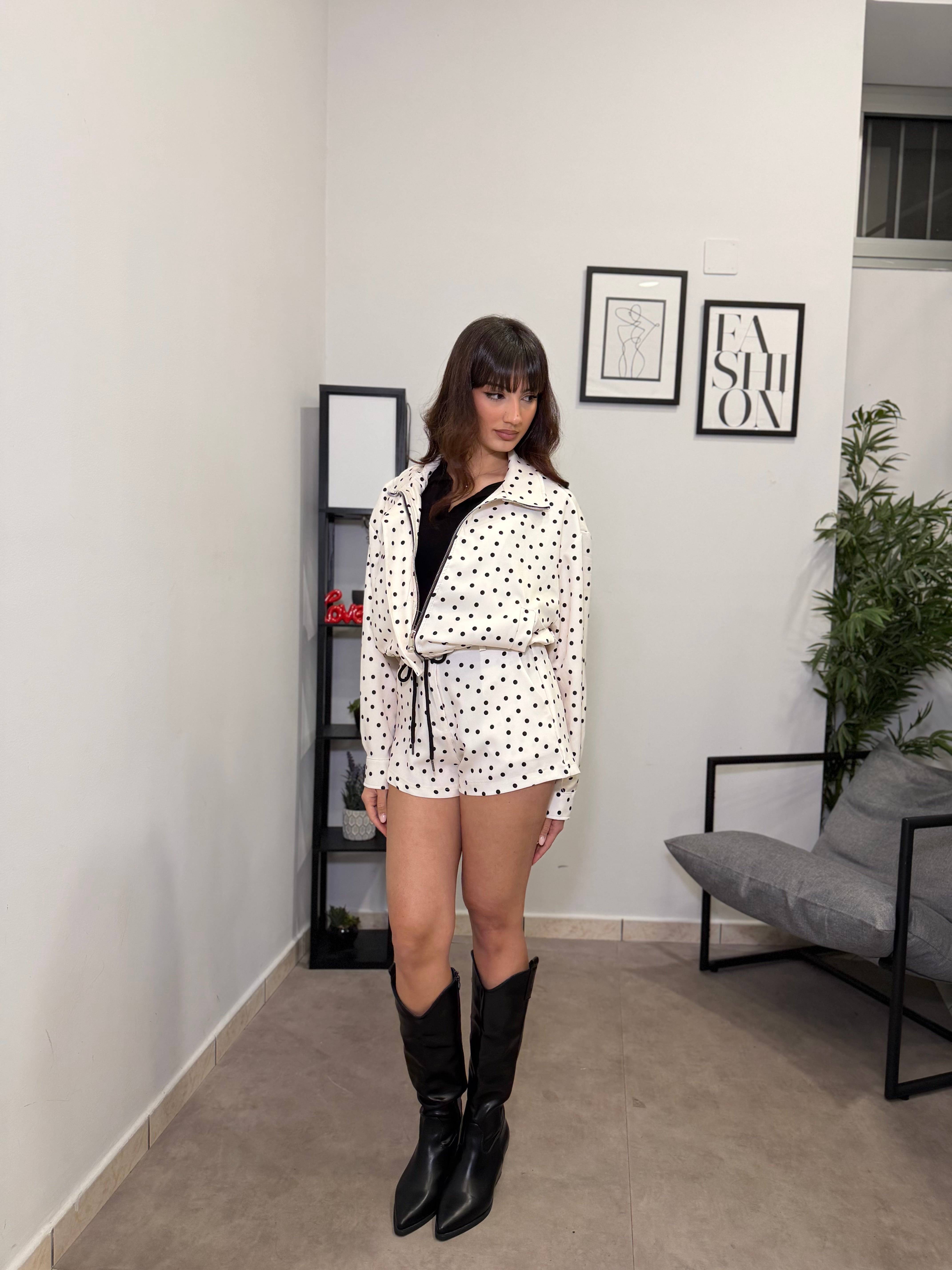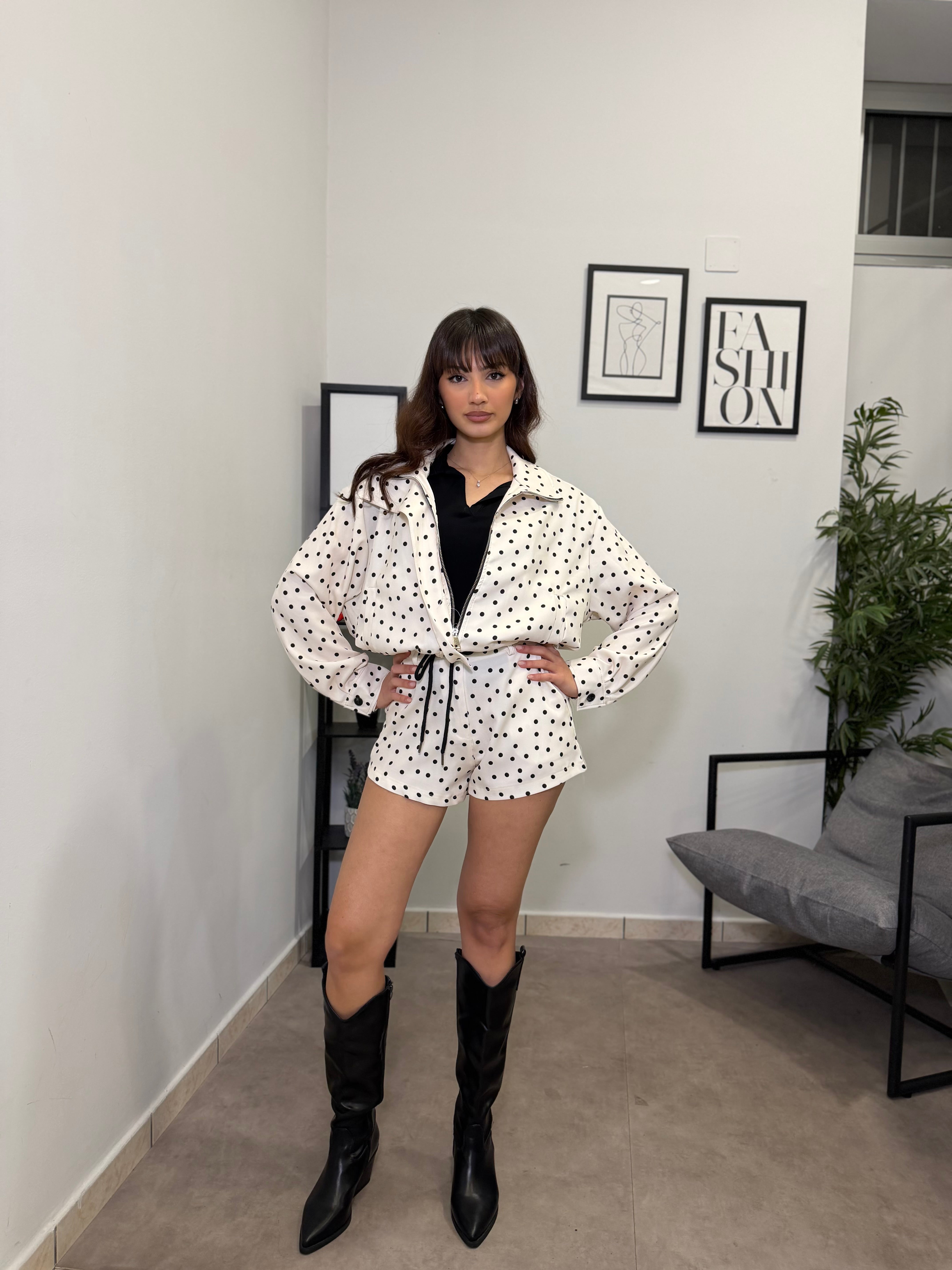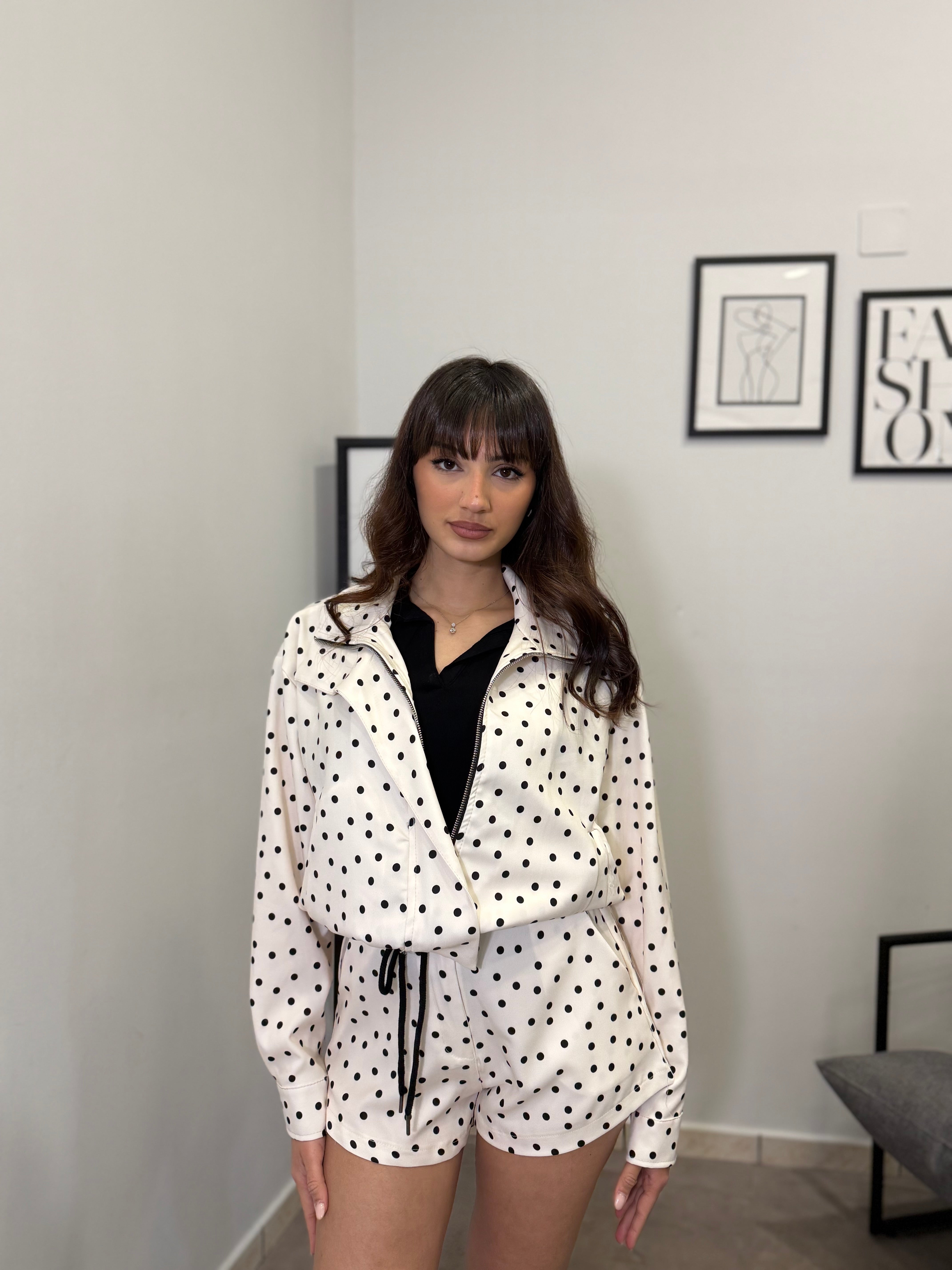 Completo con giacca crop e pantaloncino. Veste bene dalla S alla L