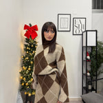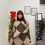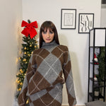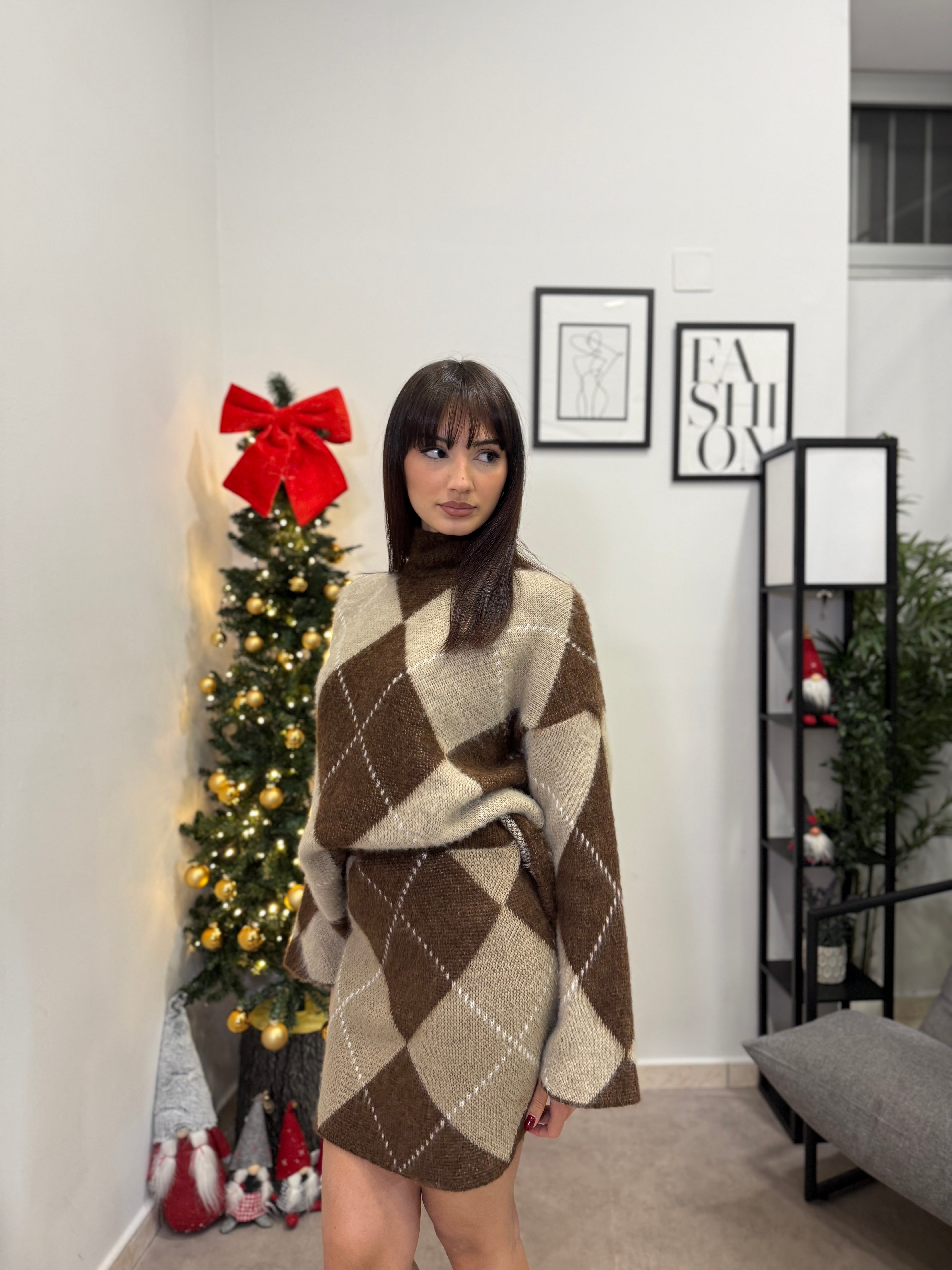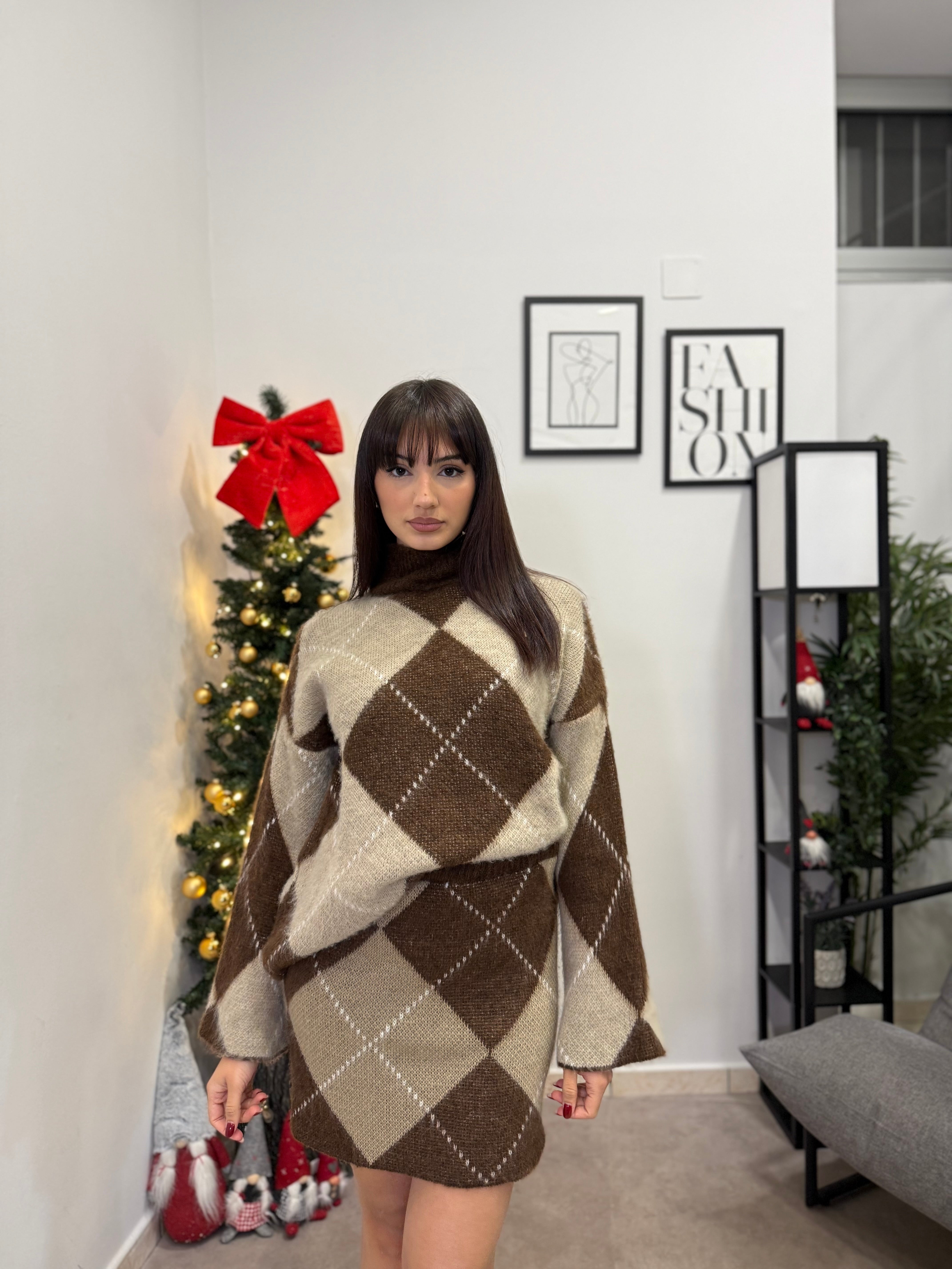 Completo con gonna e maglione a rombi. Tessuto elastico, veste bene dalla S alla L